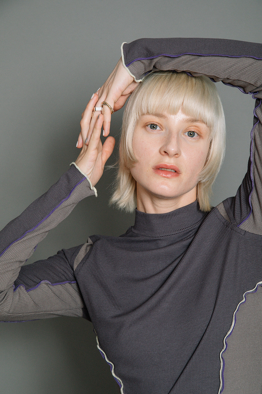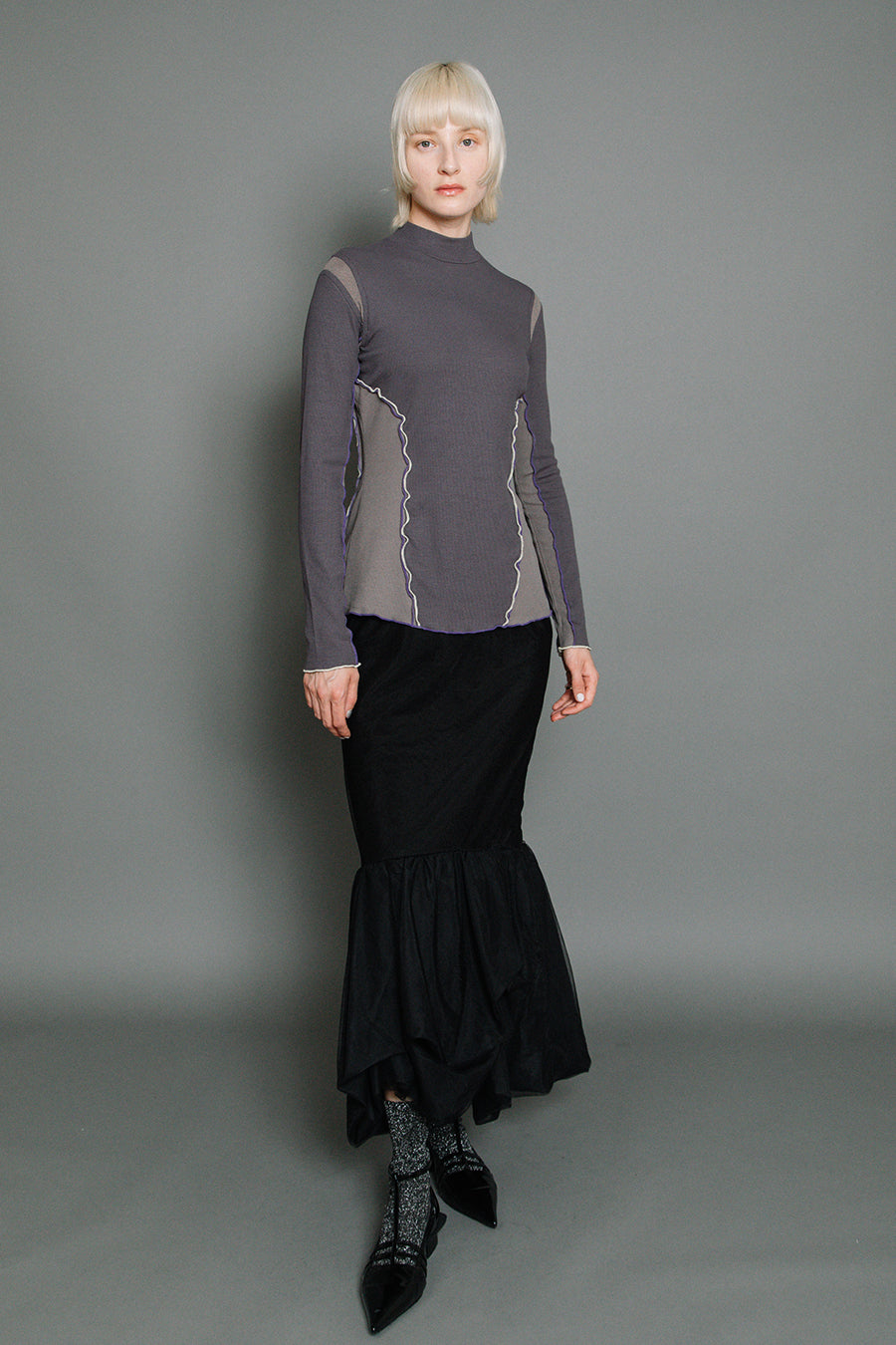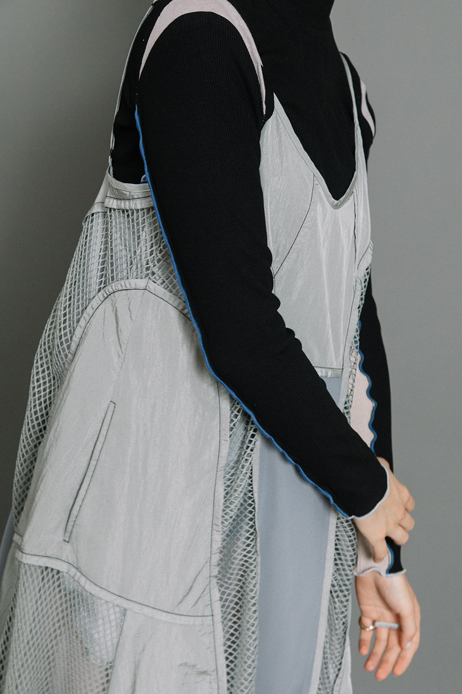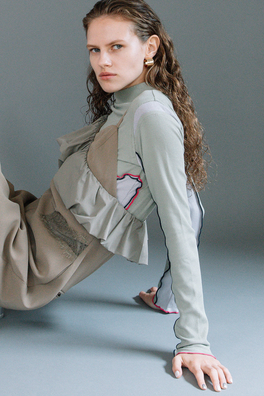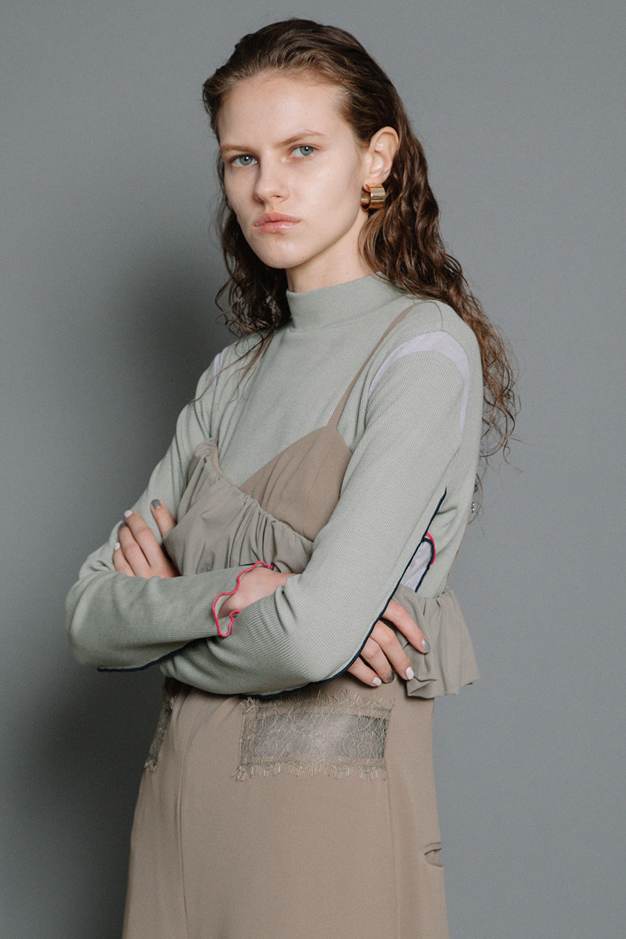 切り替えには2色のダブルメローを施し、AULA AILAらしい絶妙な配色バランスで、肩のスリットライクなデザインも華奢見えする拘りポイント。