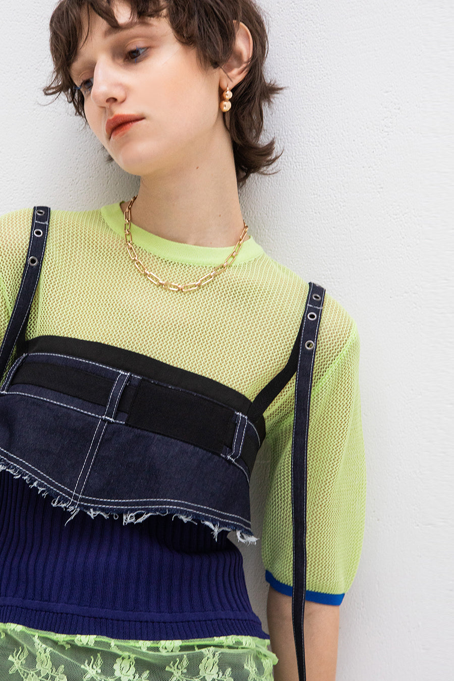 MESH BARE TOP COMBINATION KNIT