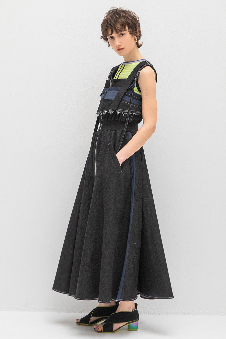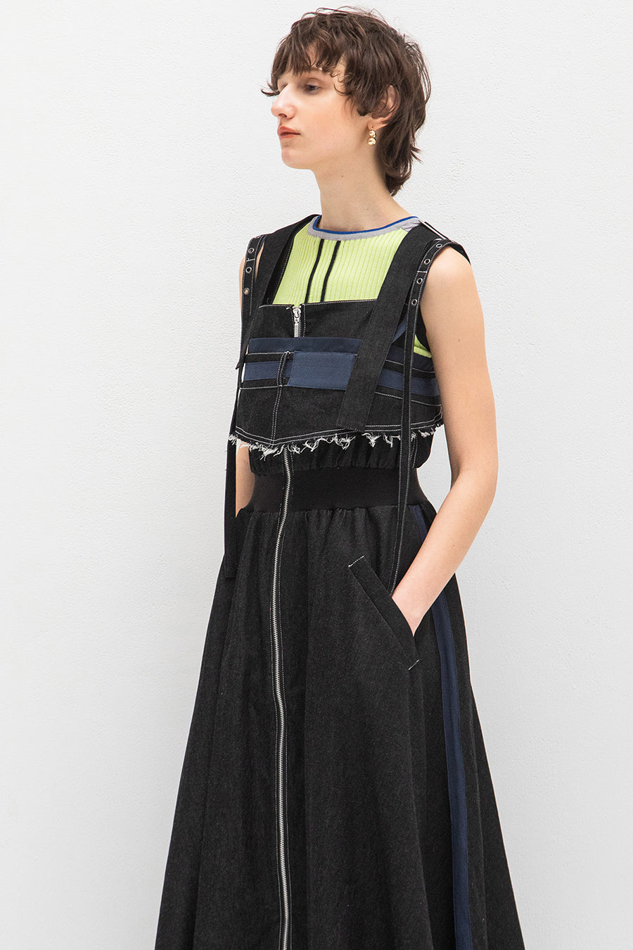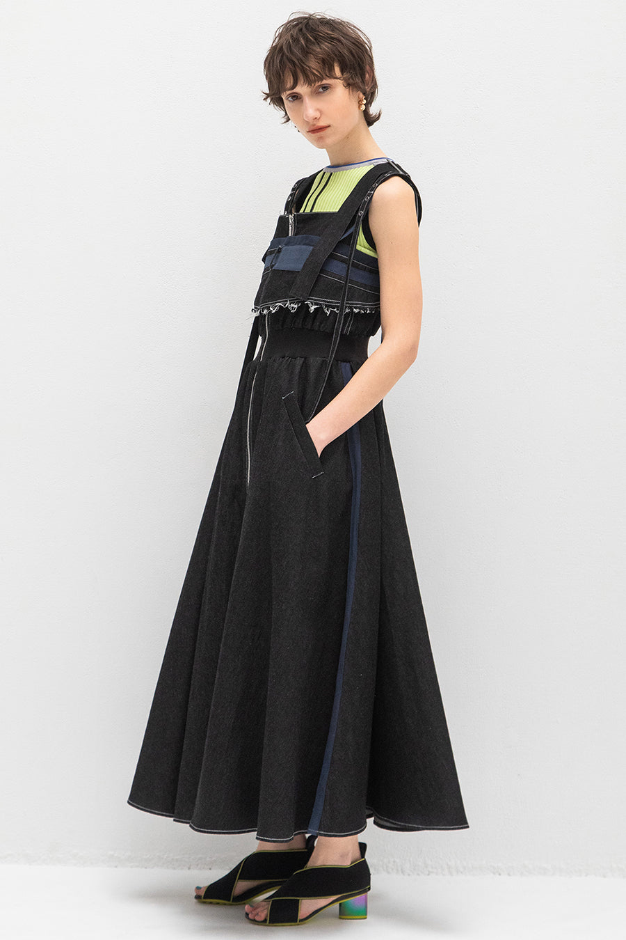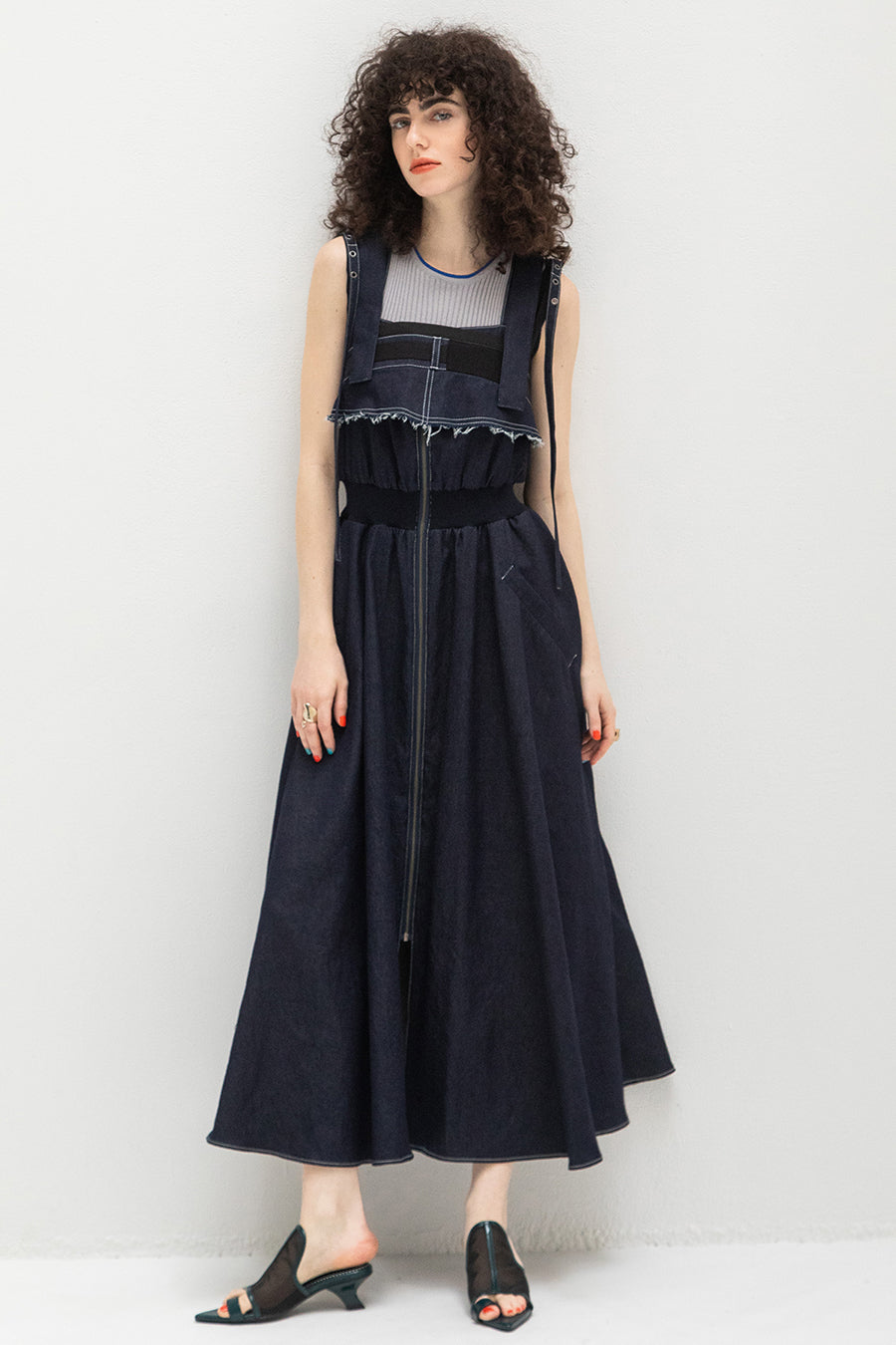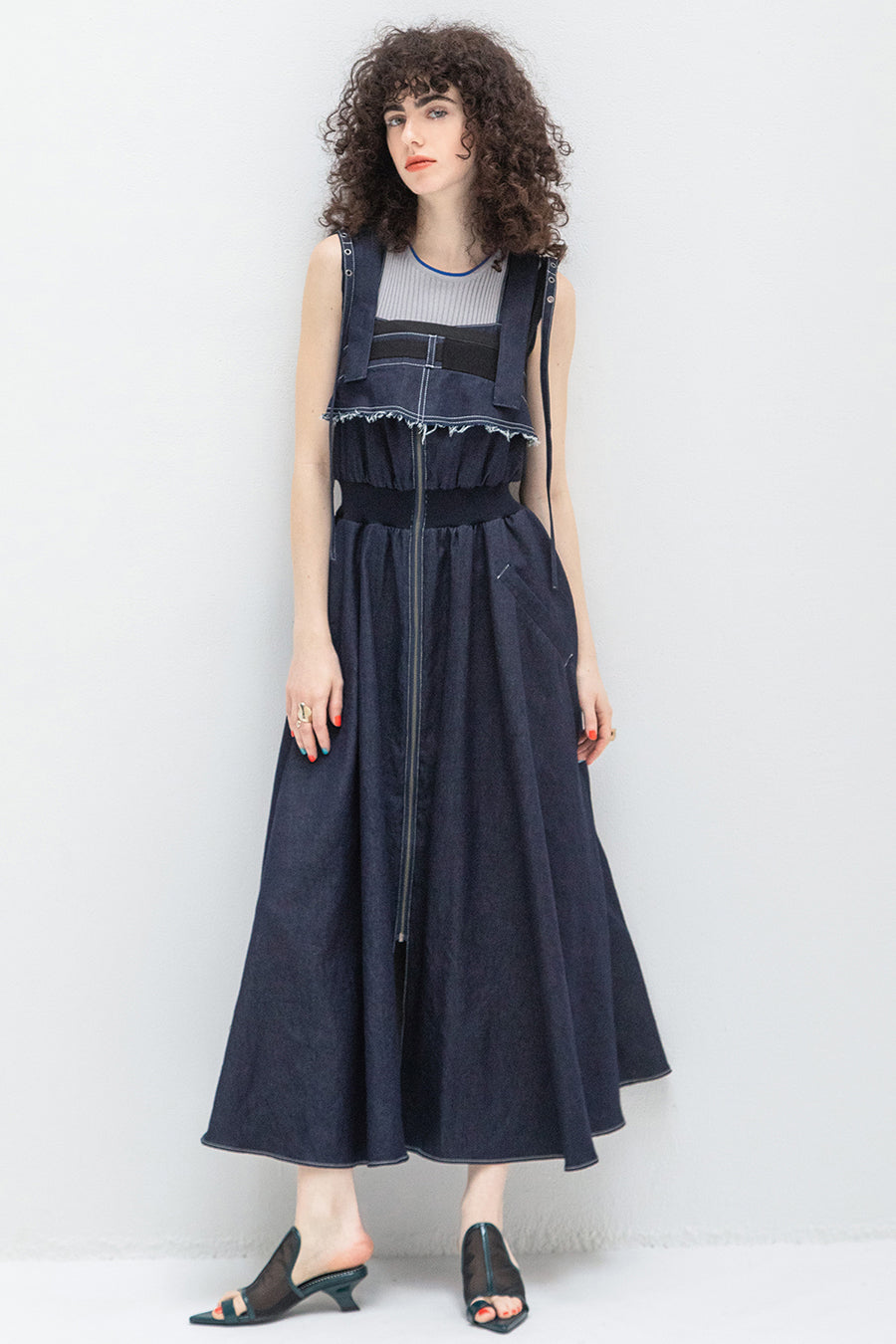 CAMISOLE LAYERED DENIM JUMPER SKIRT