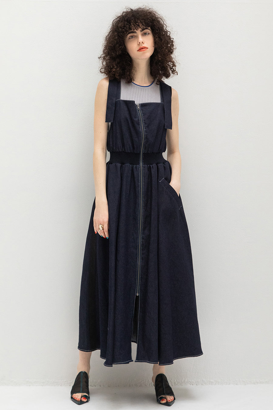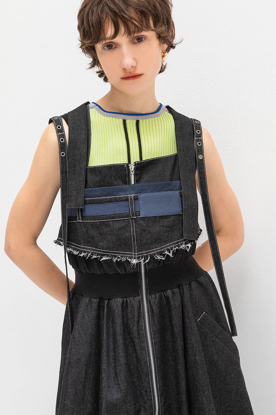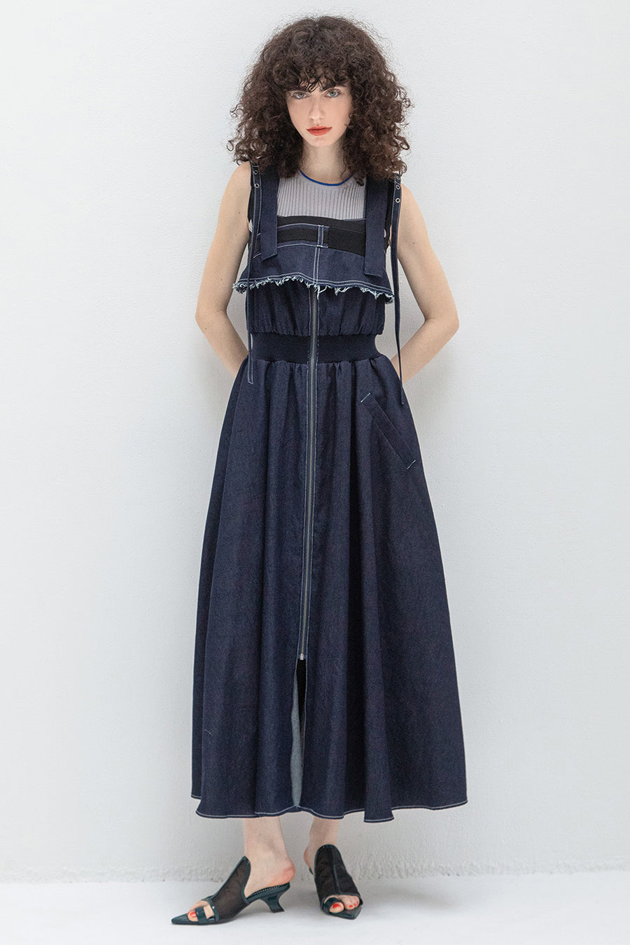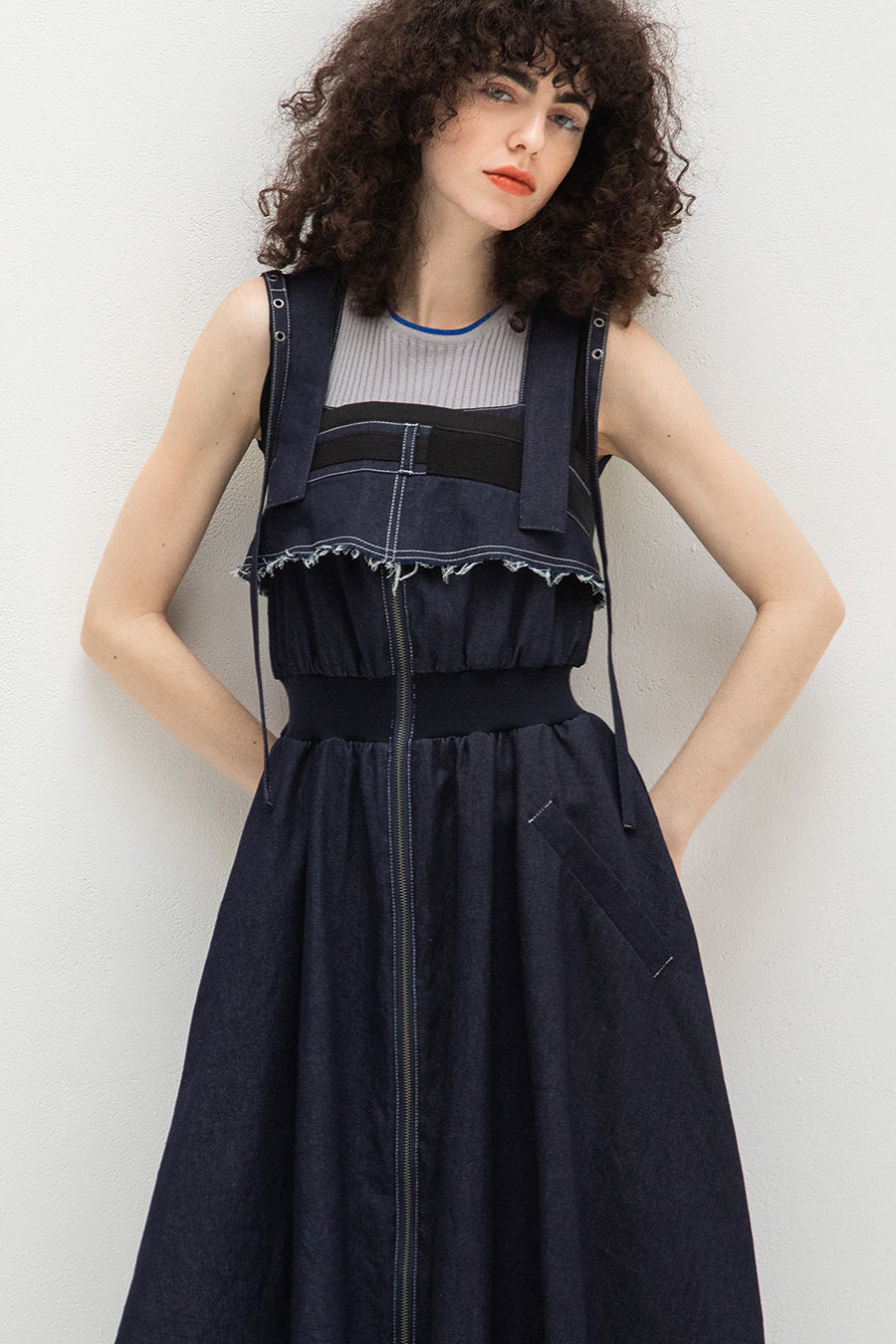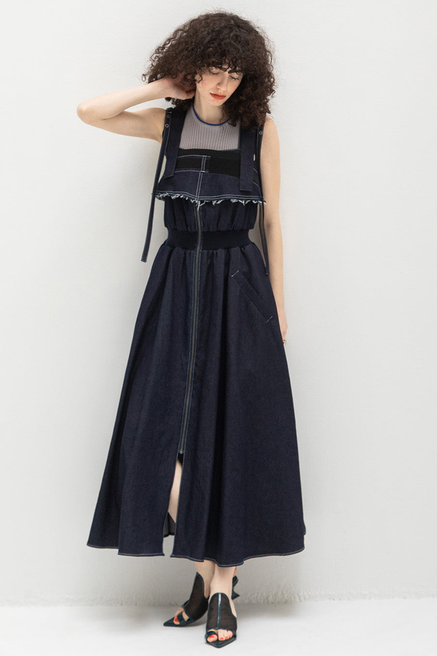 CAMISOLE LAYERED DENIM JUMPER SKIRT