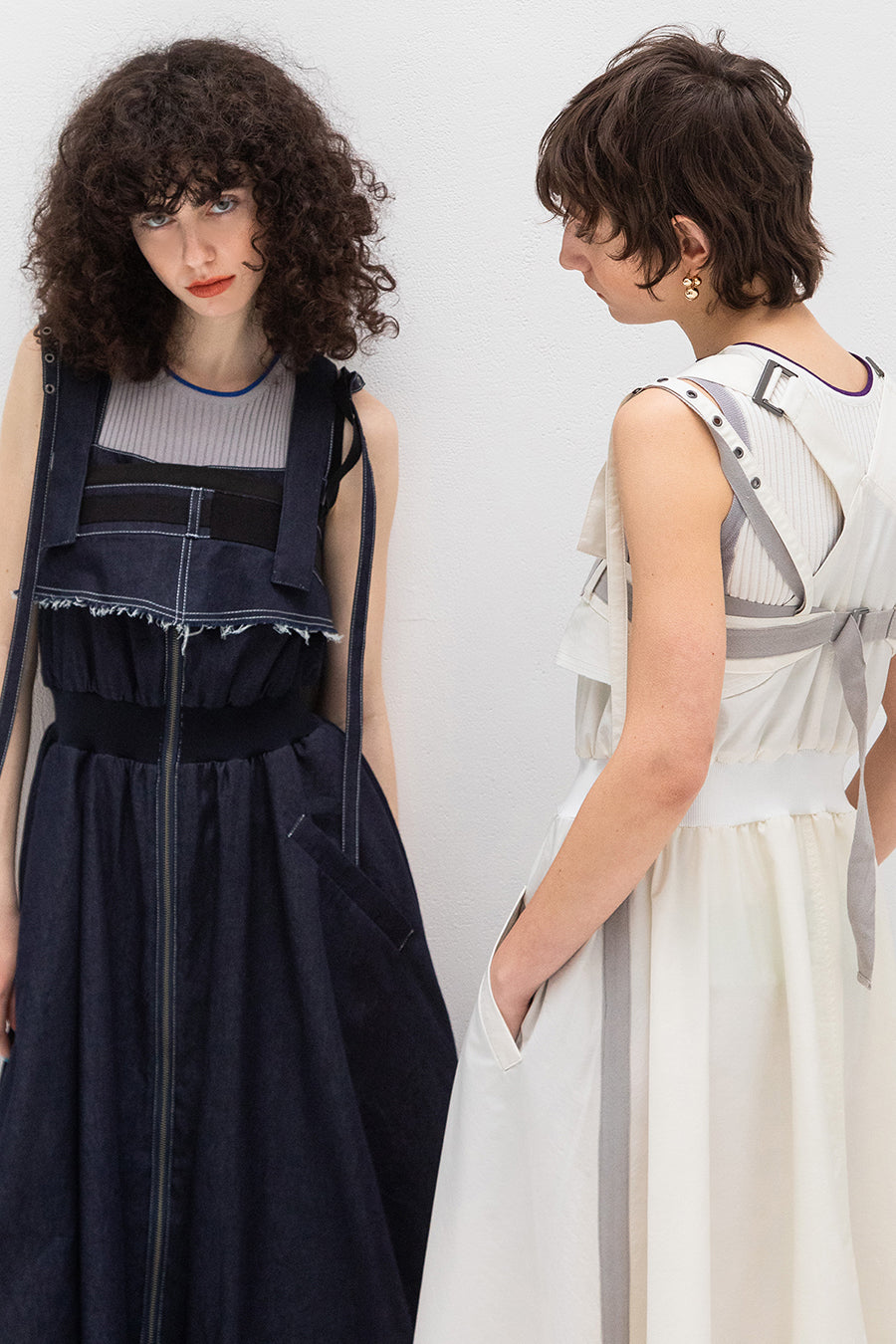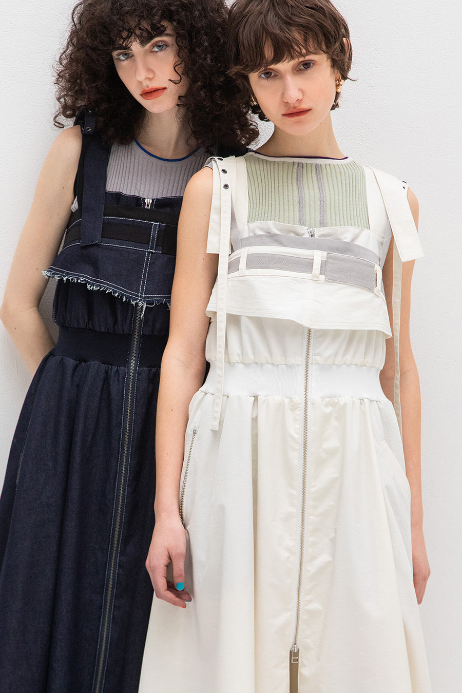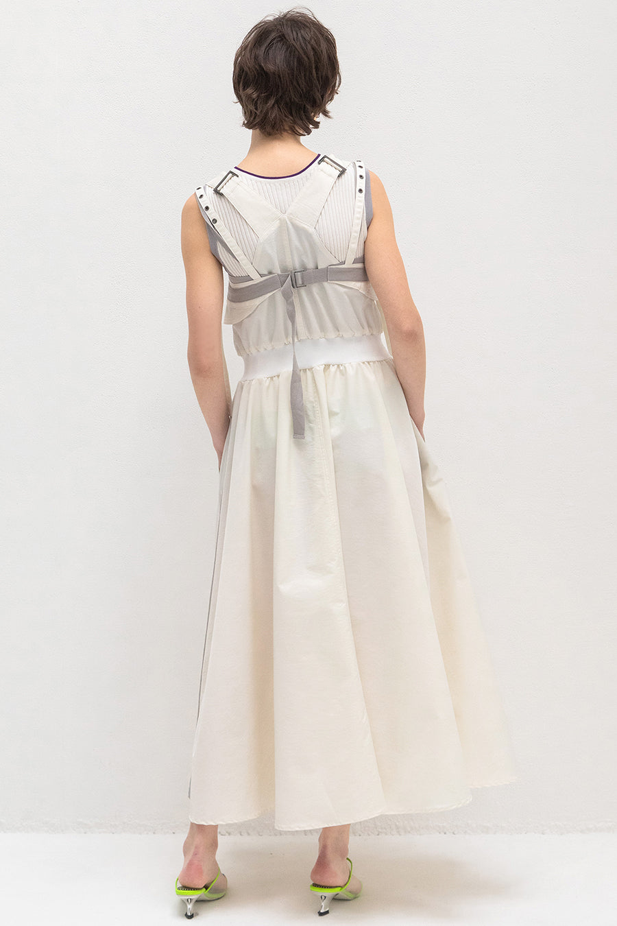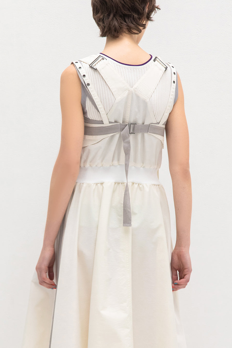 も◎肩紐は長さをバックルで調節が出来き、フロントはダブルジップアップなので、裾を開けてボトムやレギンスをレイヤードしてジレ風にも着用可能。ホワイ
