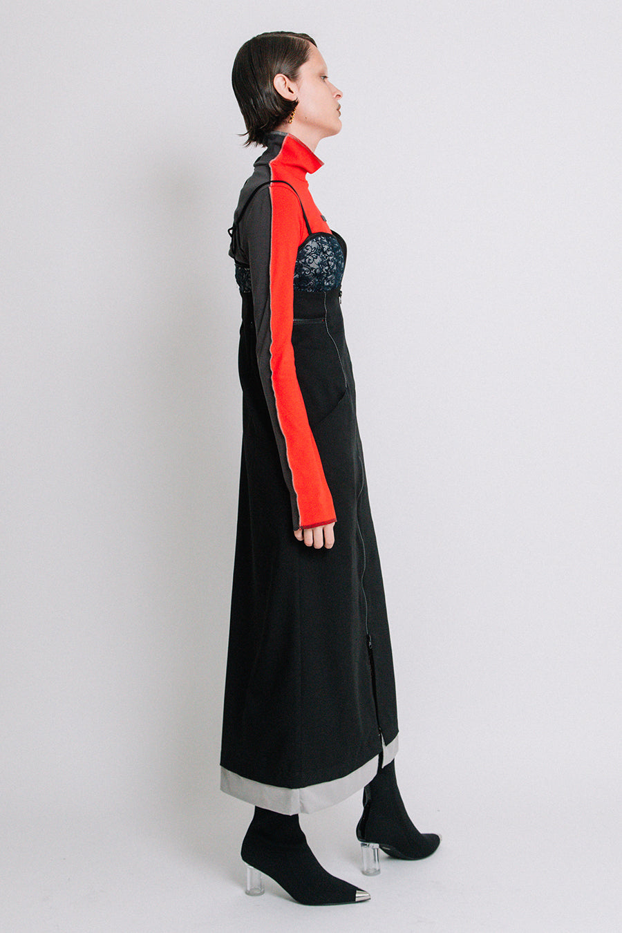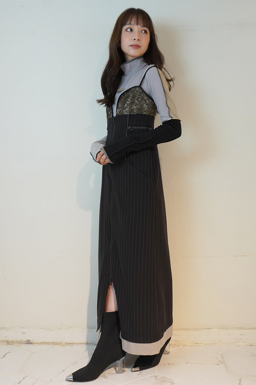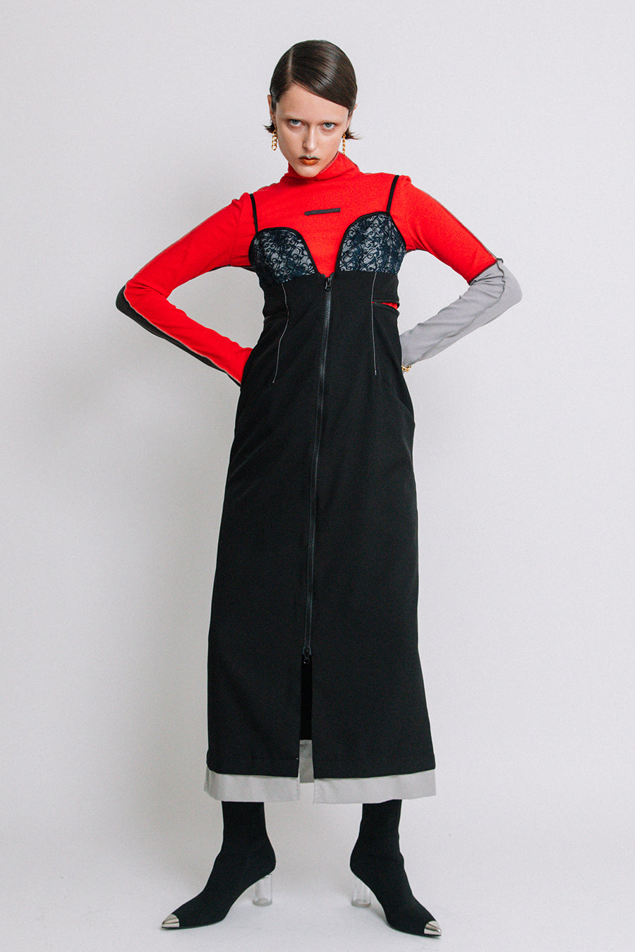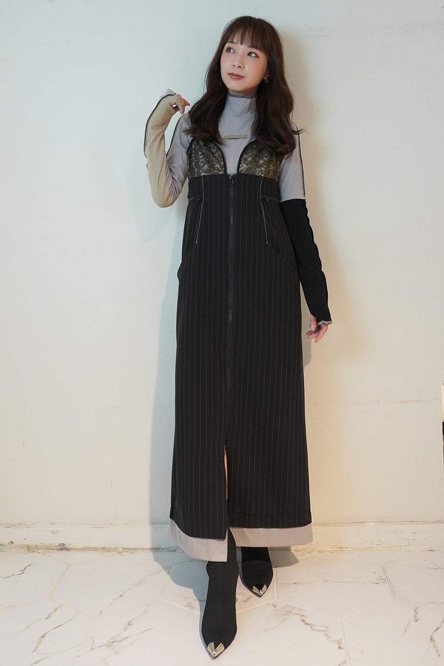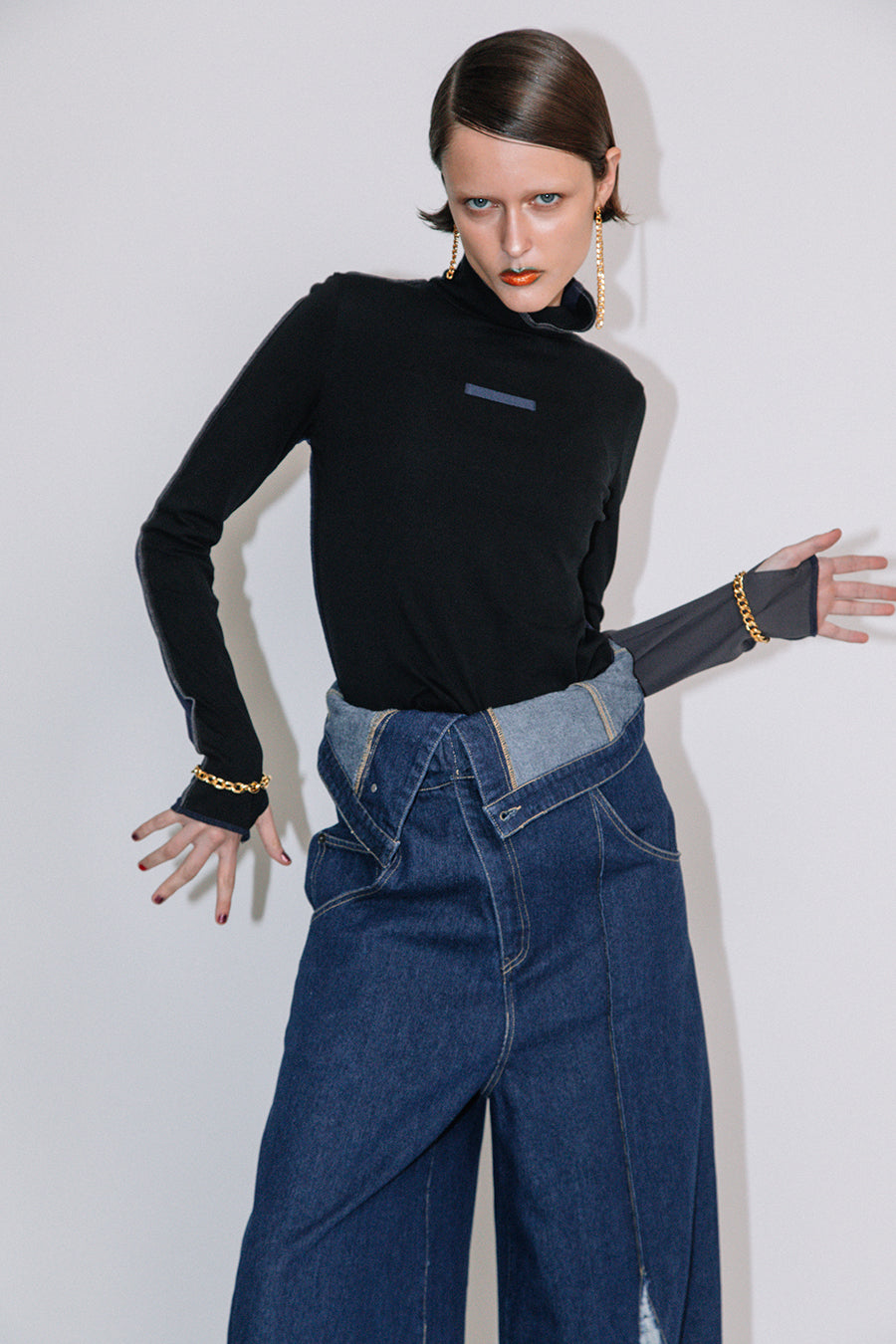 形はベーシックなハイネック長袖インナーながらも、大胆なカラー配色が目を惹き、レイヤードしてもスタイリングのポイントに。