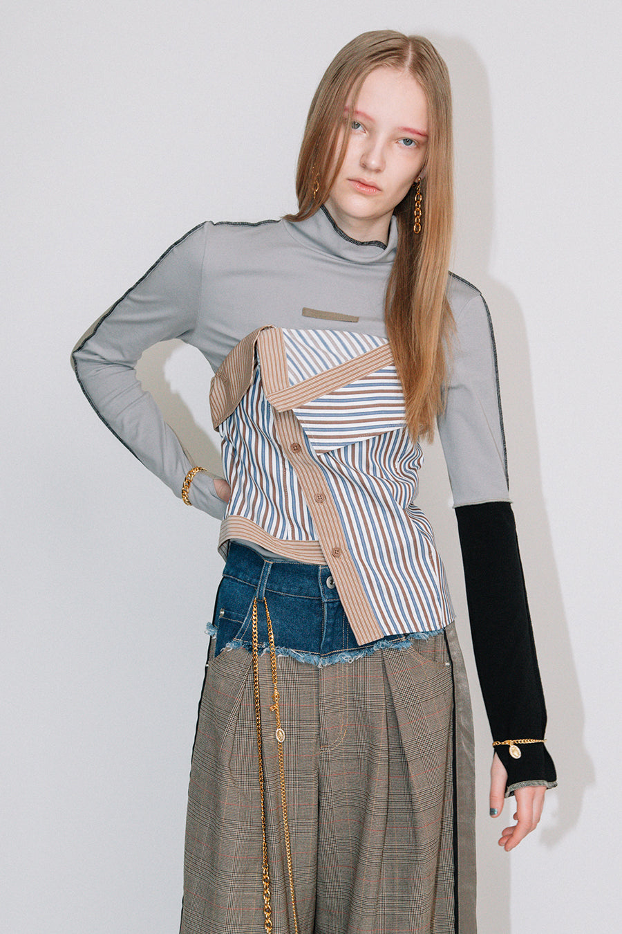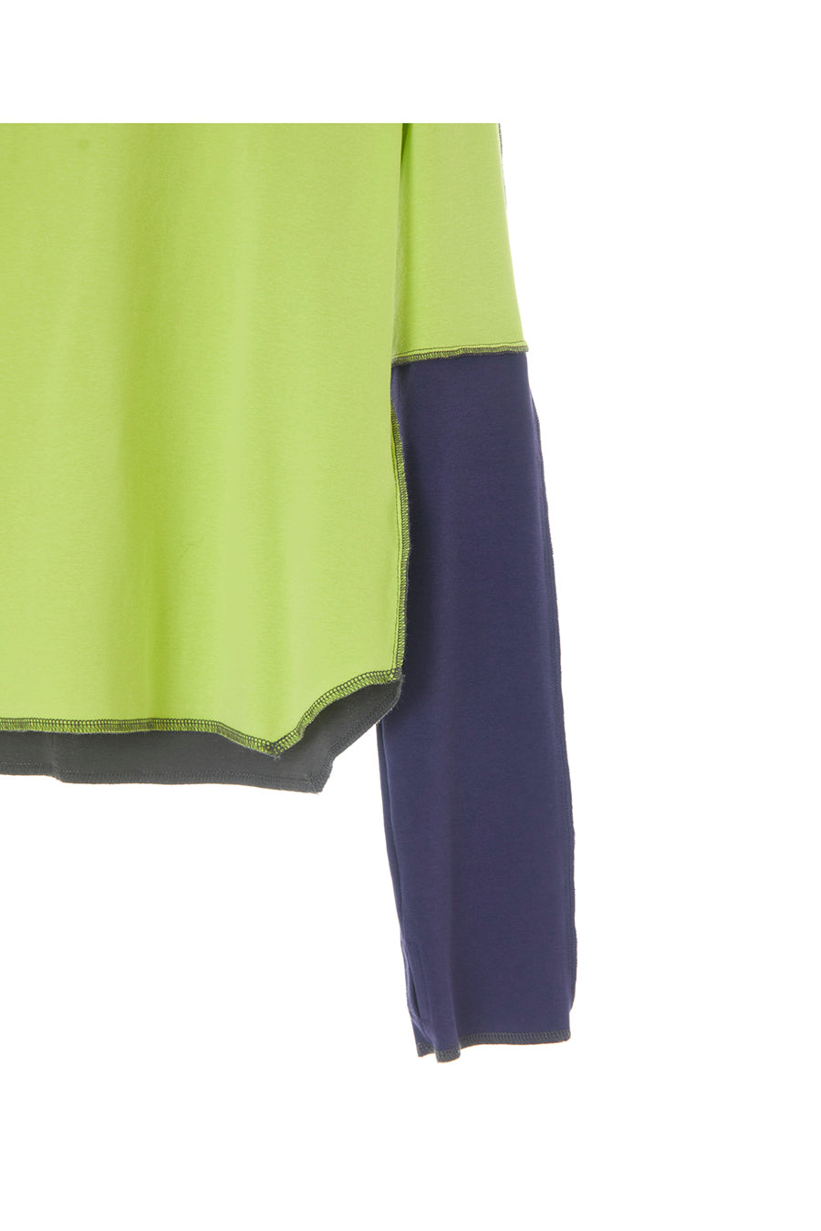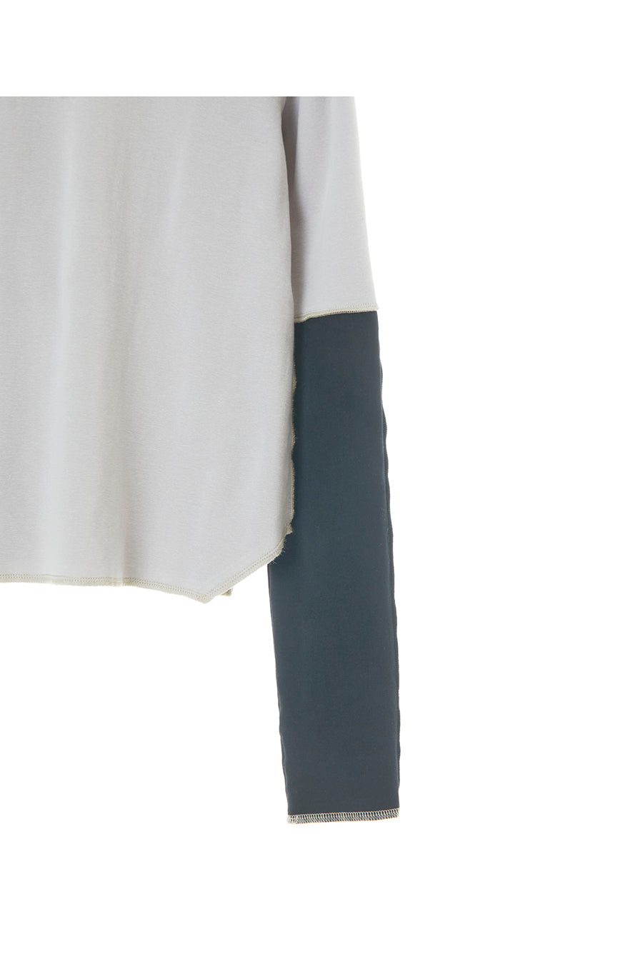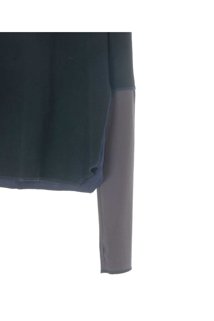 前後身頃と前後袖、左袖口が配色の3色のカラーブロックインナー。