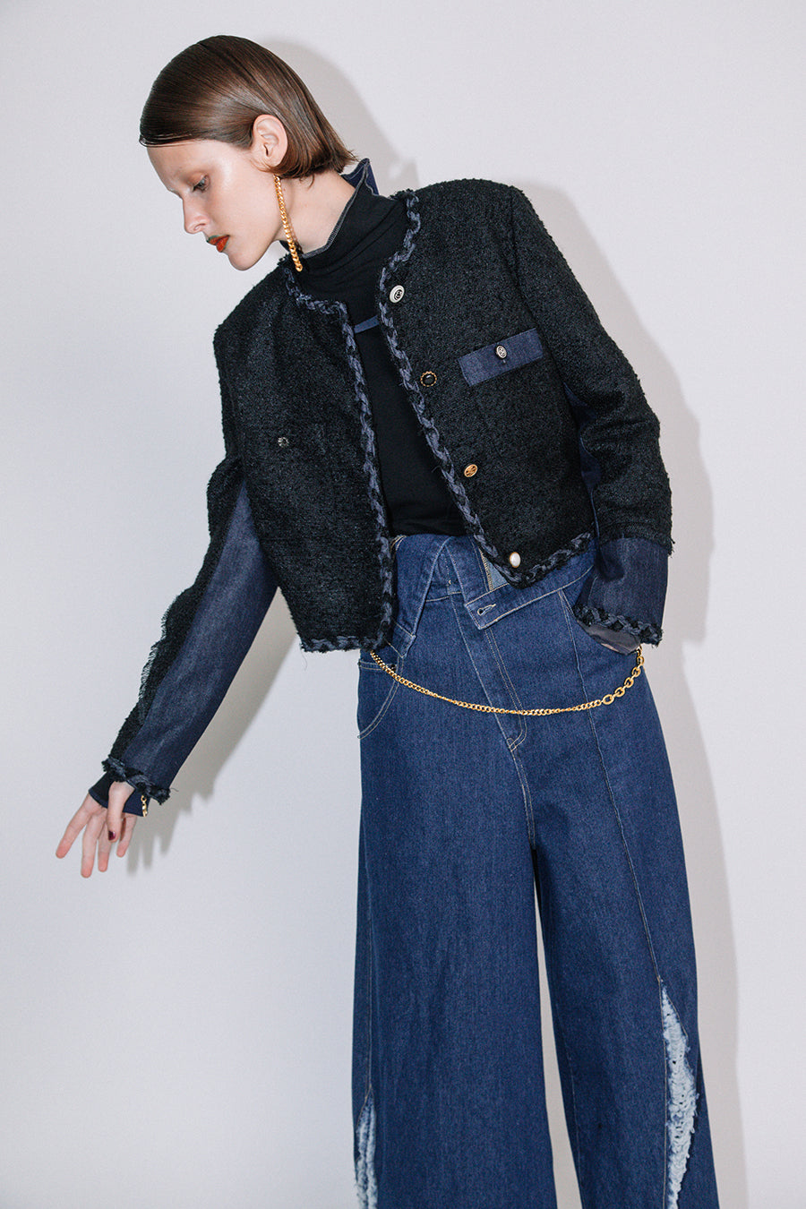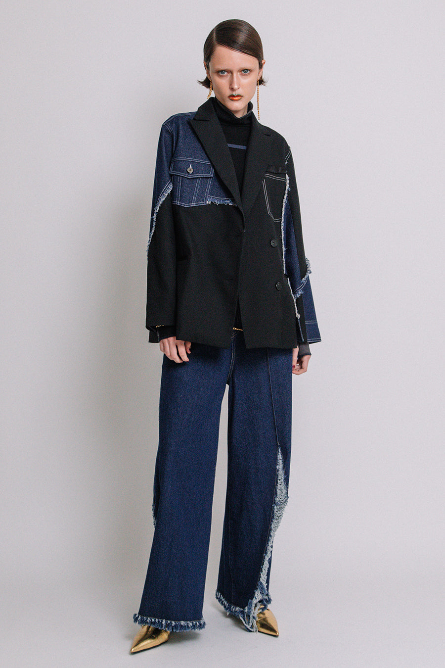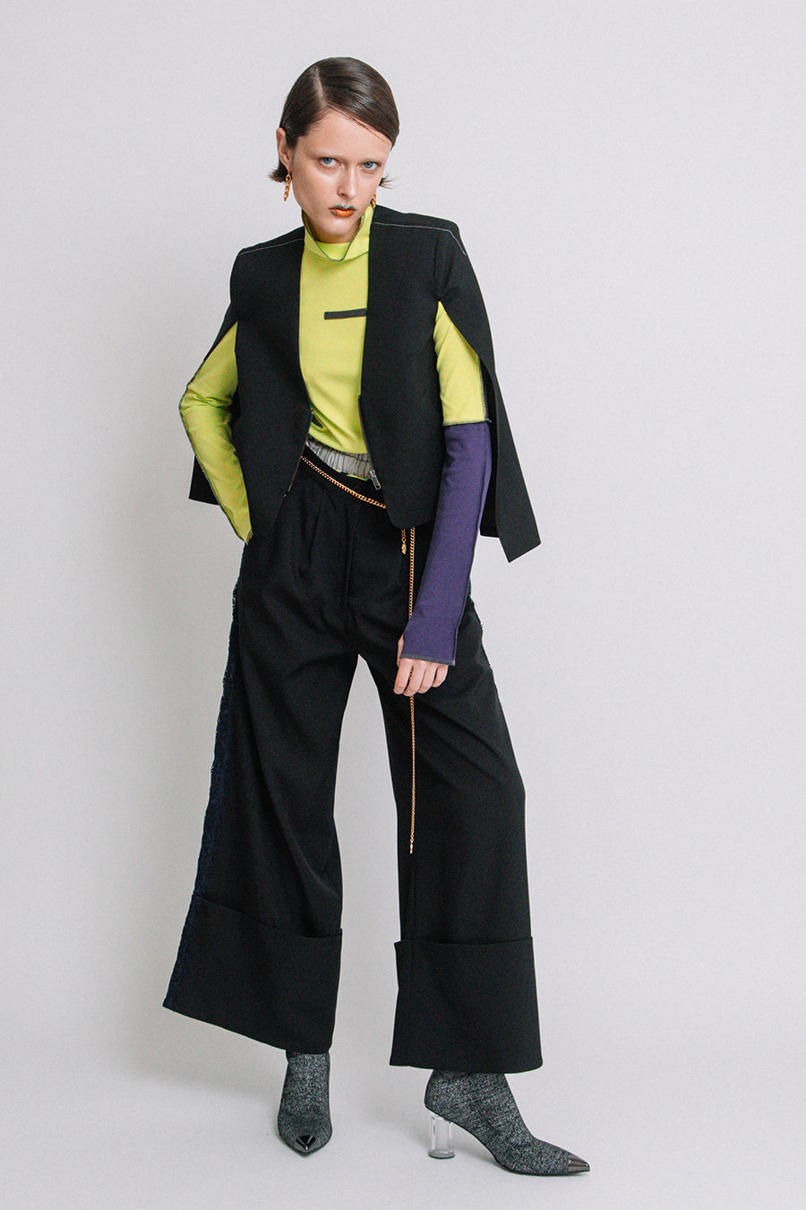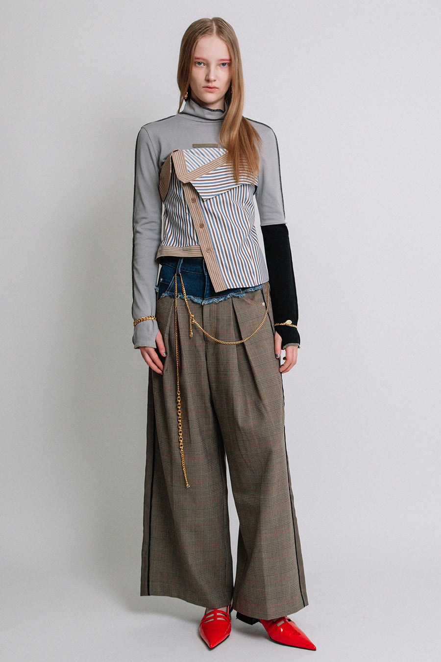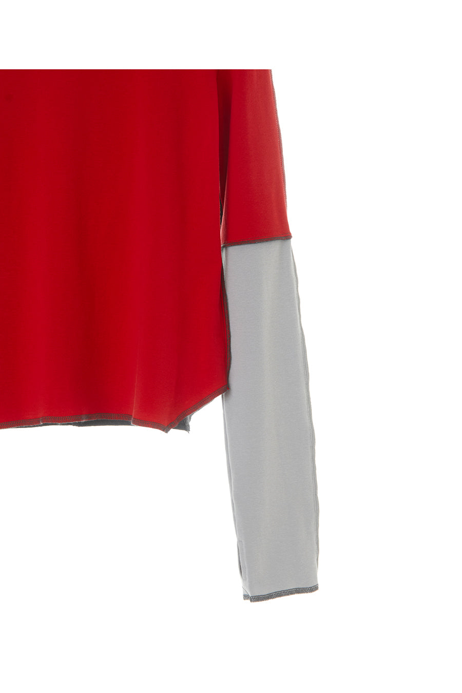前後身頃と前後袖、左袖口が配色の3色のカラーブロックインナー。