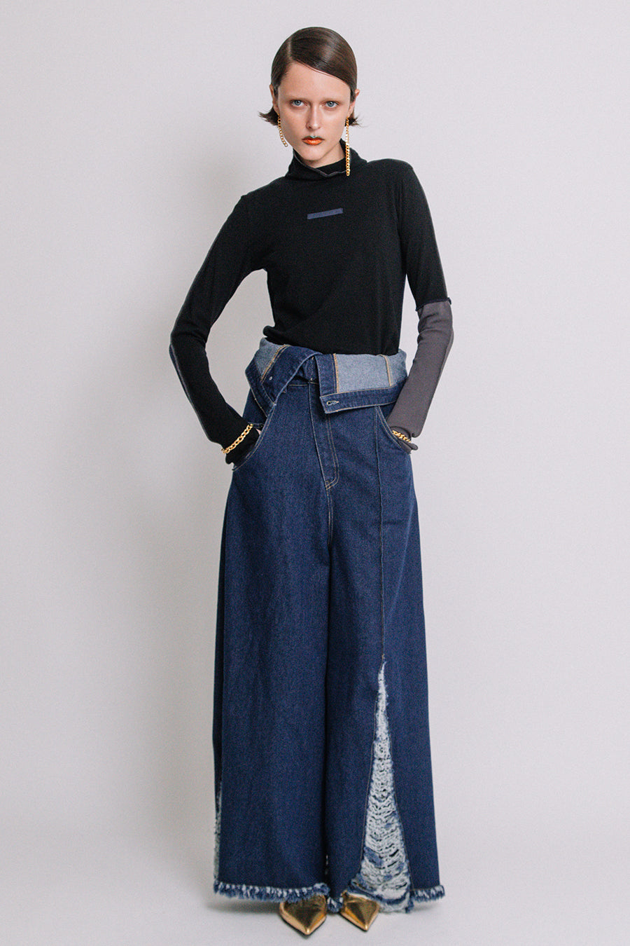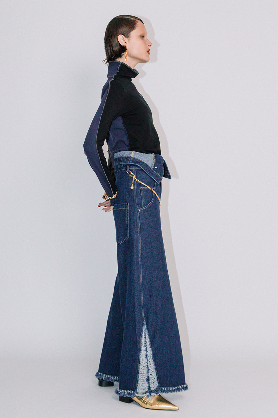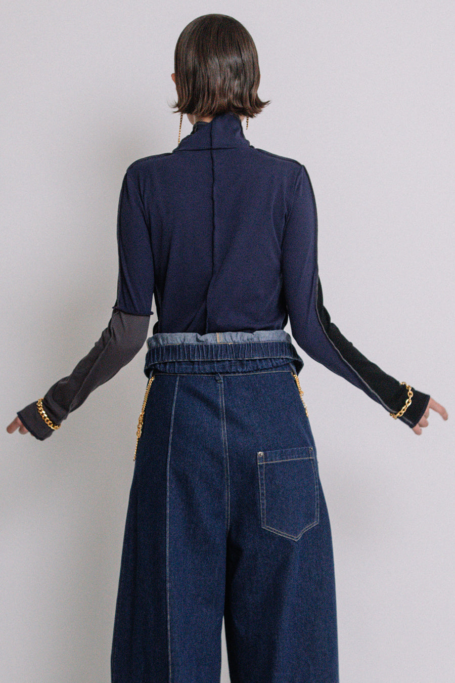 センターバックの摘みメローは、縦長に細見え効果がありスタイルアップ効果も◎