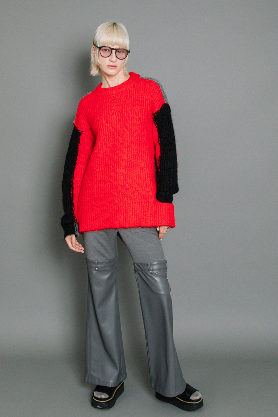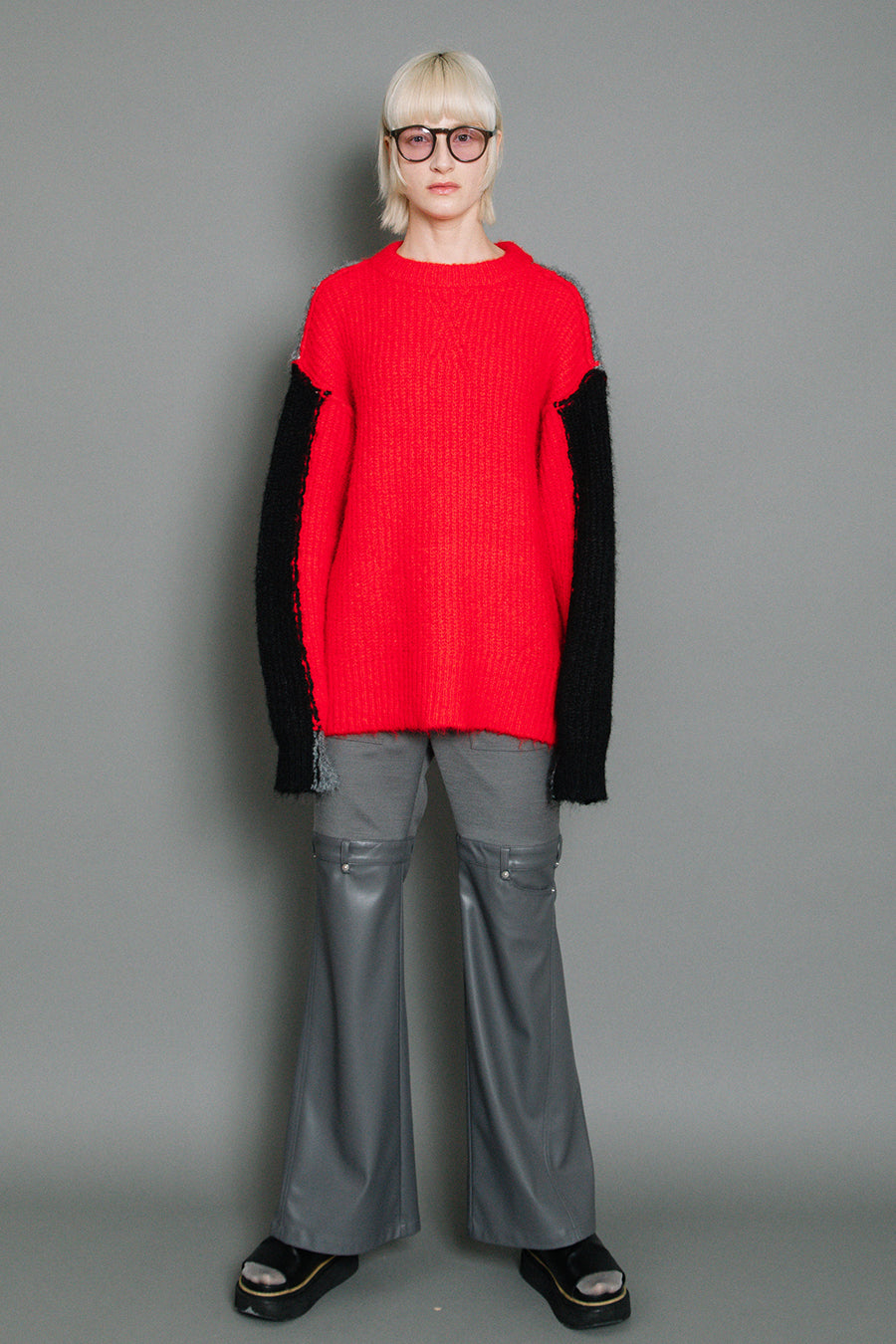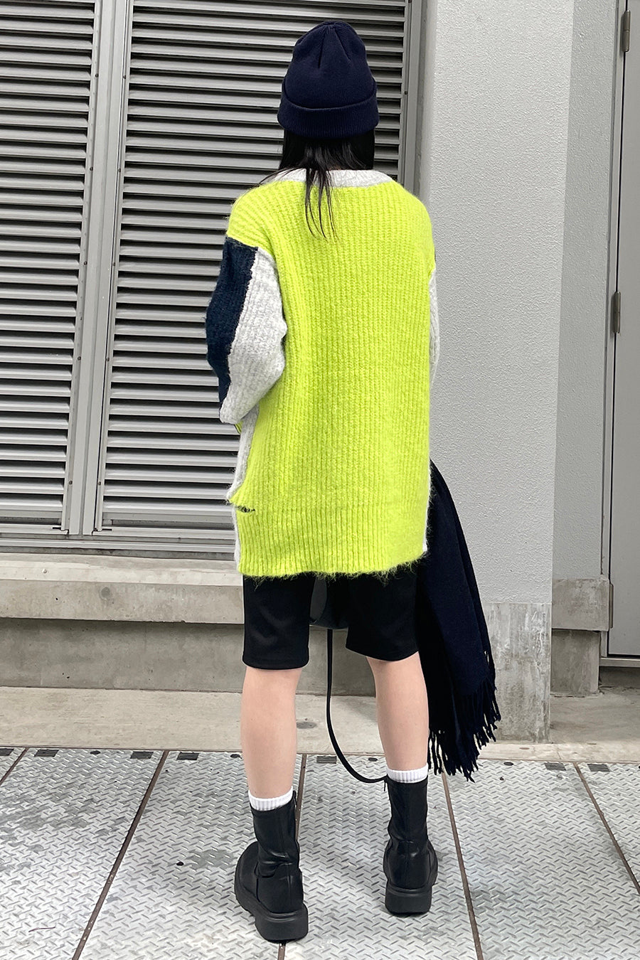 素材は、回収されたペットボトルから作られたリサイクルポリエステル糸を混紡した、モヘアタッチのタム糸を使用。