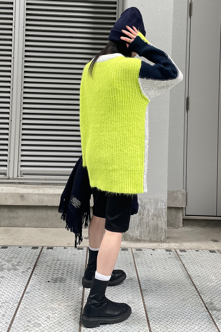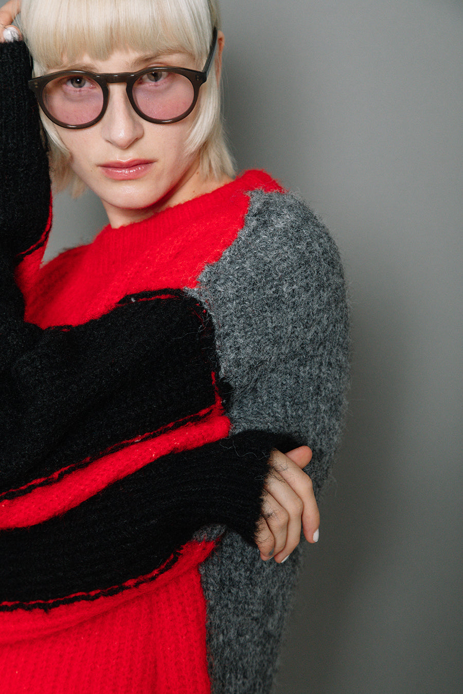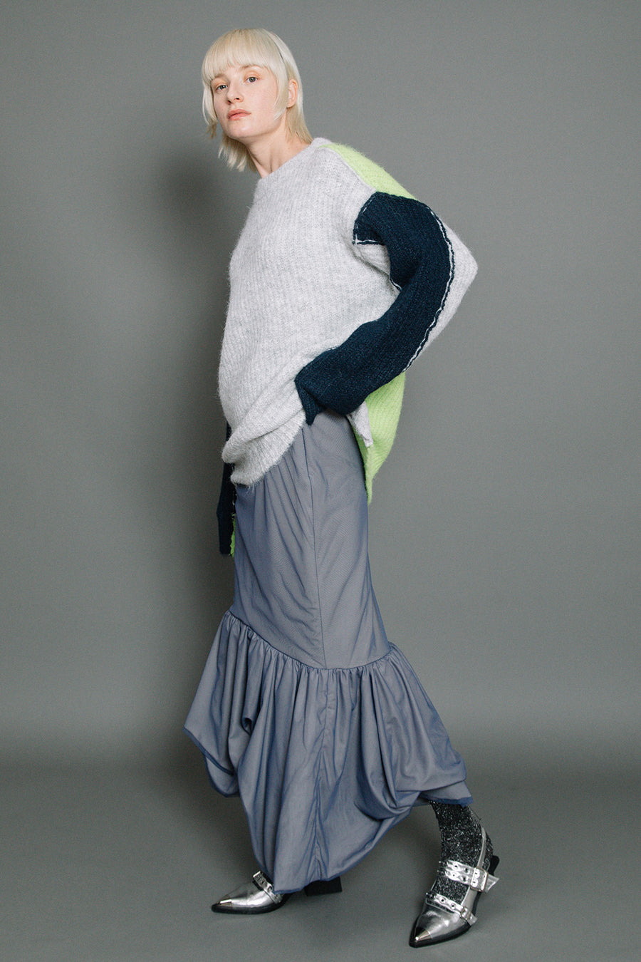 素材は、回収されたペットボトルから作られたリサイクルポリエステル糸を混紡した、モヘアタッチのタム糸を使用。