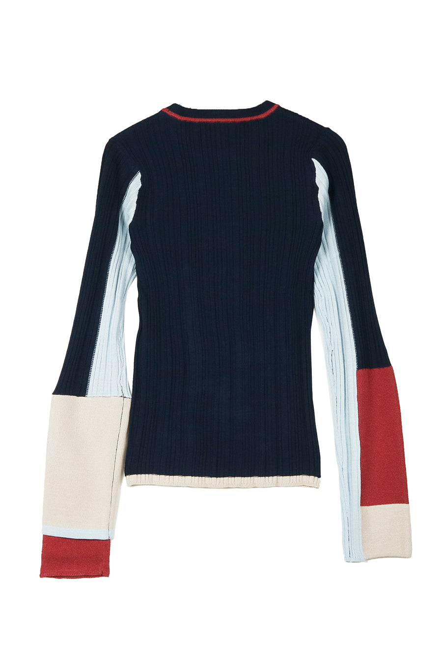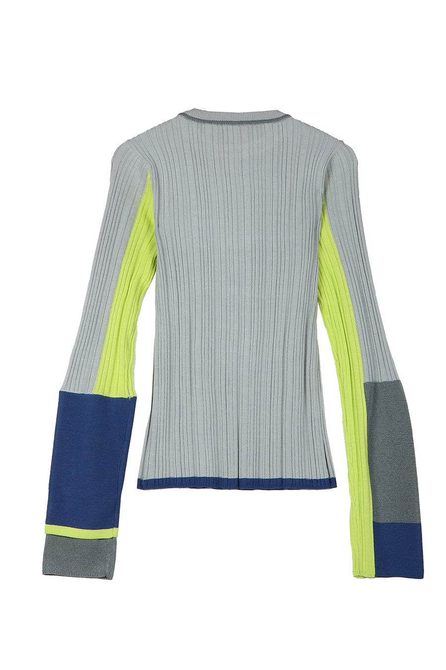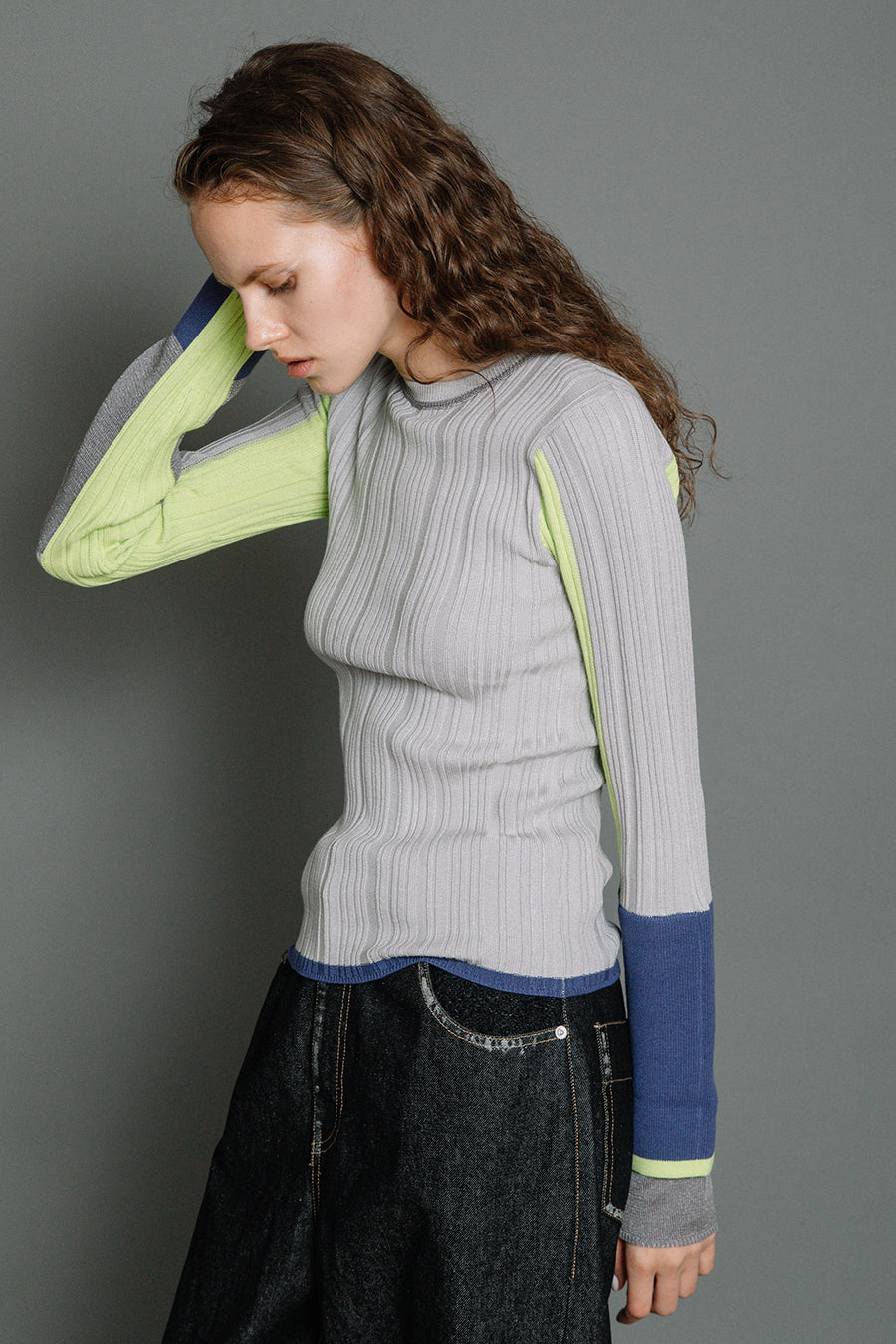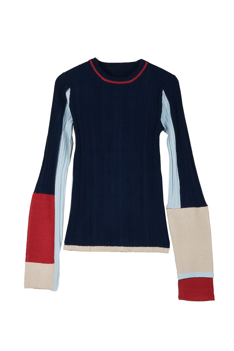 4色のカラーブロックは1枚でも映え、インナーとしても着回し易いよう、カラーバランスにも拘ったアイテム。