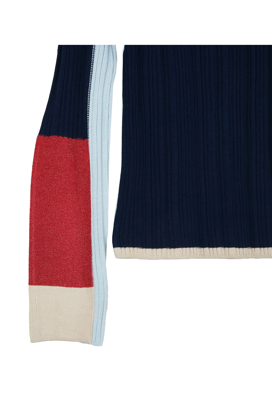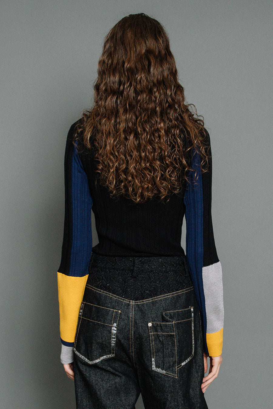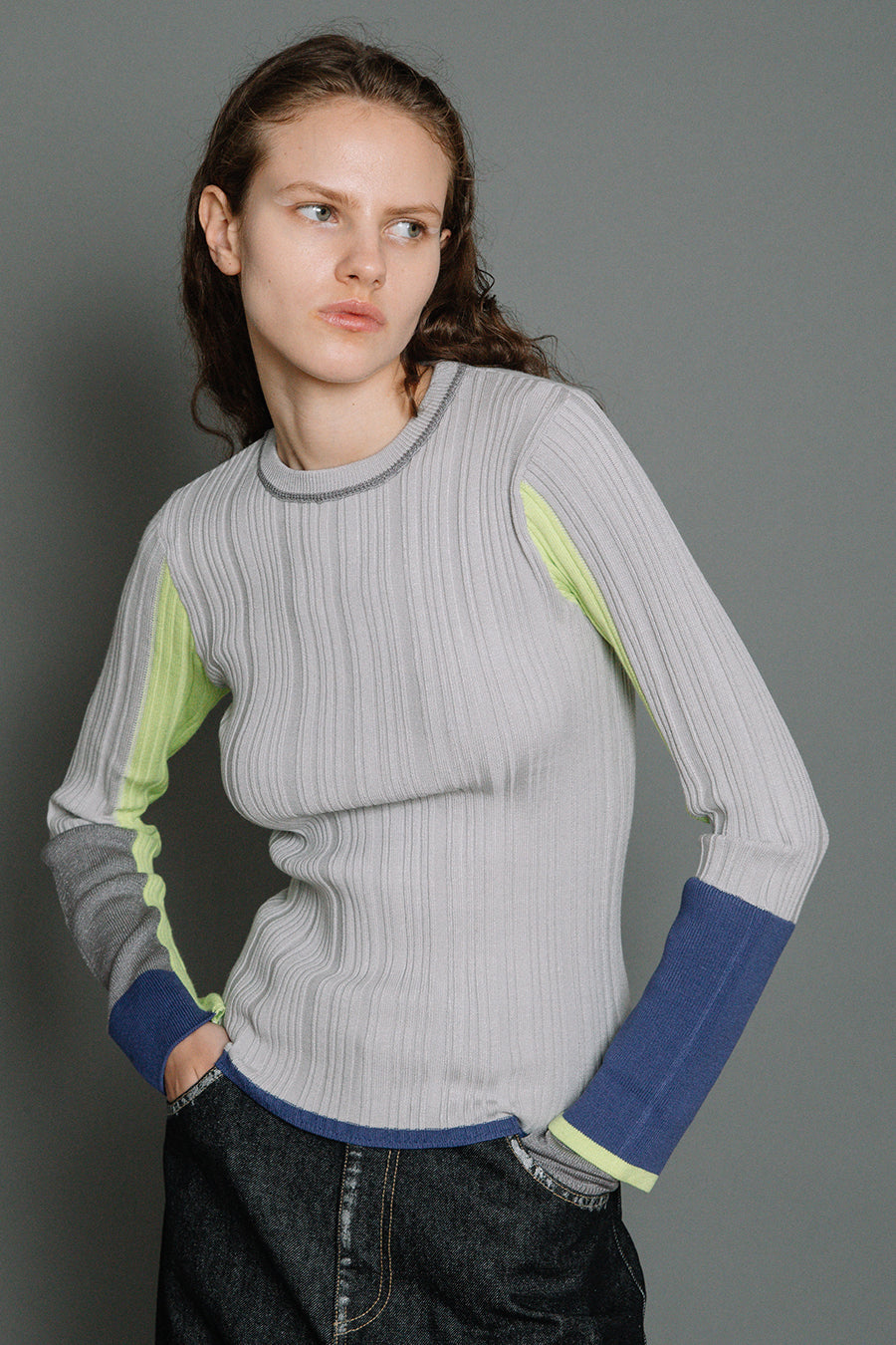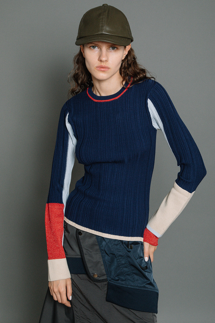 4色のカラーブロックは1枚でも映え、インナーとしても着回し易いよう、カラーバランスにも拘ったアイテム。