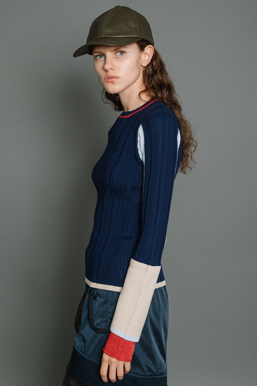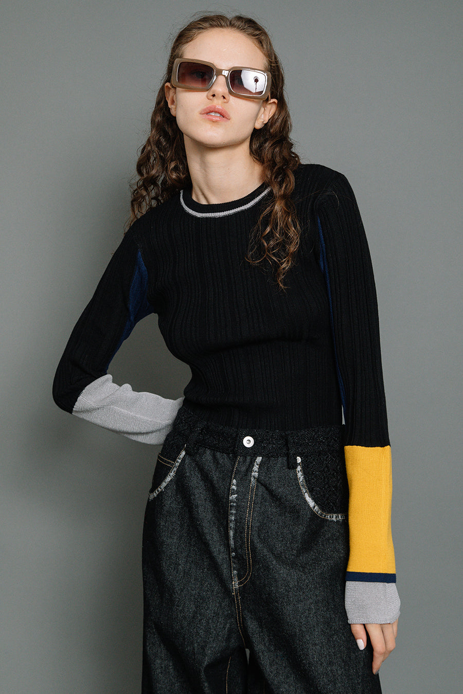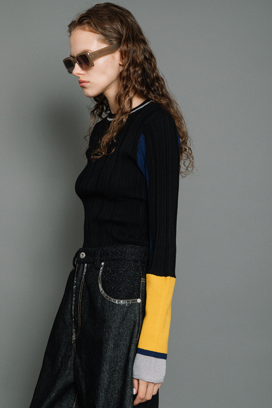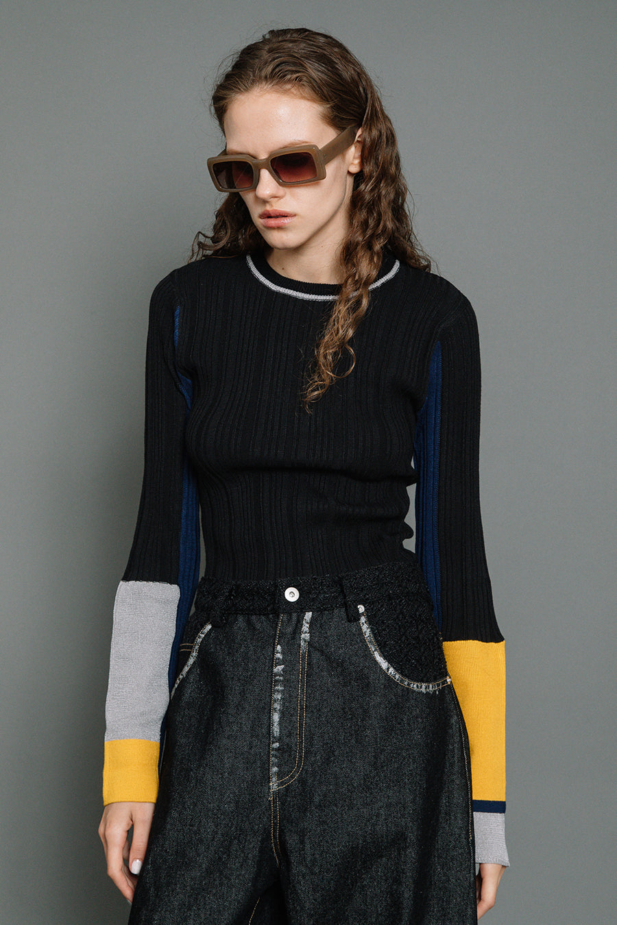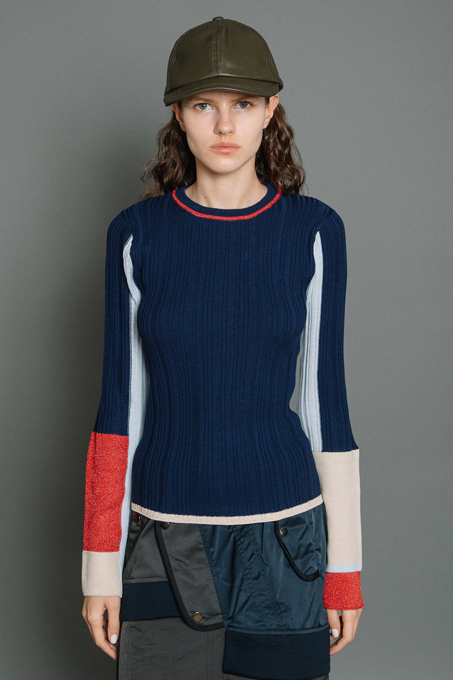 4色のカラーブロックは1枚でも映え、インナーとしても着回し易いよう、カラーバランスにも拘ったアイテム。