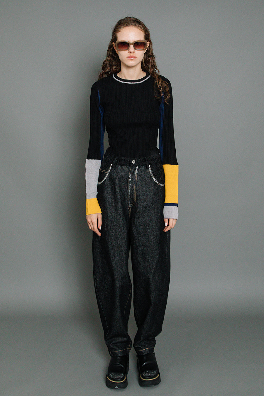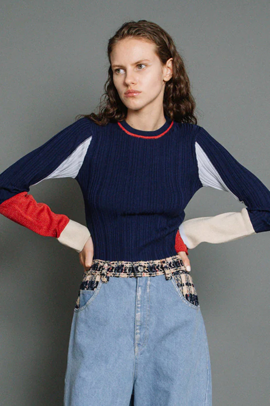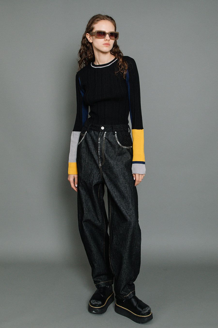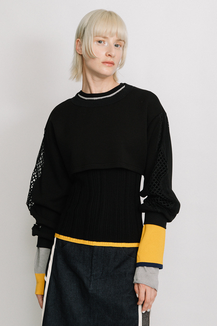 4色のカラーブロックは1枚でも映え、インナーとしても着回し易いよう、カラーバランスにも拘ったアイテム。
