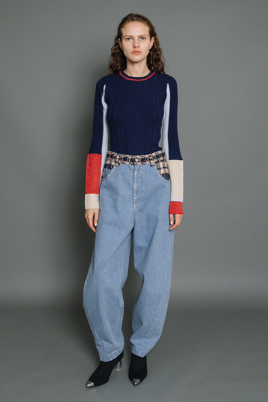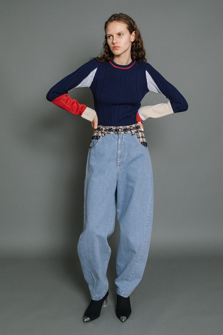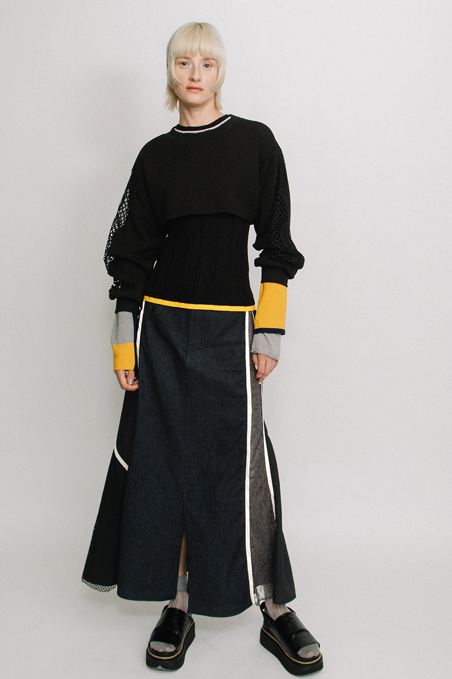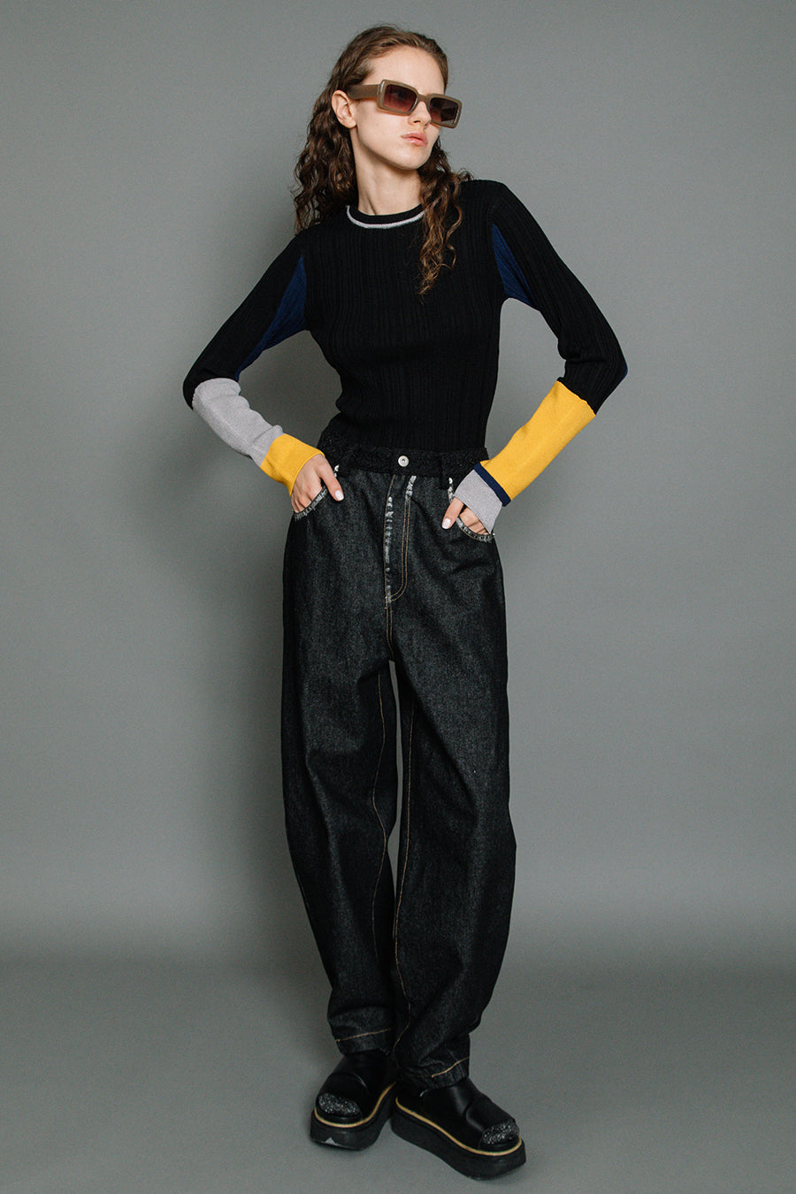 4色のカラーブロックは1枚でも映え、インナーとしても着回し易いよう、カラーバランスにも拘ったアイテム。