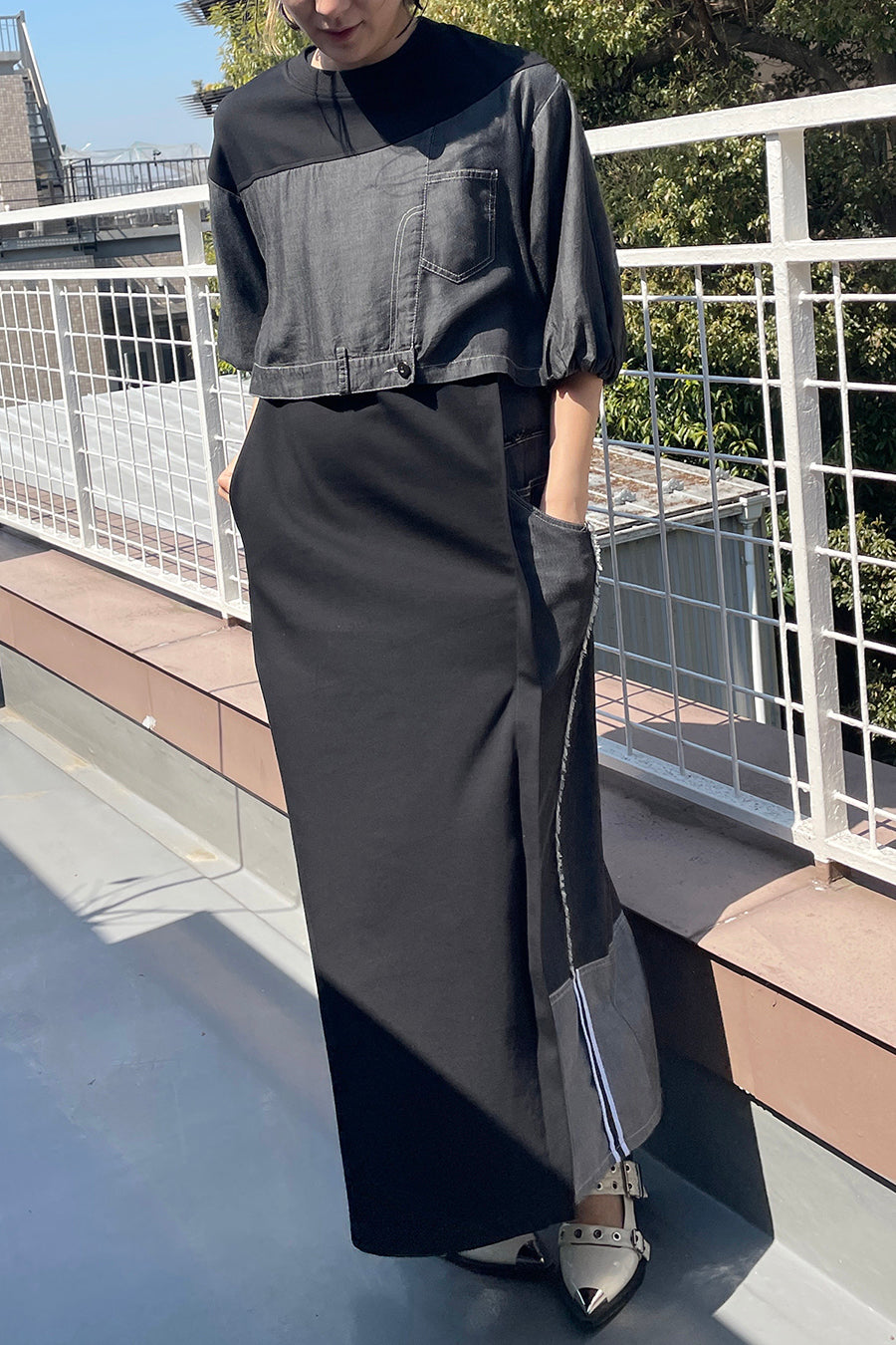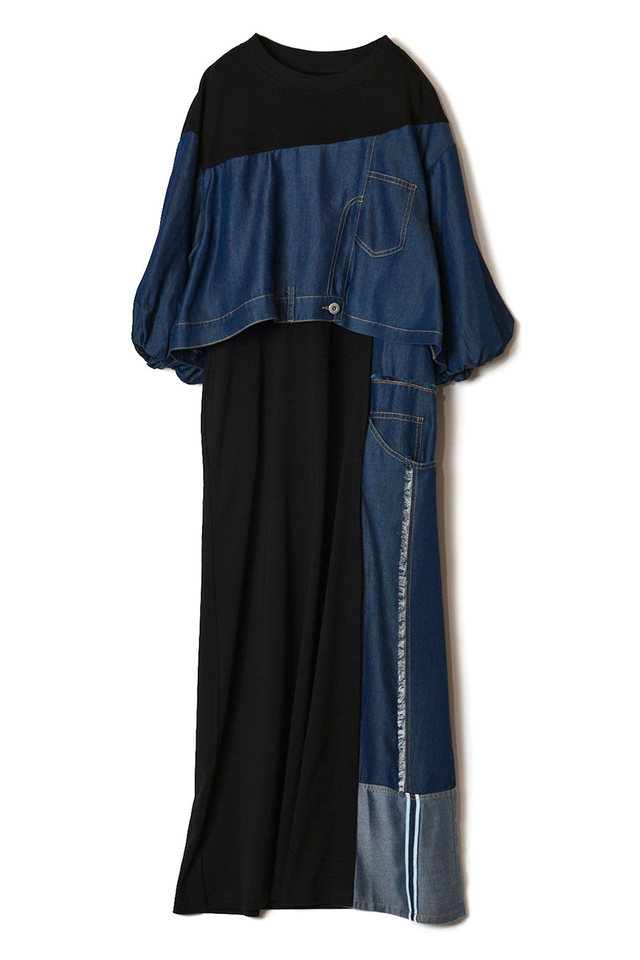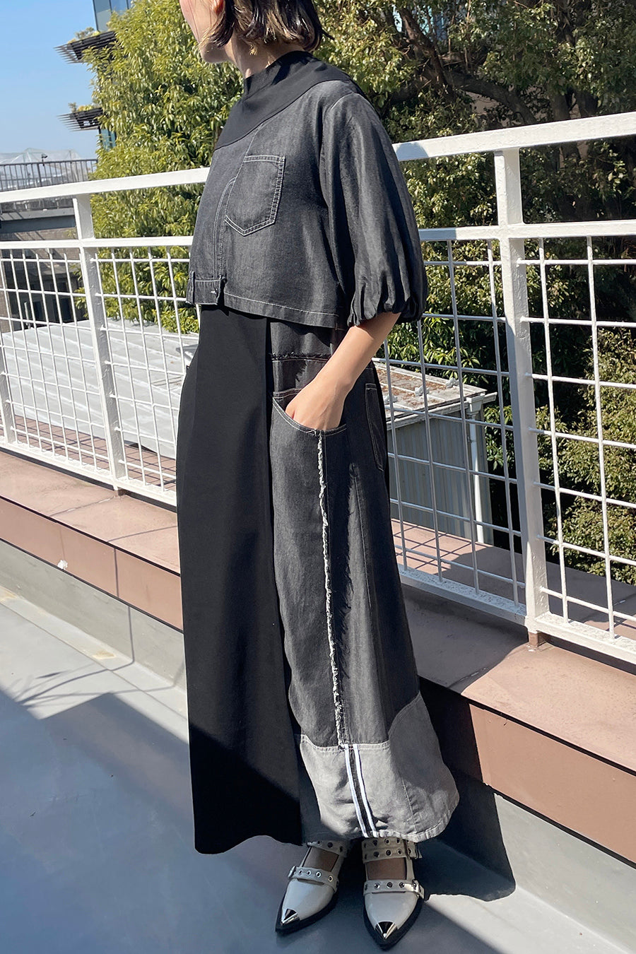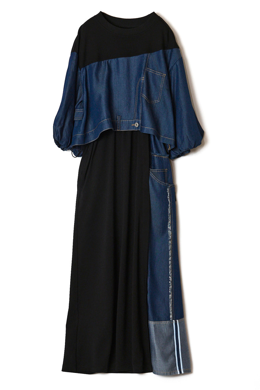 DENIM COMBINATION CUT&SEW ONE PIECE