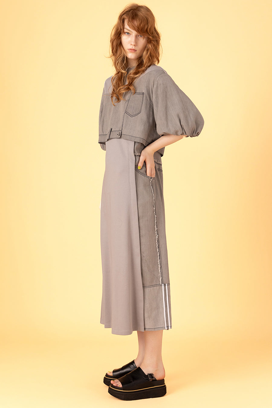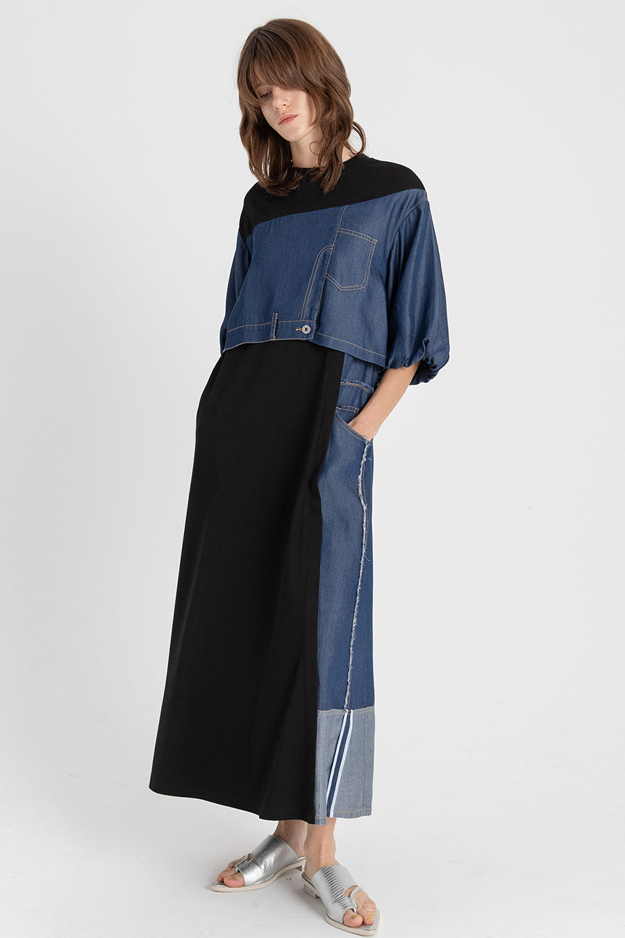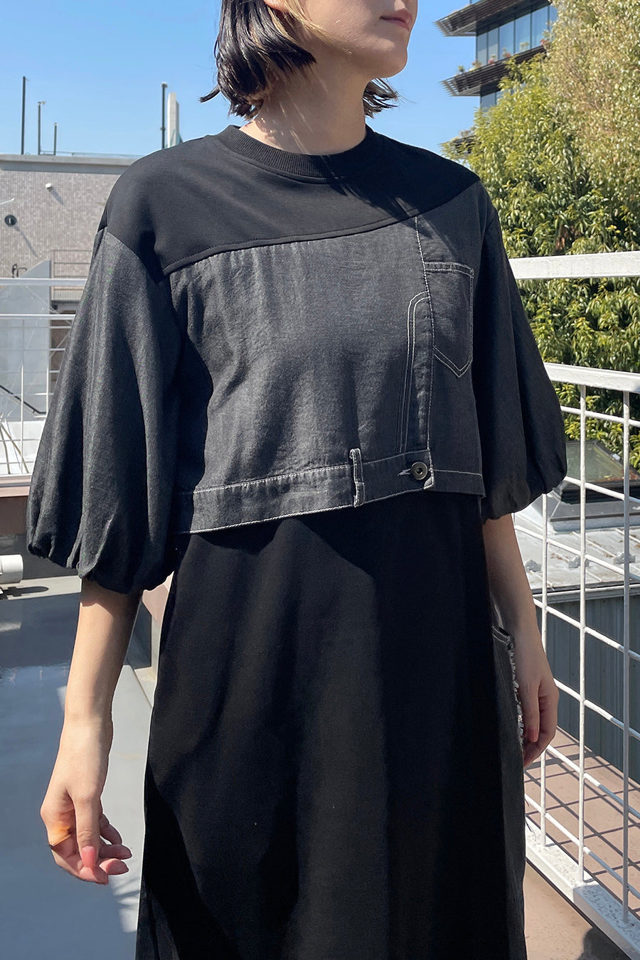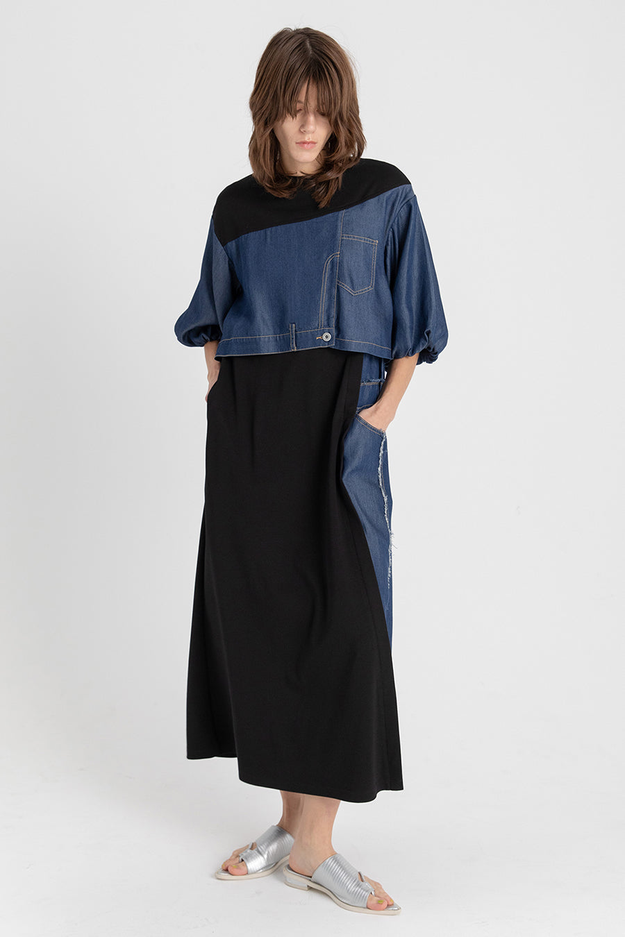 DENIM COMBINATION CUT&SEW ONE PIECE