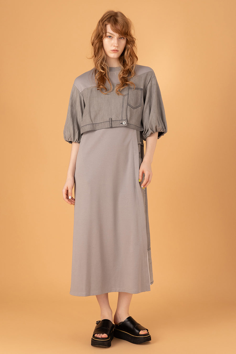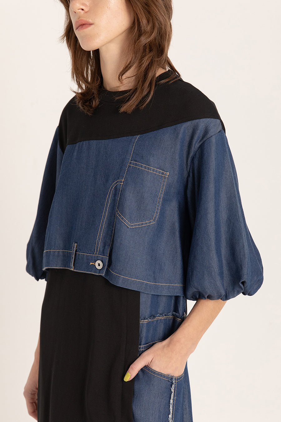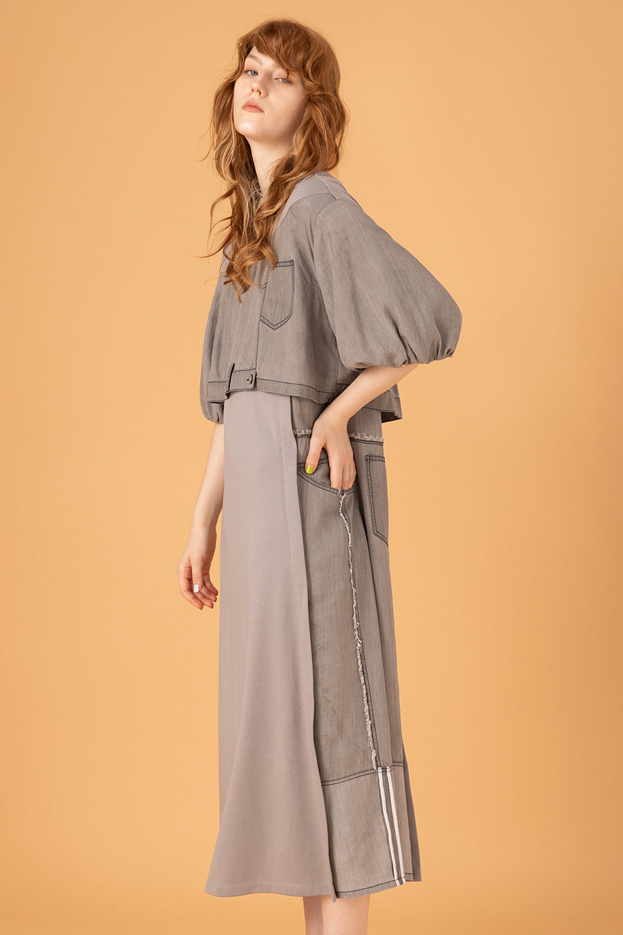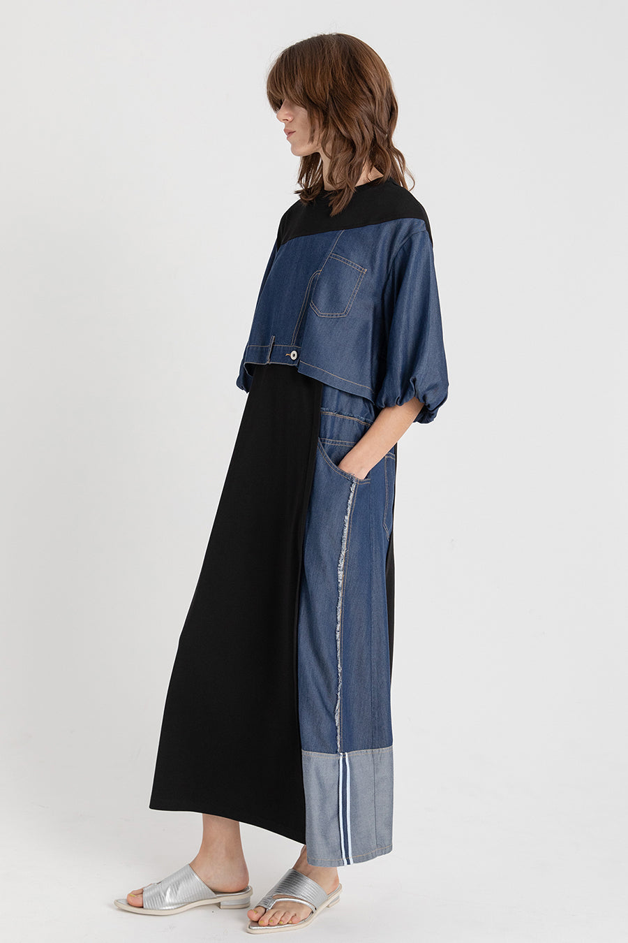 DENIM COMBINATION CUT&SEW ONE PIECE