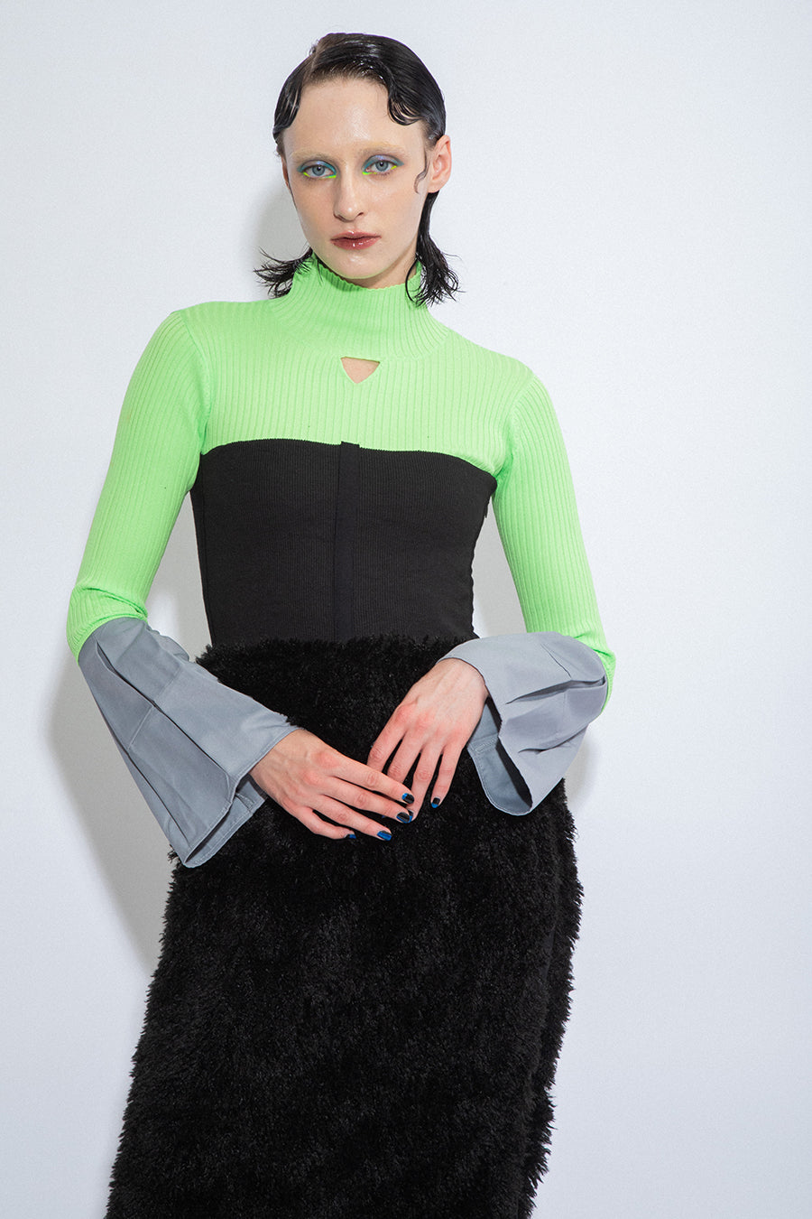 モデル着用アイテム:FLARE SLEEVE KNIT