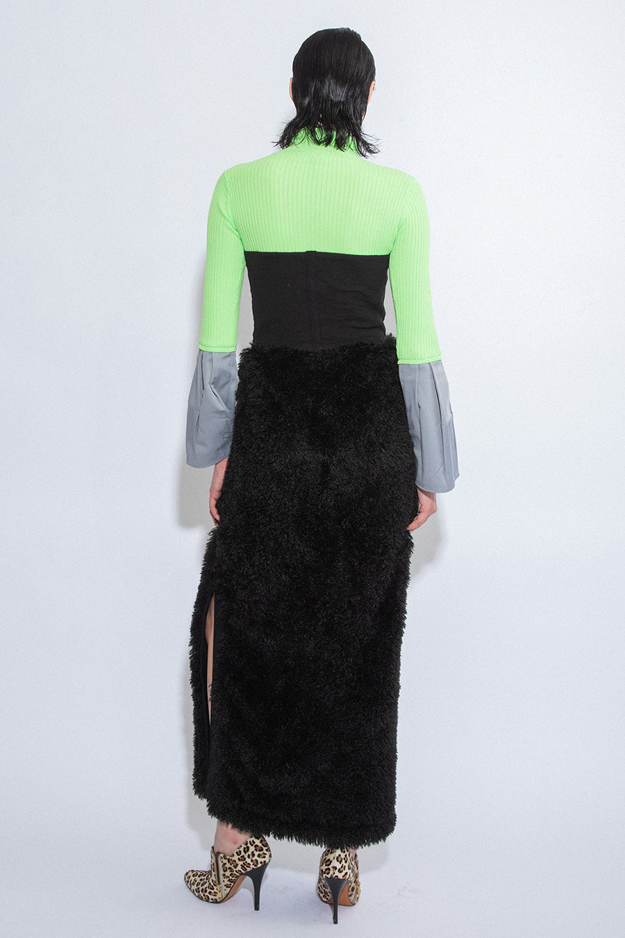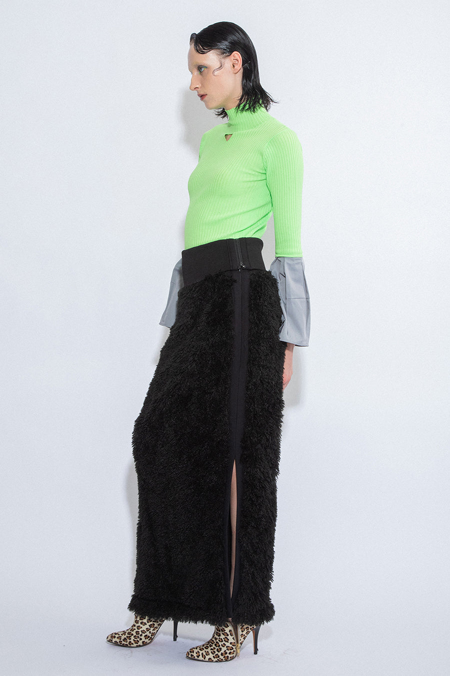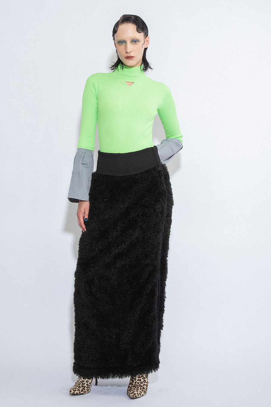 リブを折り返すとスカートとしても着用出来る2WAY仕様で、左脇スリットはクールで綺麗めに見え、大人っぽい雰囲気に。