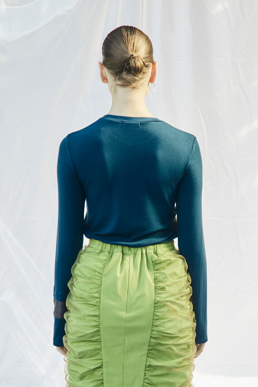 リブは薄すぎず程よい厚みでストレッチのある着心地良い素材を使用。バスト・アームホールもゆとりがあるサイズ感で体のラインを拾わずにシルエットを美しくみせてくれます。