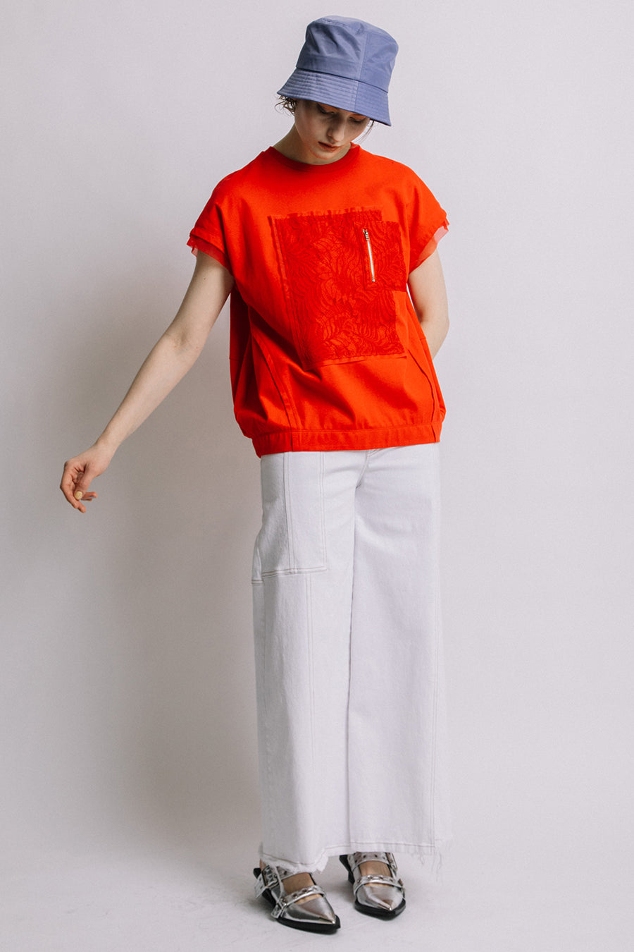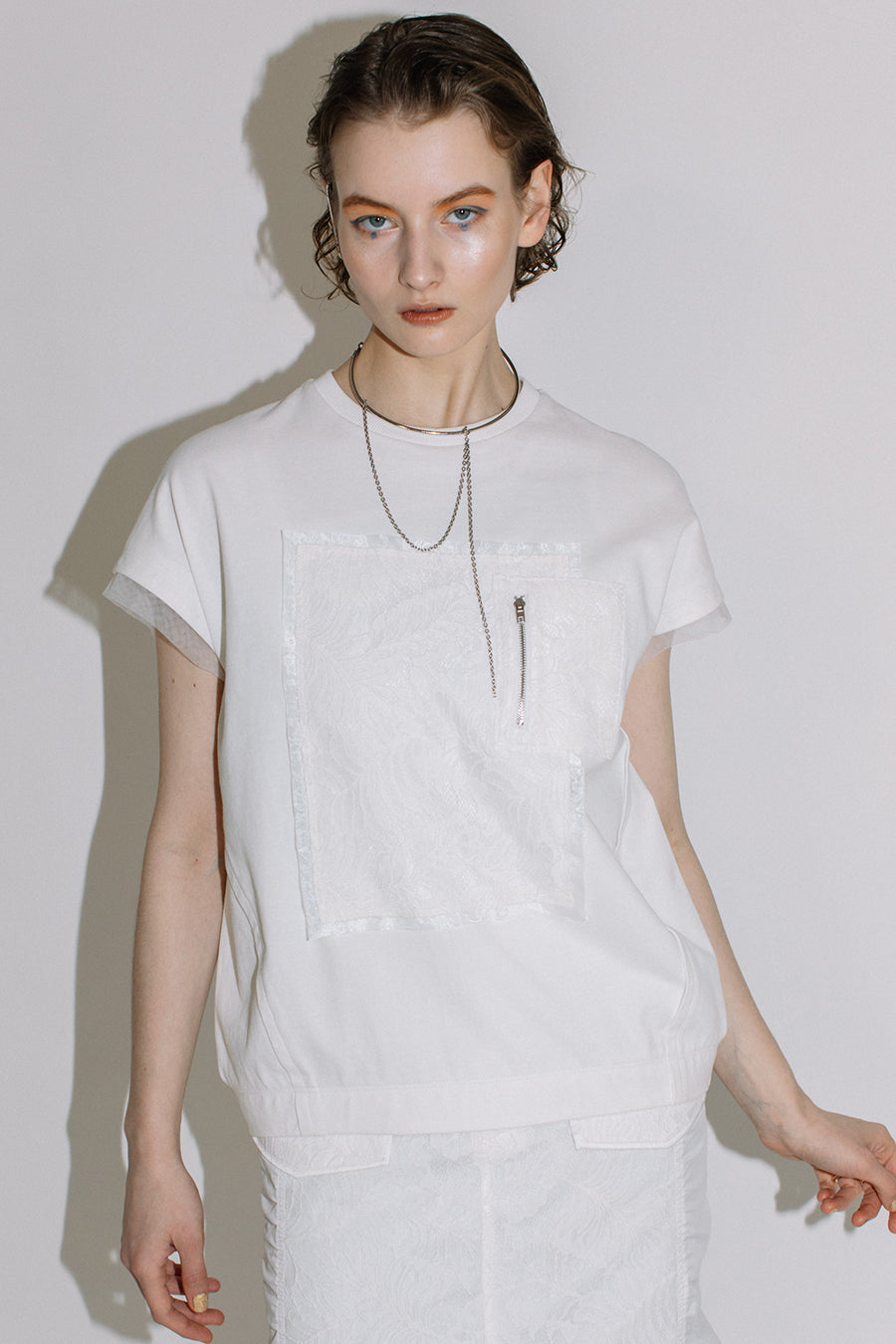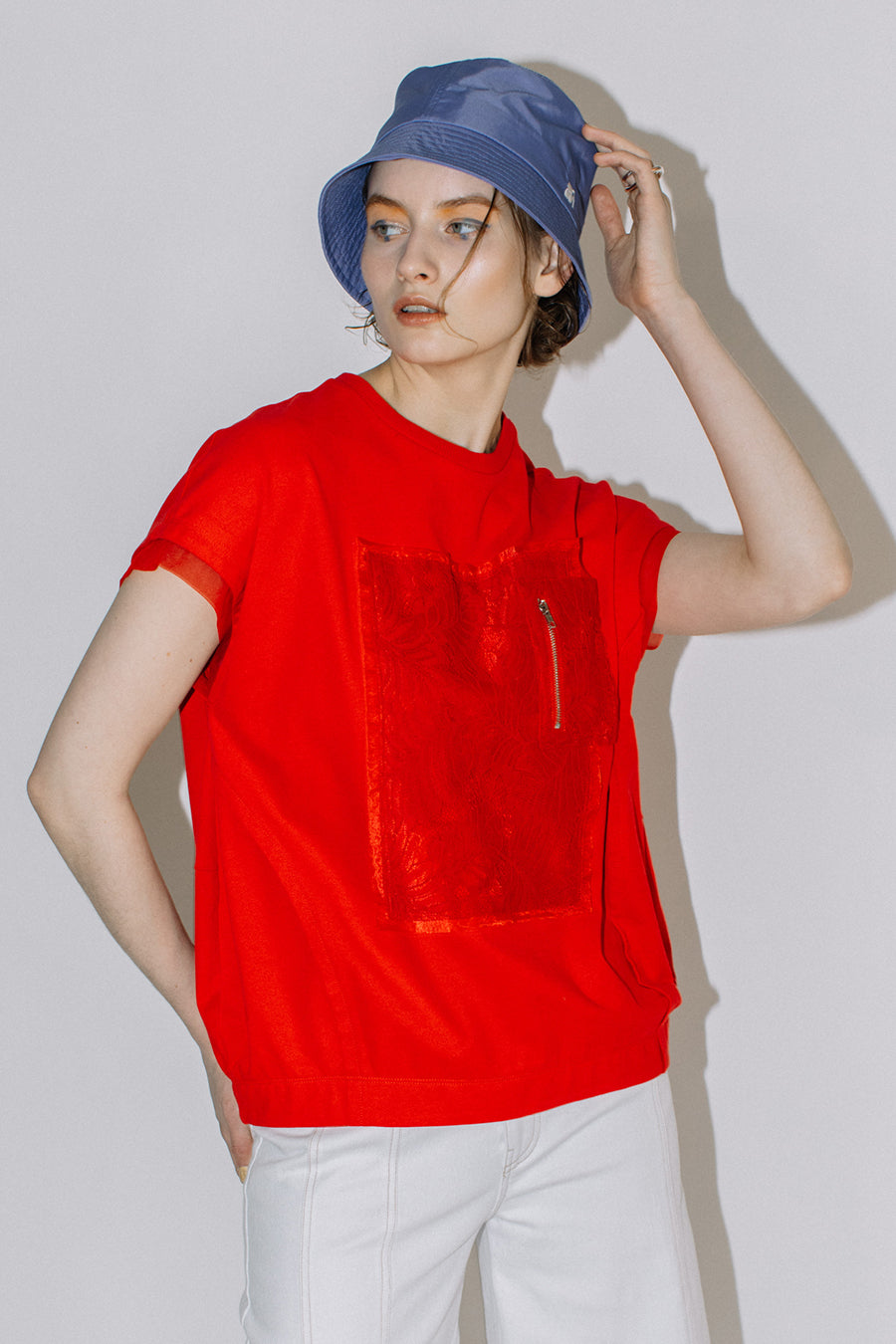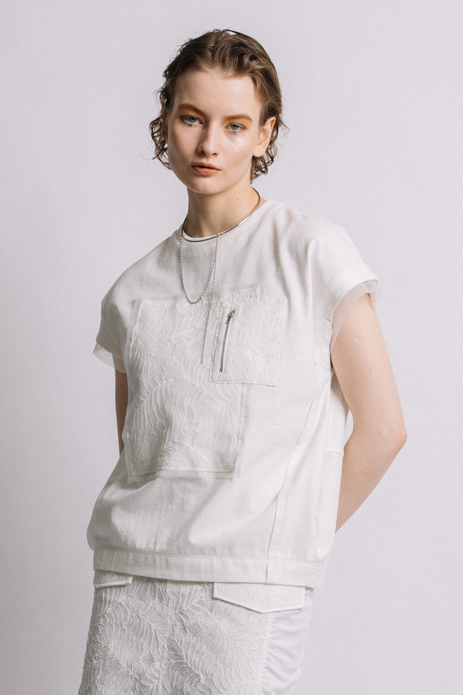 繊細なボタニカル柄レースがまるでプリントTシャツのようにフロントに施された大人のこなれ感を引き立たせる一枚。きれいめなコットンスムース素材を使用し、ゆとりを持たせたシルエットで、袖は二の腕をカバーしてくれるフレンチスリーブに。袖口と裾にはチュールが覗いているようなレイヤードデザインで遊び心をプラス。後ろはさりげないコクーンシルエットで膨らみすぎず、程よい立体感を構築。生地と同色のレースを使用し、華やかさがありながら大人のスタイリングに溶け込む着回し力抜群のアイテム。ボトムを選ぶこと無く、カジュアルからキレイめスタイルまで幅広く着回しがきくのも◎