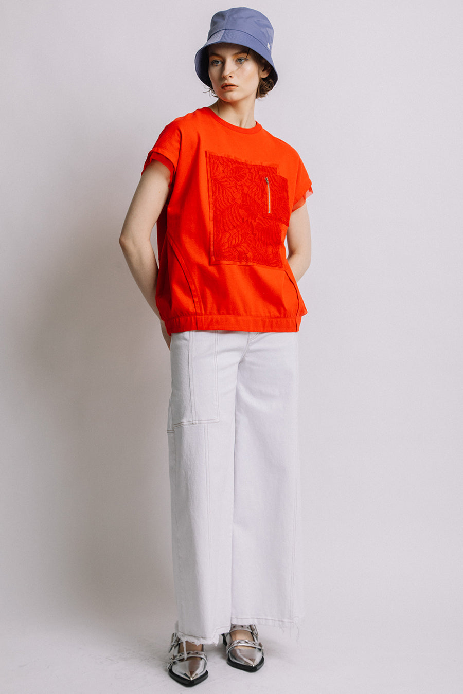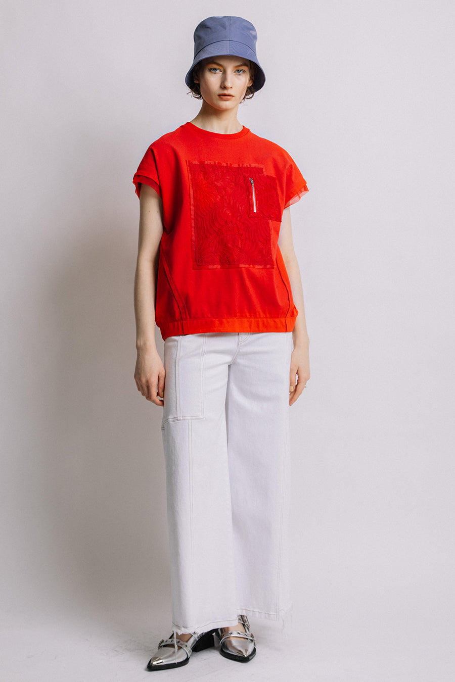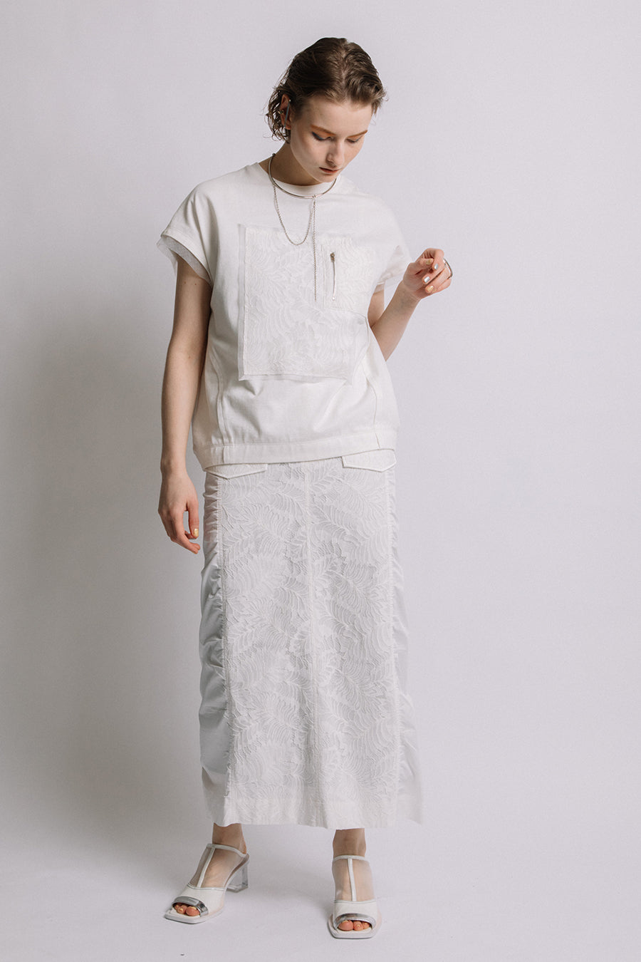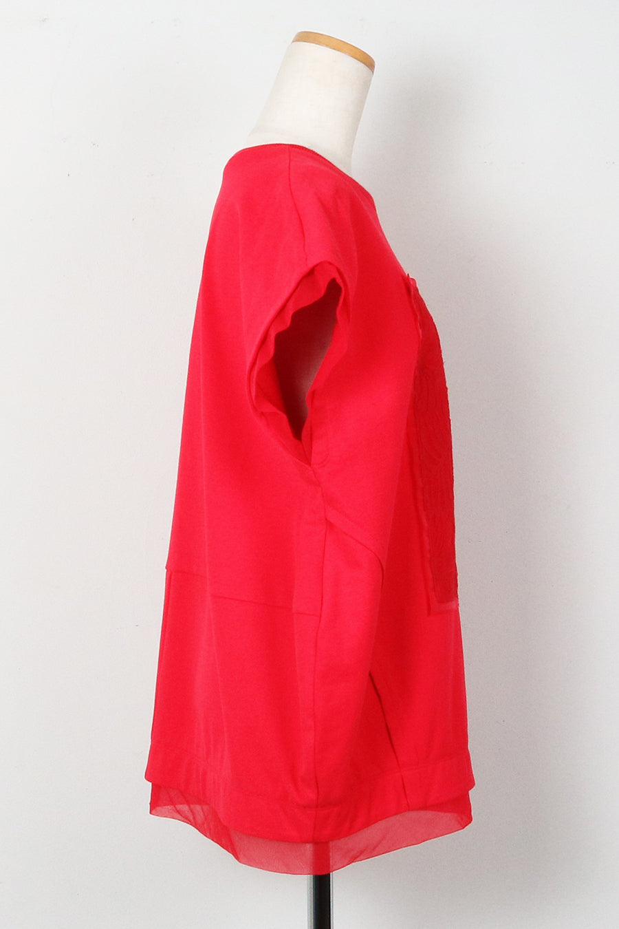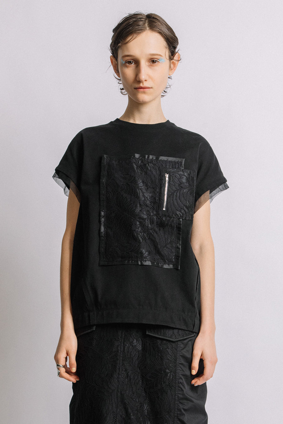 繊細なボタニカル柄レースがまるでプリントTシャツのようにフロントに施された大人のこなれ感を引き立たせる一枚。きれいめなコットンスムース素材を使用し、ゆとりを持たせたシルエットで、袖は二の腕をカバーしてくれるフレンチスリーブに。袖口と裾にはチュールが覗いているようなレイヤードデザインで遊び心をプラス。後ろはさりげないコクーンシルエットで膨らみすぎず、程よい立体感を構築。生地と同色のレースを使用し、華やかさがありながら大人のスタイリングに溶け込む着回し力抜群のアイテム。ボトムを選ぶこと無く、カジュアルからキレイめスタイルまで幅広く着回しがきくのも◎