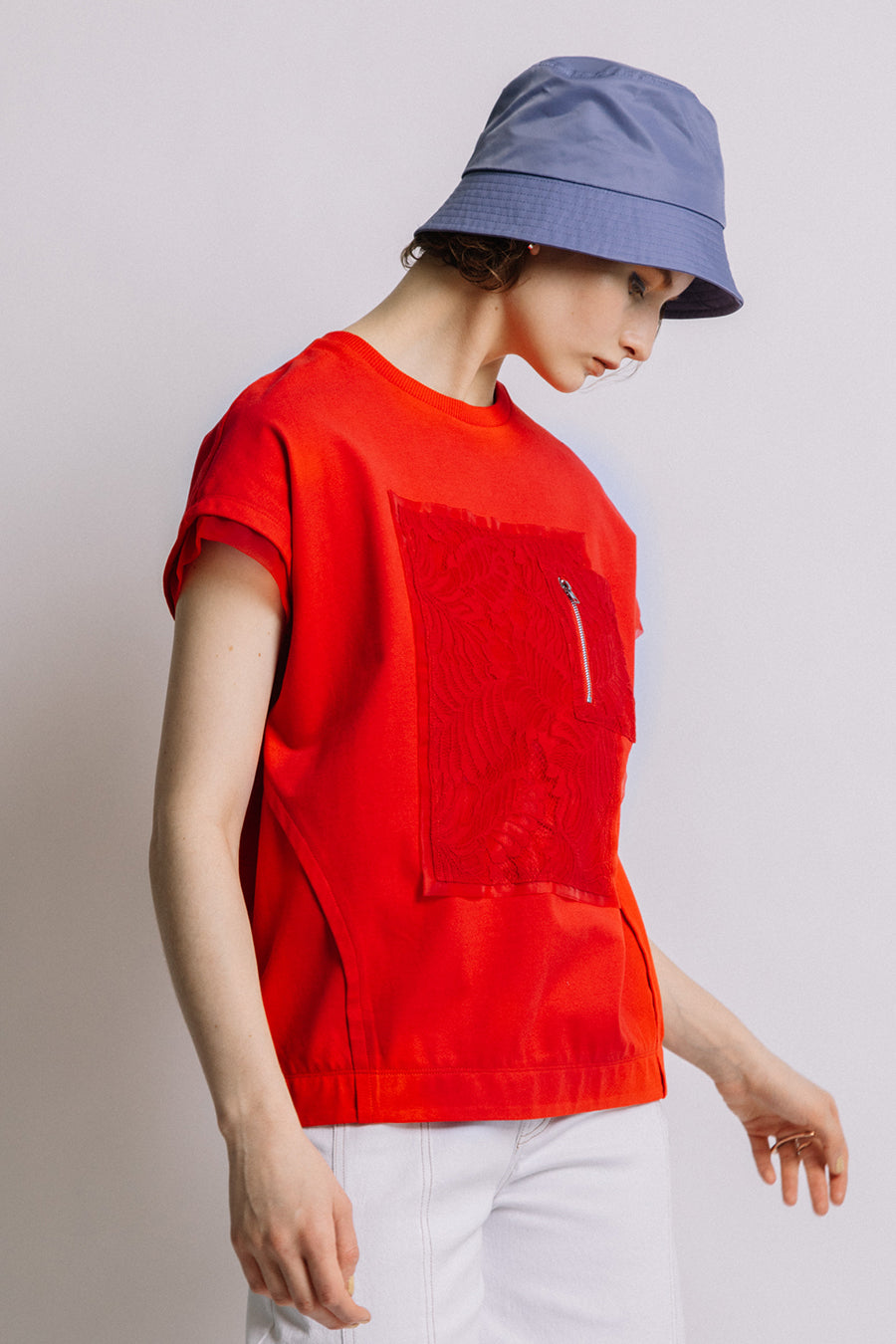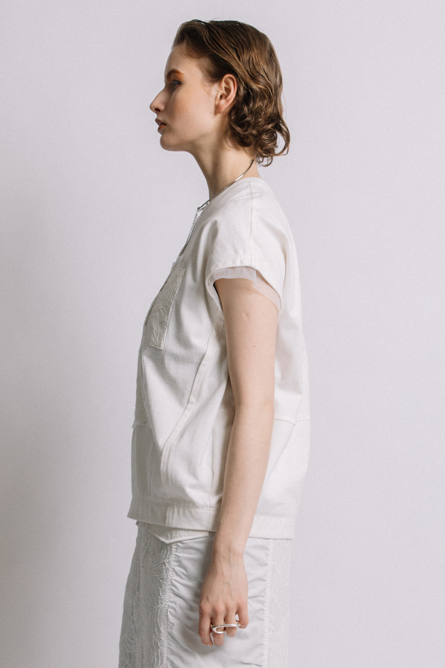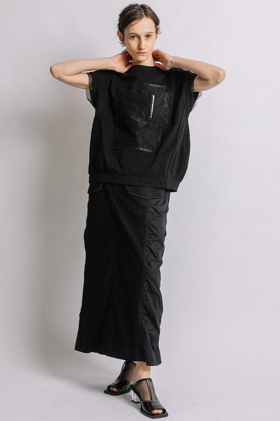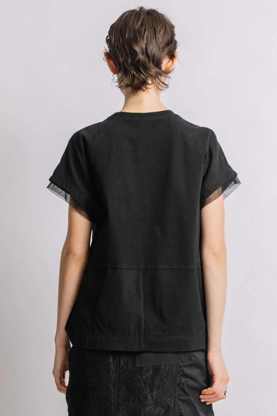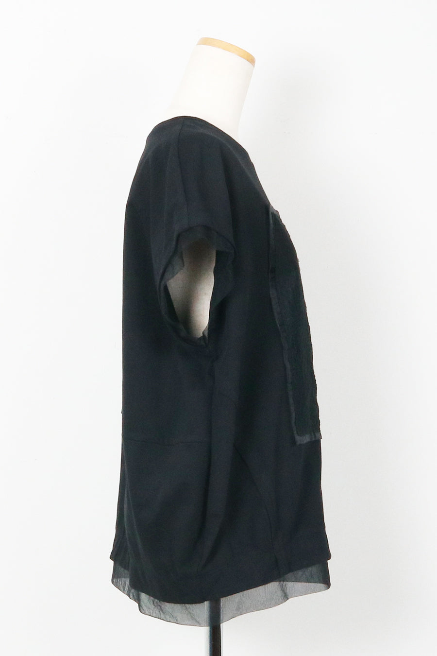 繊細なボタニカル柄レースがまるでプリントTシャツのようにフロントに施された大人のこなれ感を引き立たせる一枚。きれいめなコットンスムース素材を使用し、ゆとりを持たせたシルエットで、袖は二の腕をカバーしてくれるフレンチスリーブに。袖口と裾にはチュールが覗いているようなレイヤードデザインで遊び心をプラス。後ろはさりげないコクーンシルエットで膨らみすぎず、程よい立体感を構築。生地と同色のレースを使用し、華やかさがありながら大人のスタイリングに溶け込む着回し力抜群のアイテム。ボトムを選ぶこと無く、カジュアルからキレイめスタイルまで幅広く着回しがきくのも◎