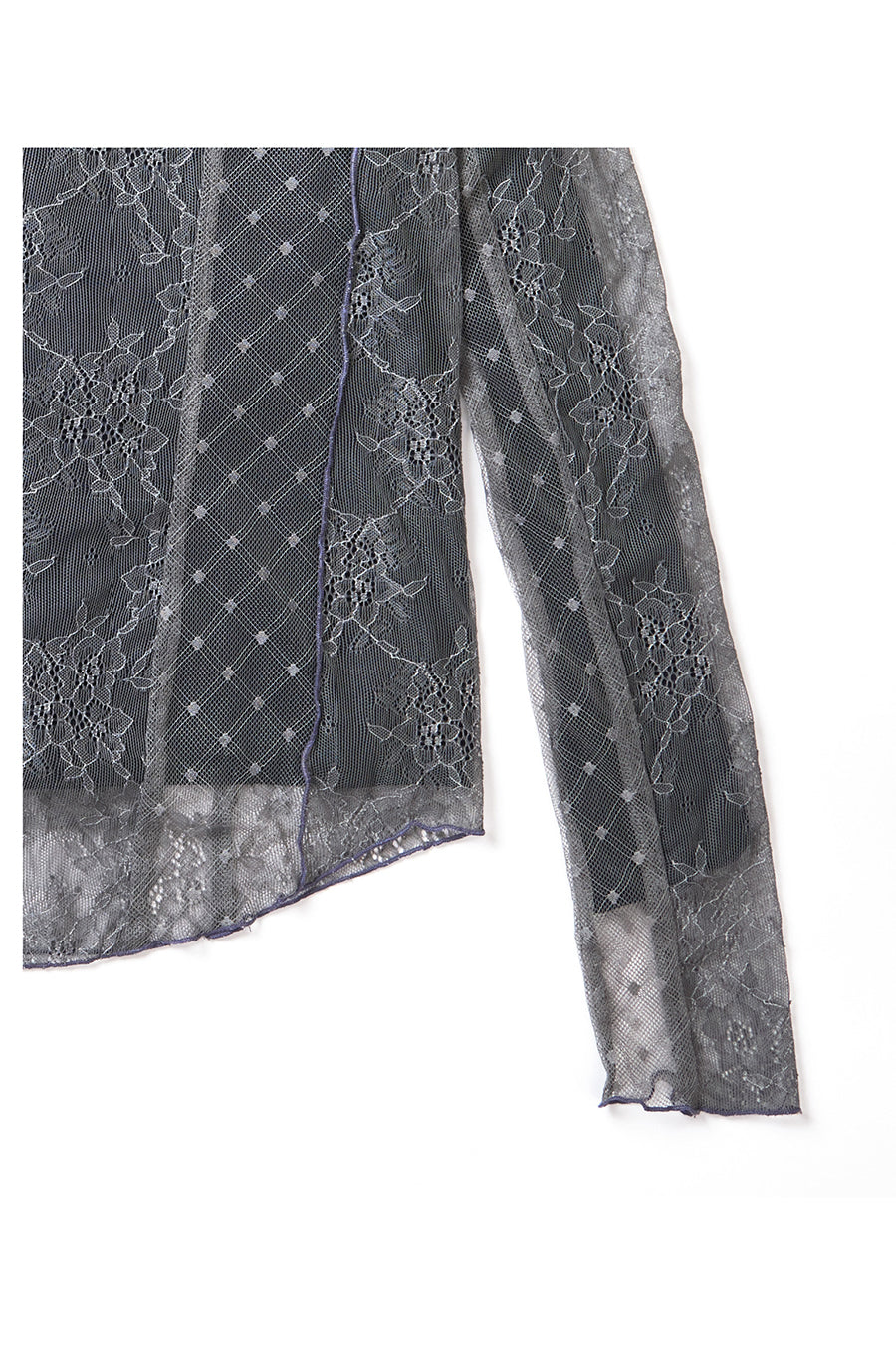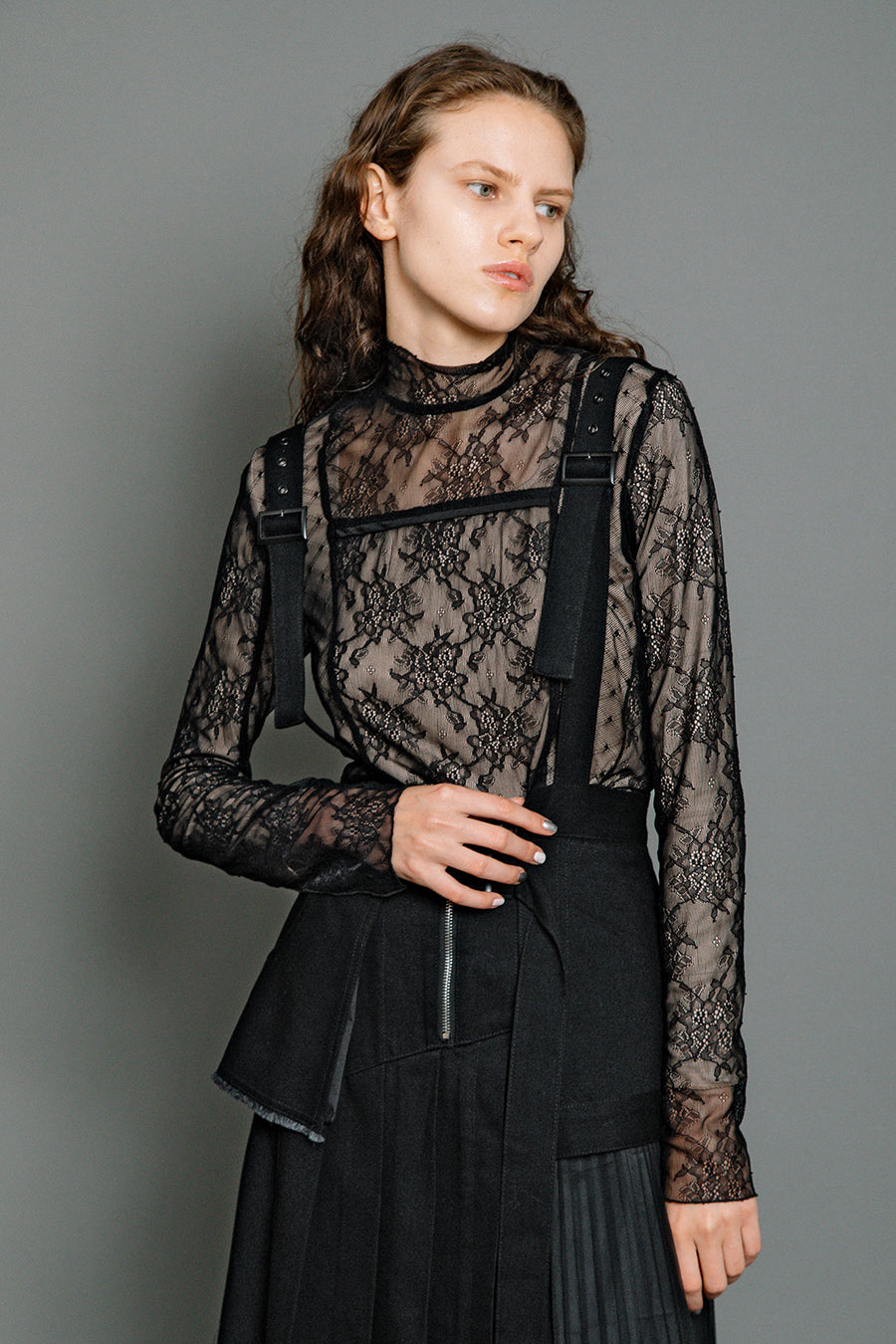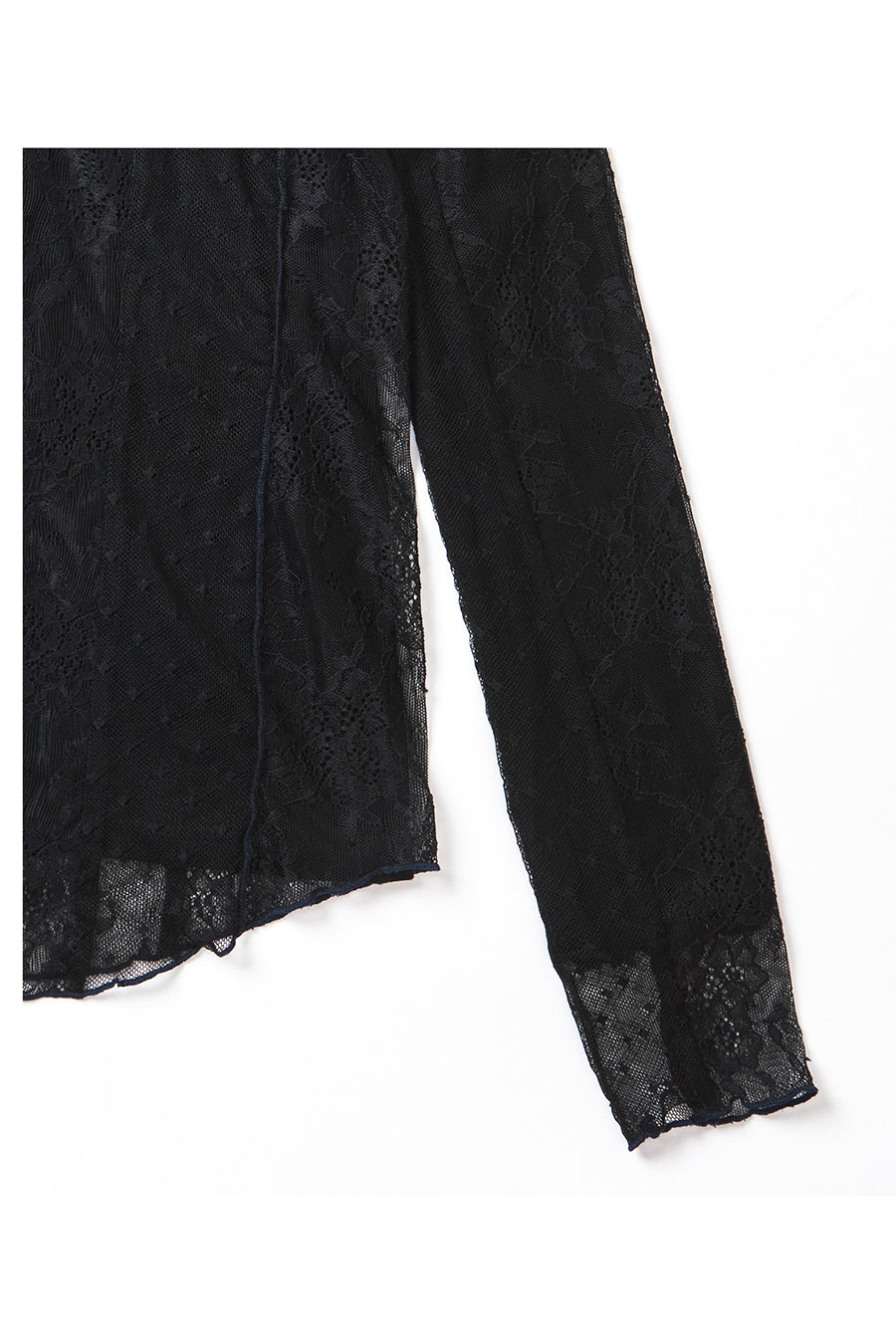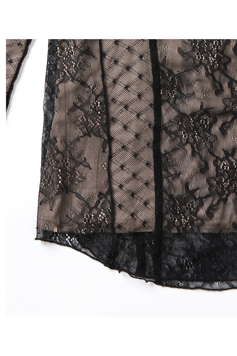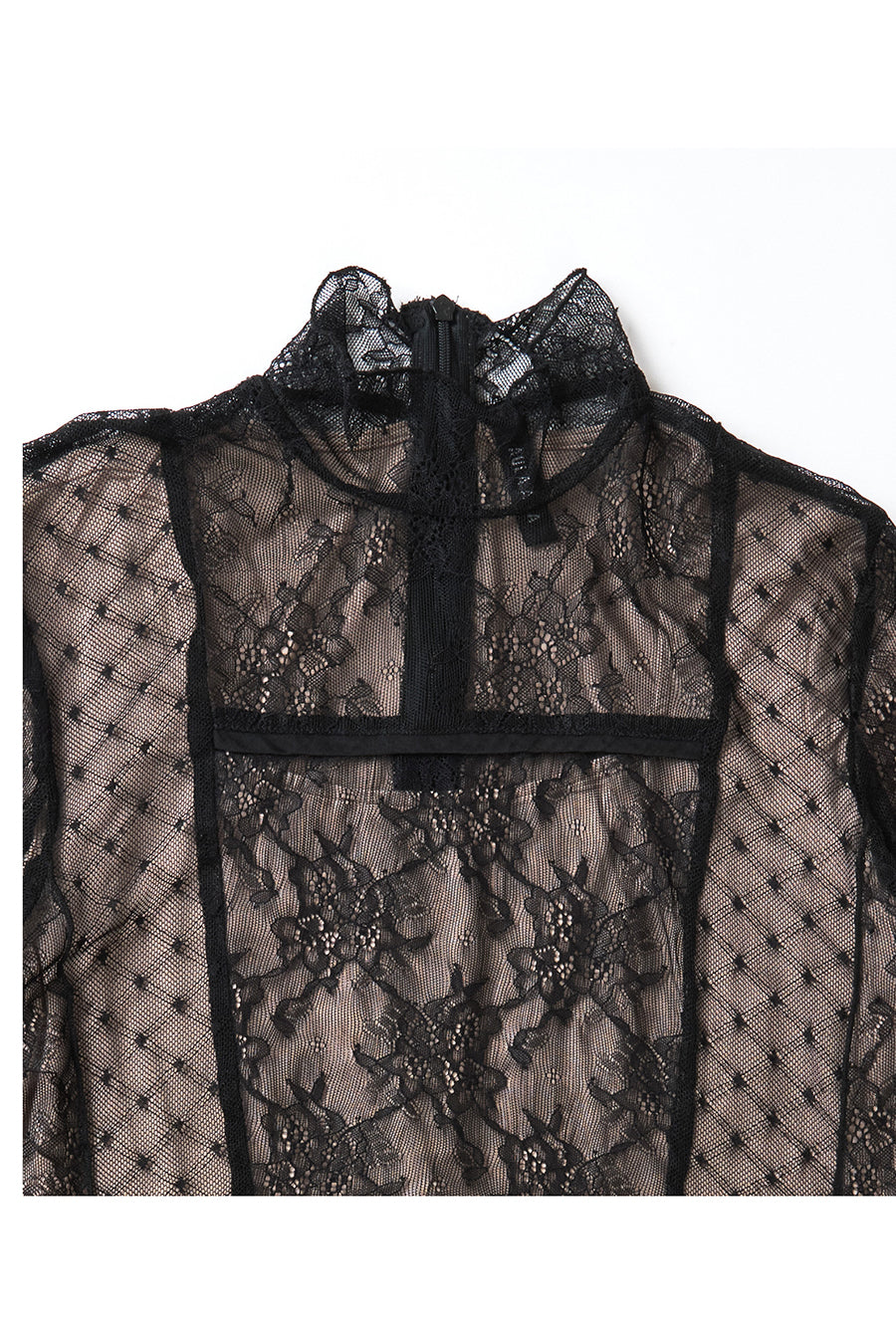 デコルテ部分のみ透け感があり女性らしさを演出しつつも、ストレッチカットソーのインナー付きなので、透け感を気にせず着られるのも嬉しいポイント。