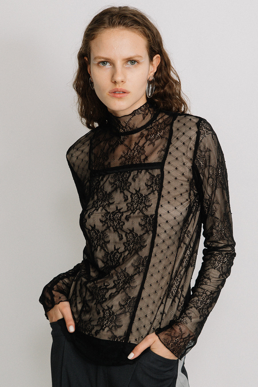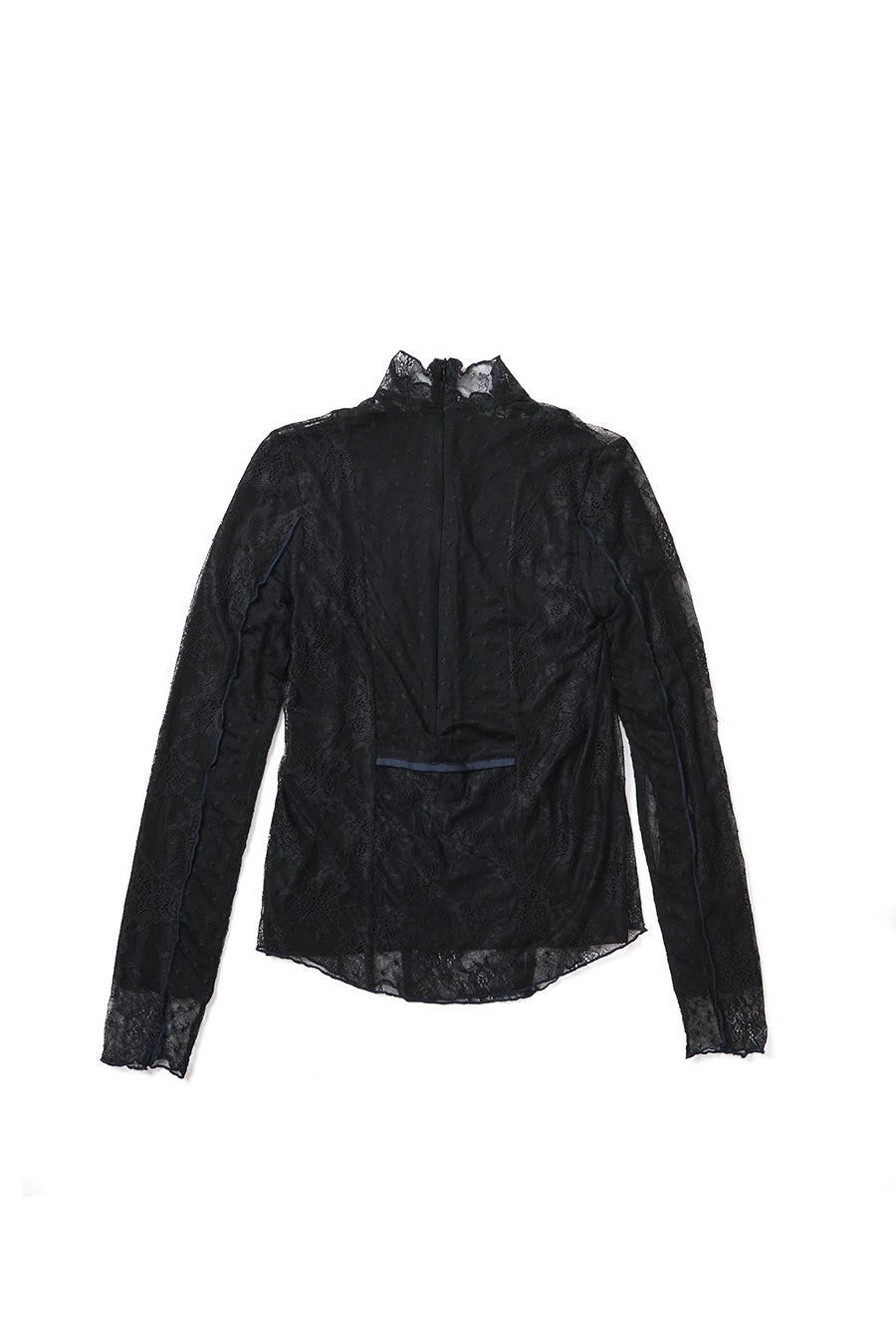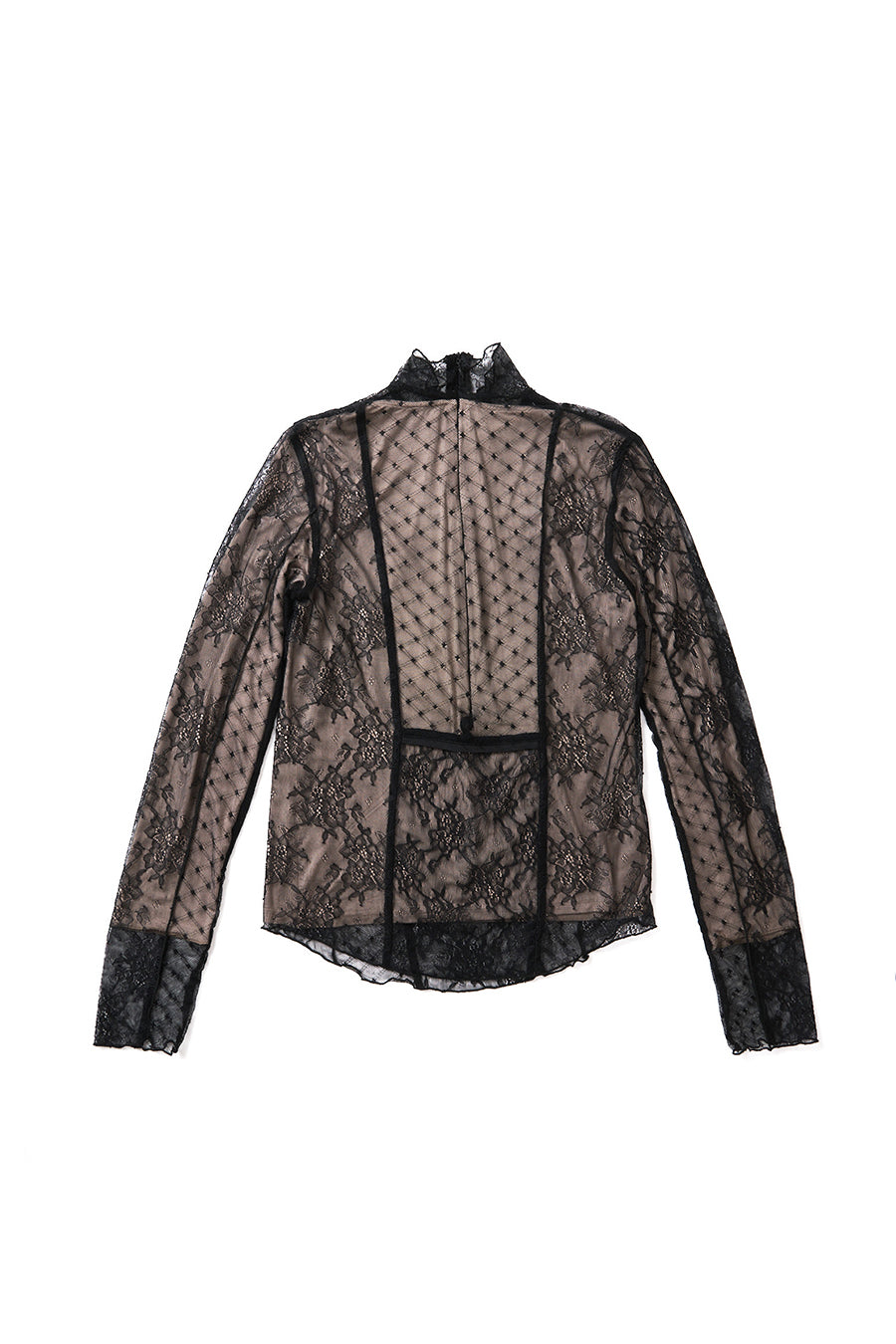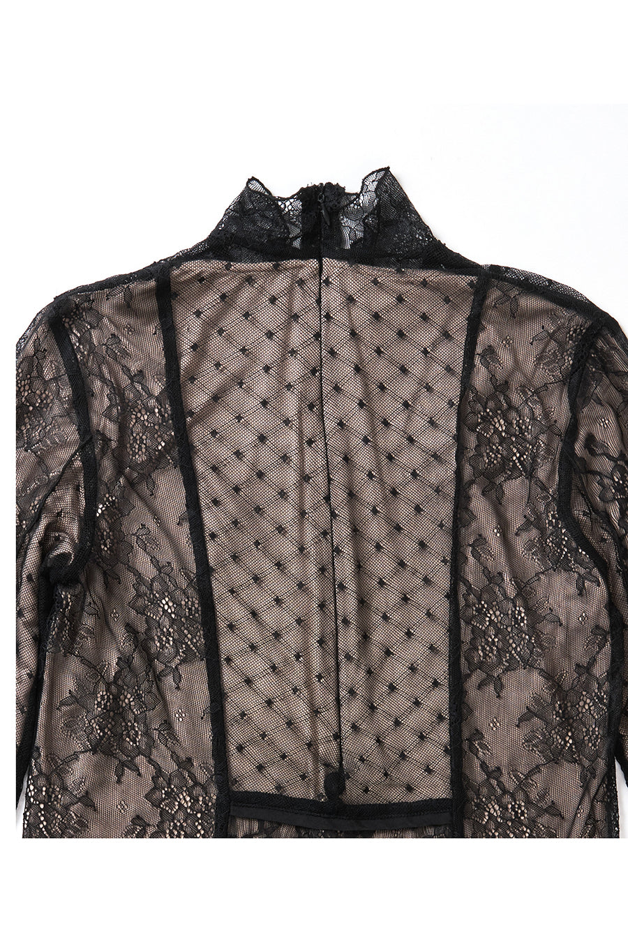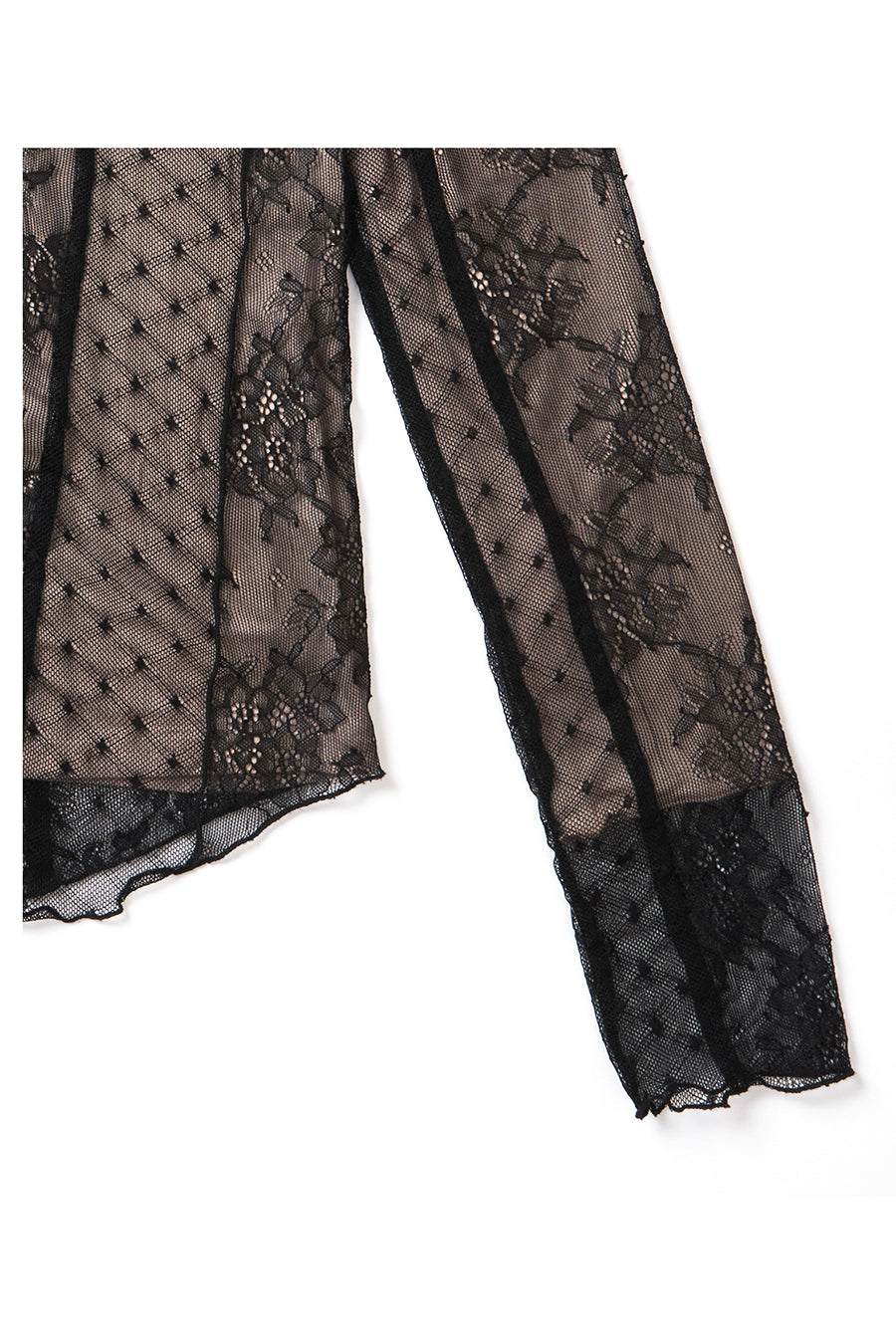 デコルテ部分のみ透け感があり女性らしさを演出しつつも、ストレッチカットソーのインナー付きなので、透け感を気にせず着られるのも嬉しいポイント。