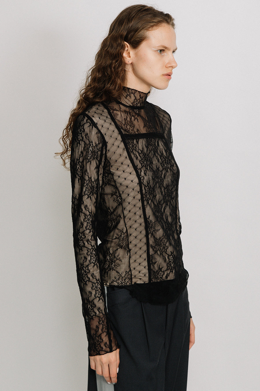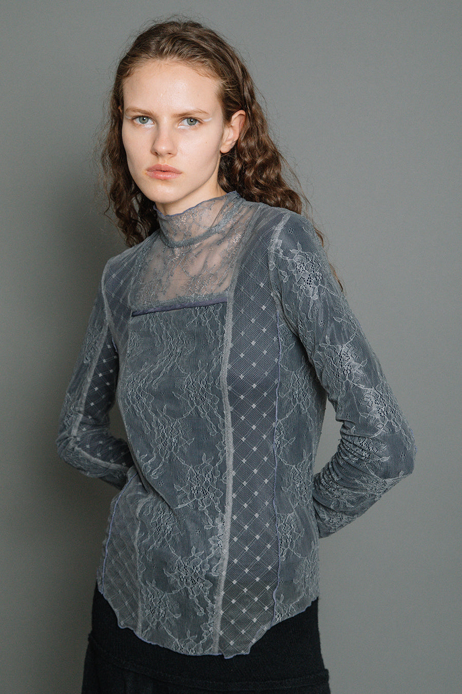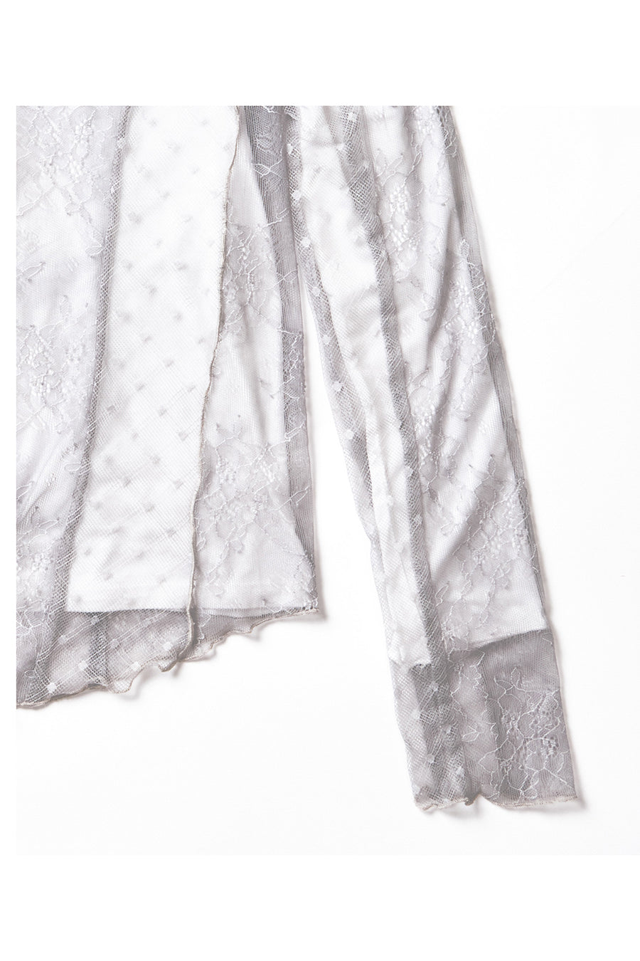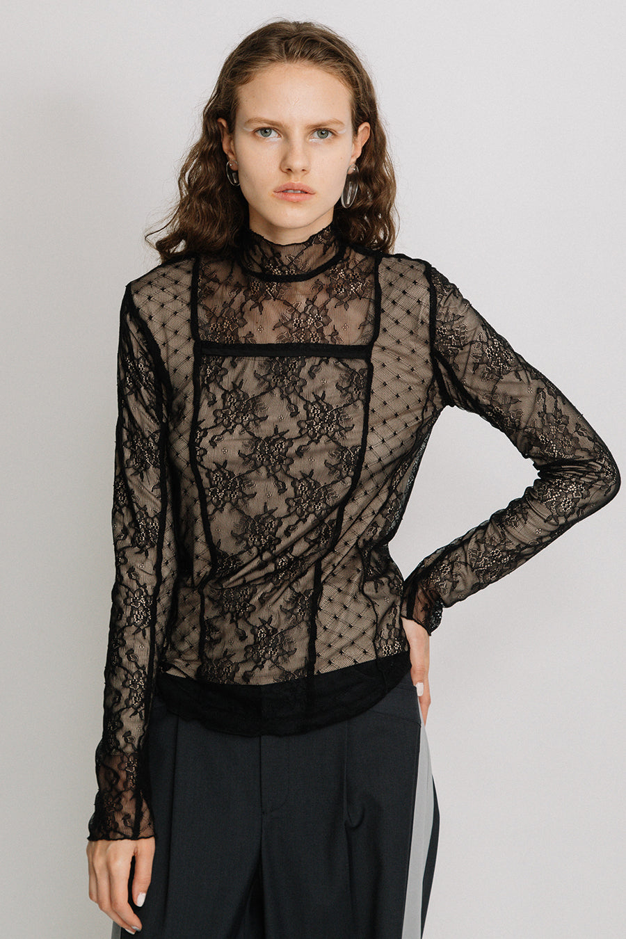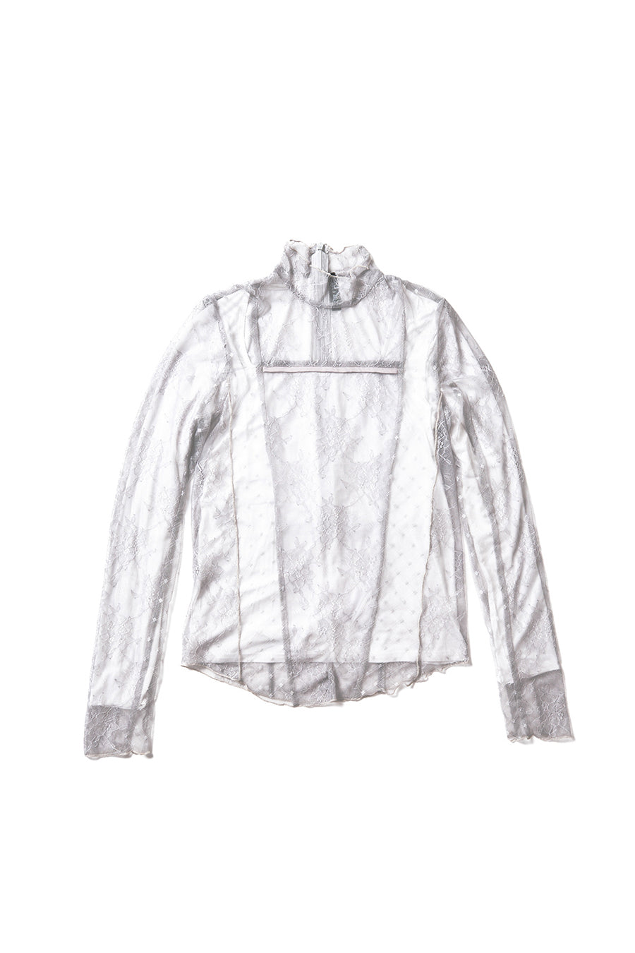 デコルテ部分のみ透け感があり女性らしさを演出しつつも、ストレッチカットソーのインナー付きなので、透け感を気にせず着られるのも嬉しいポイント。