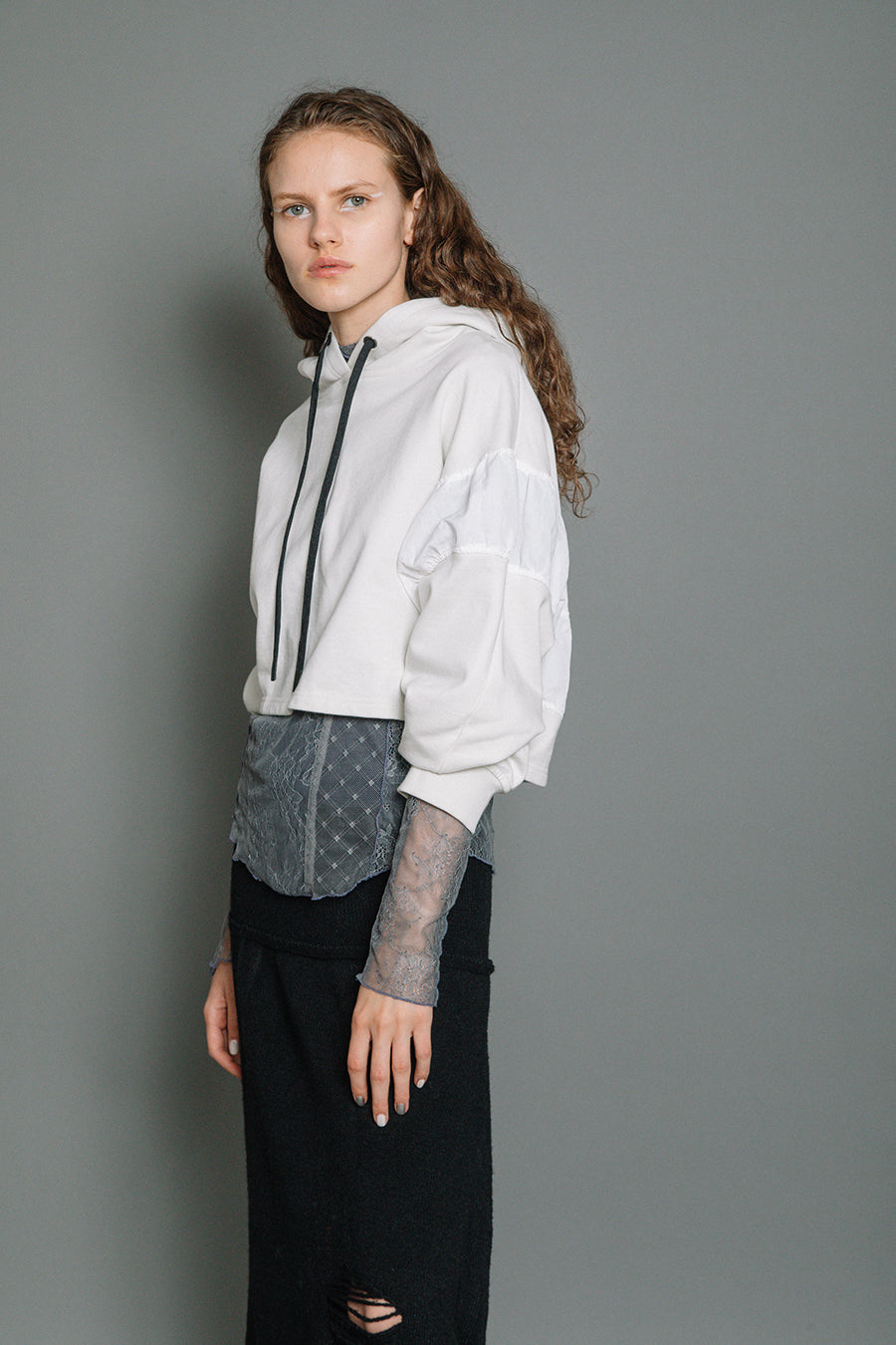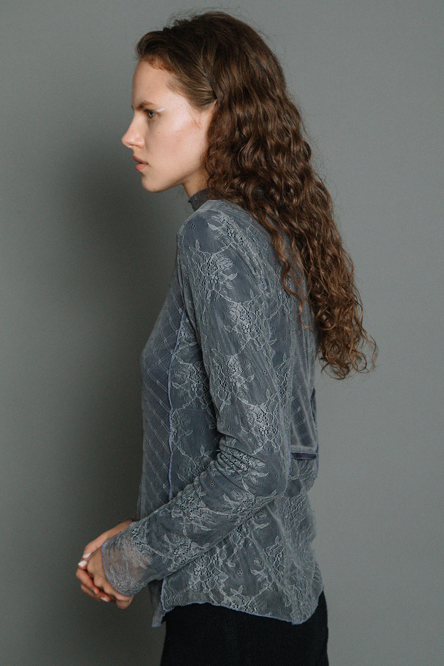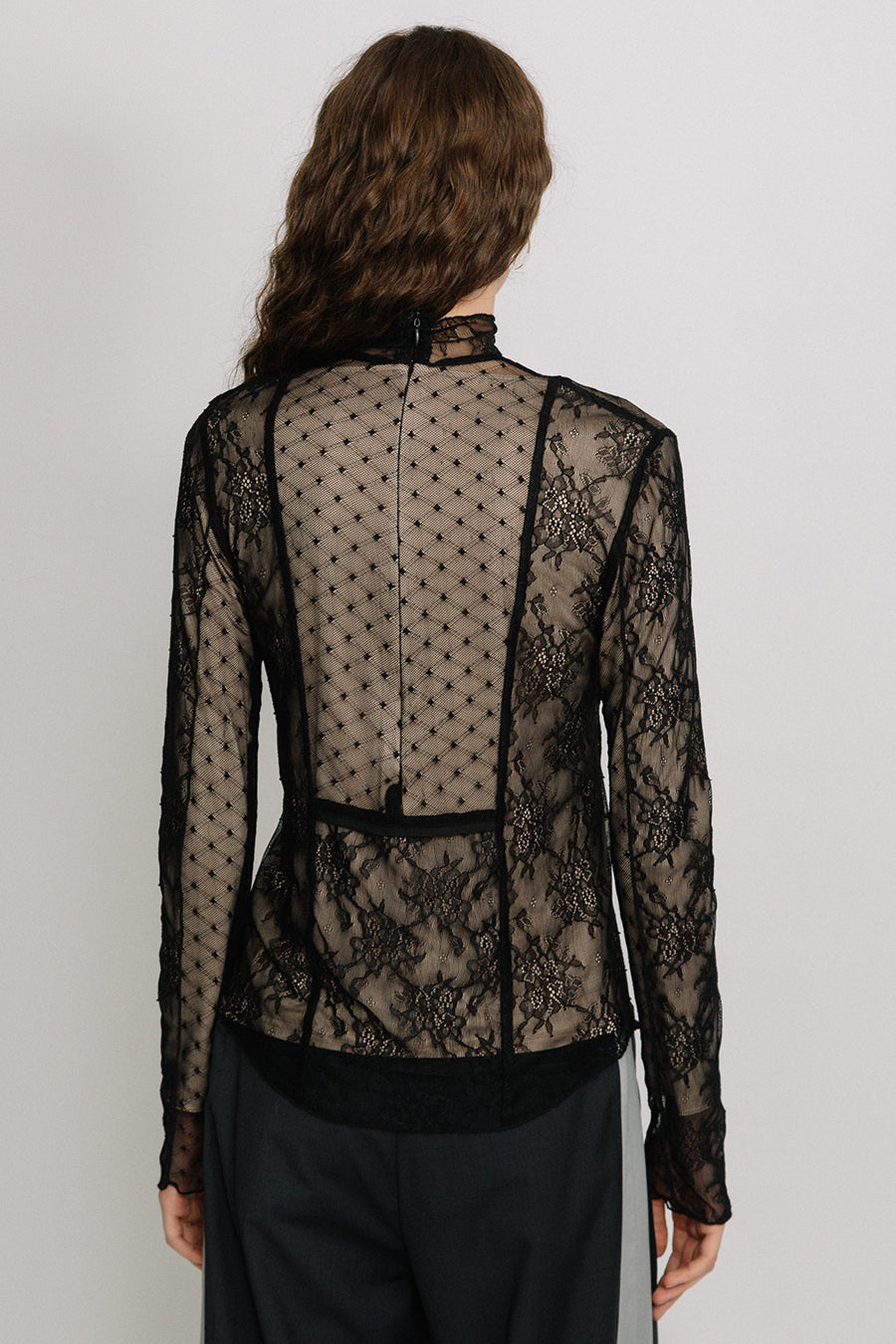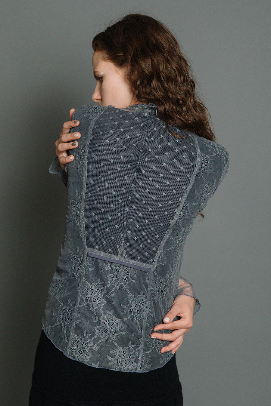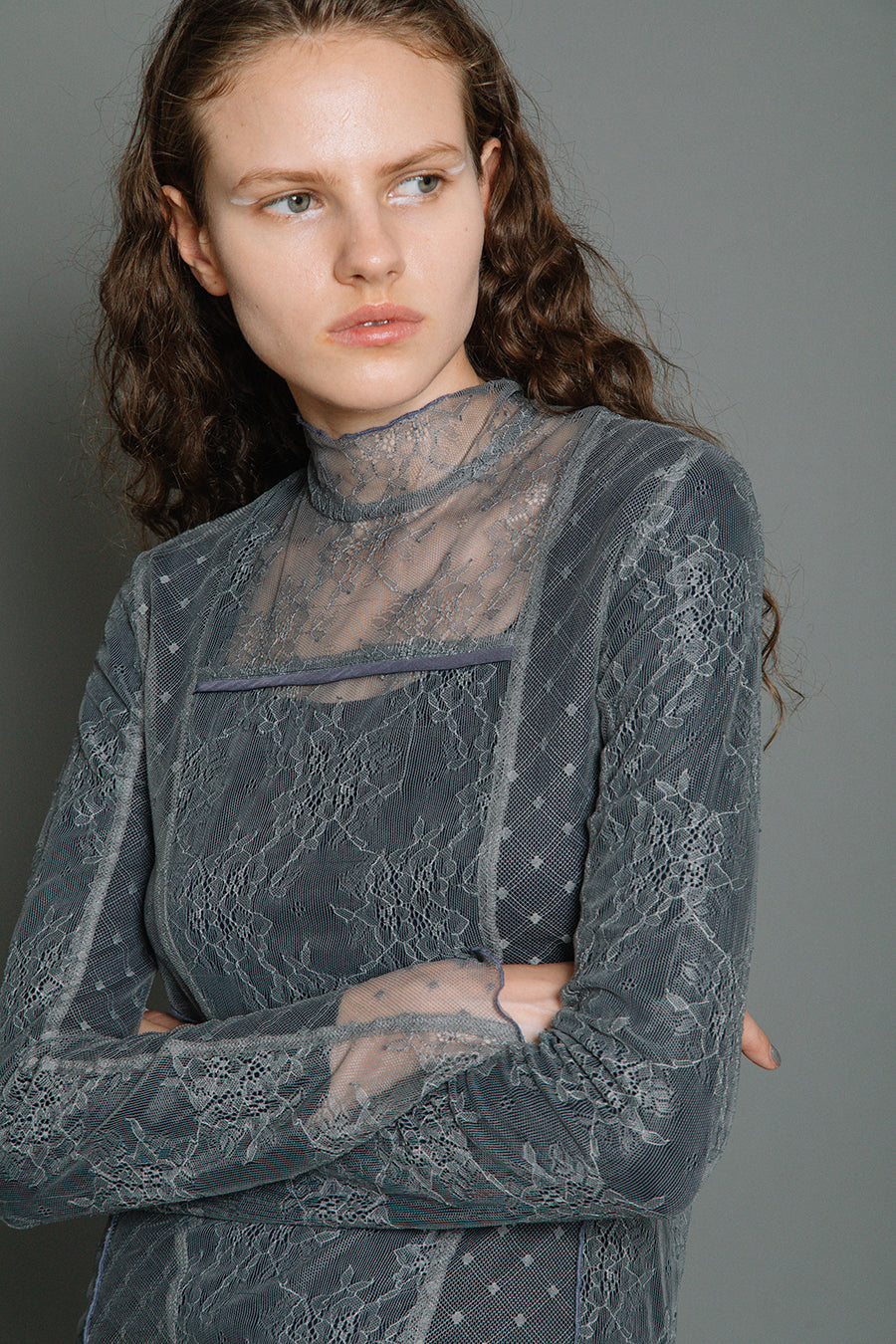 デコルテ部分のみ透け感があり女性らしさを演出しつつも、ストレッチカットソーのインナー付きなので、透け感を気にせず着られるのも嬉しいポイント。