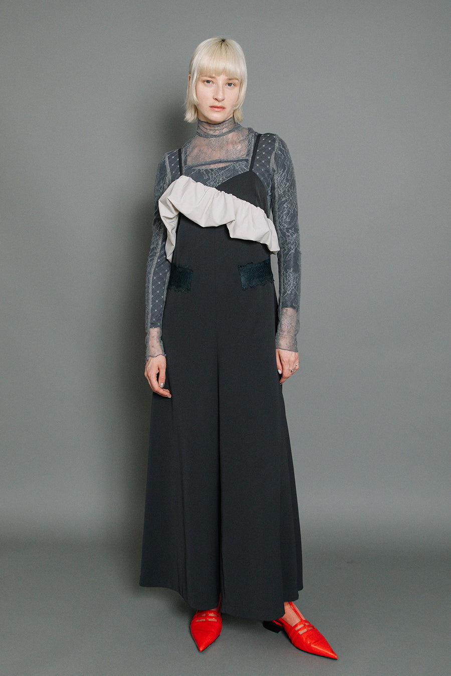 ASYMMETRY TAFFETA FRILL ALL IN ONE