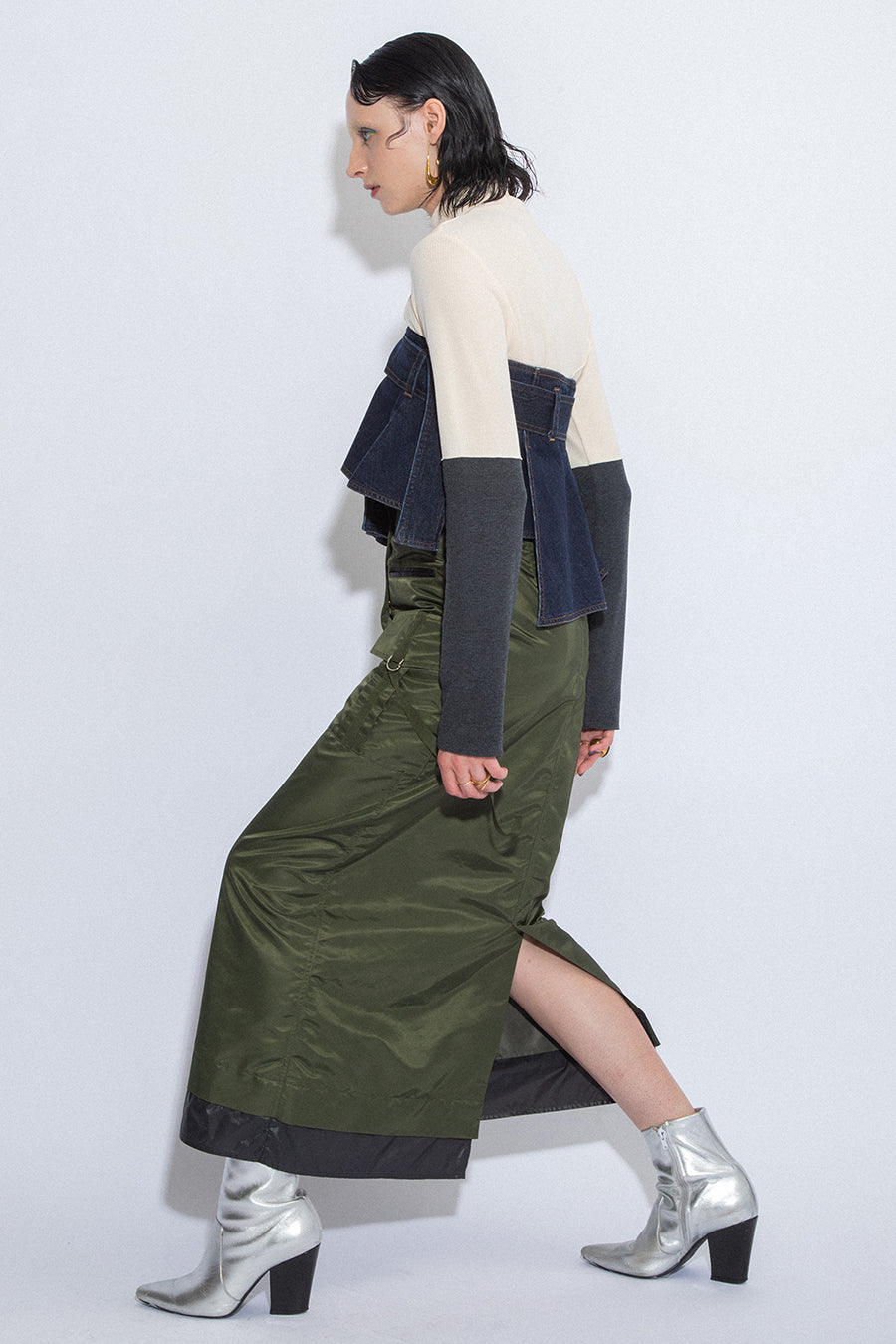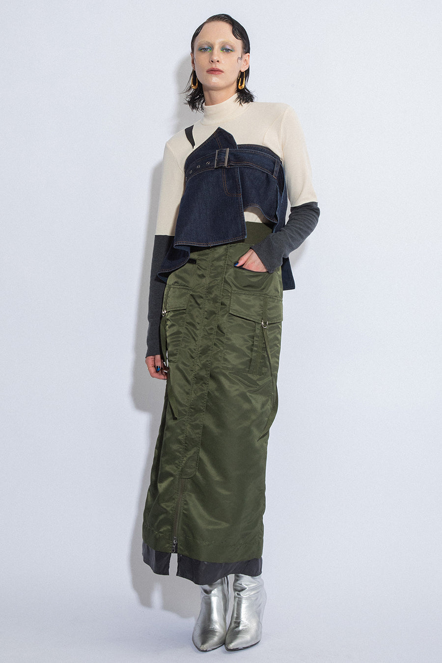 MA-1のデザインを落とし込み、カジュアルさと女性らしさを合わせもったIラインスカート。