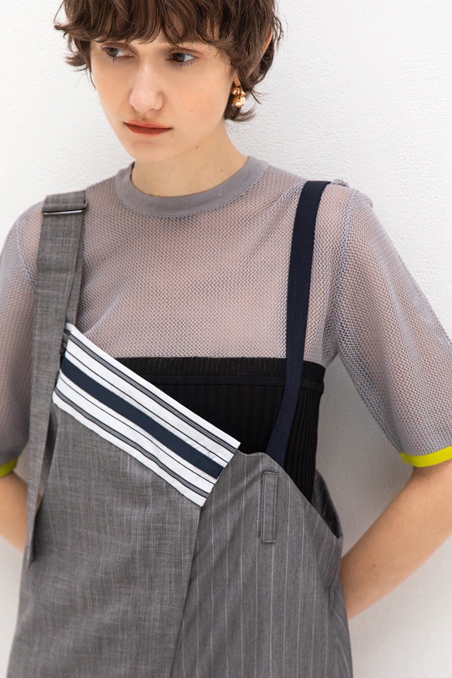 アー感のある軽見えする仕上がりに。糸はレーヨン、ナイロンのドライタッチで肌に張り付かない春夏の糸を使用。