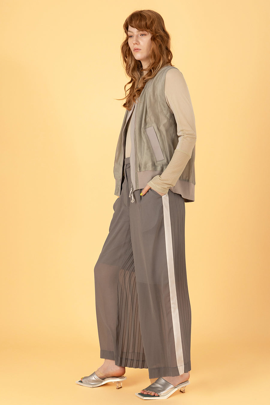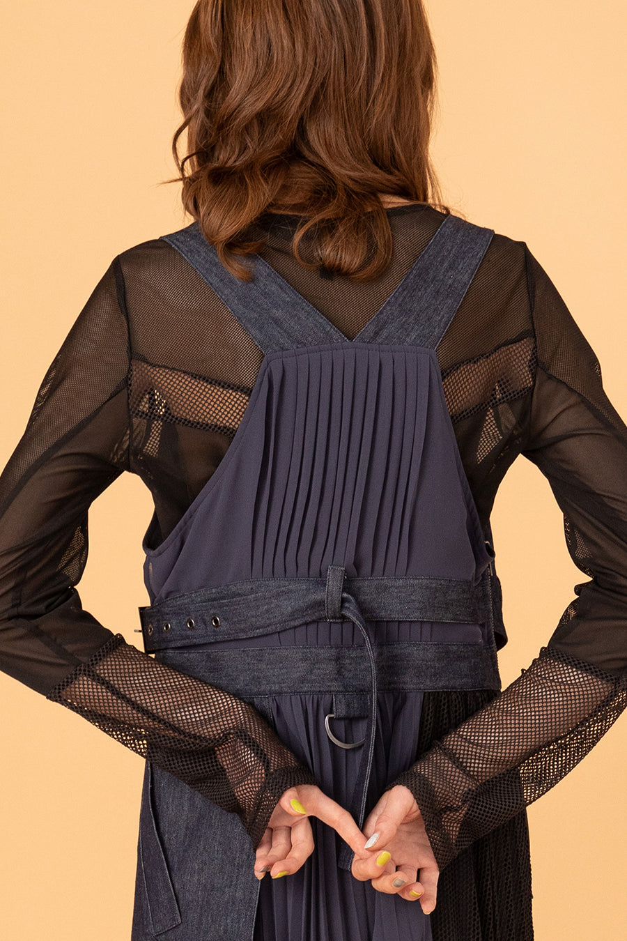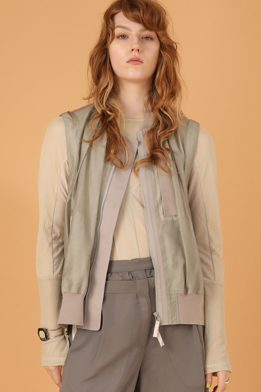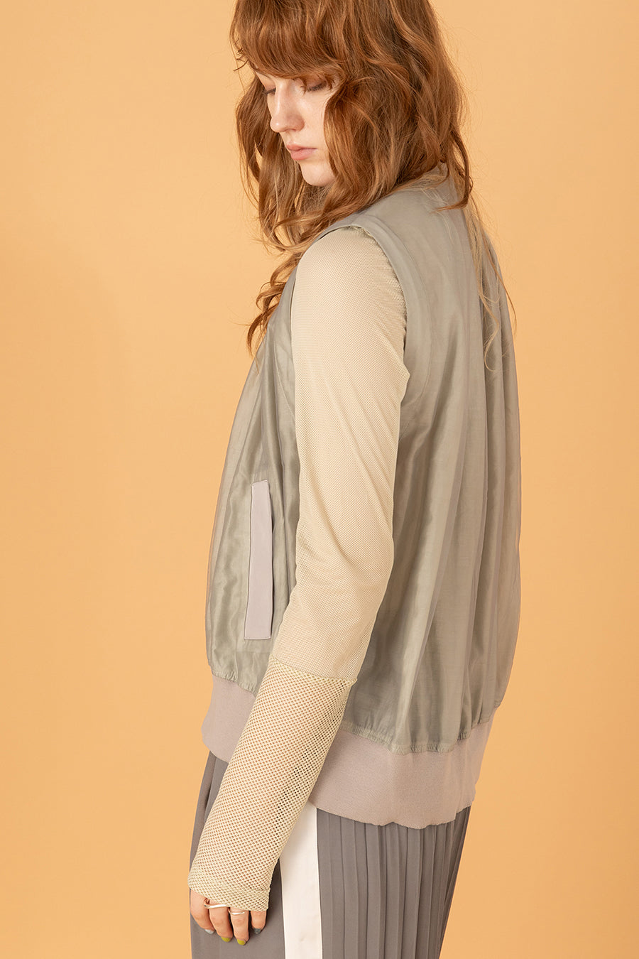 3種類のメッシュをコンビネーションしたアウラアイラらしいシアートップス。縦に切り替えを入れているので、体のラインを美しく魅せてくれる。ストレッチ性のある柔らかいメッシュは着心地が良く、バストや袖巾はゆとりのある寸法設定でストレスフリーに着用可能。細かいメッシュなのでスタイリングに合わせやすく、1枚ではもちろん、スウェットなどのインナーにして袖口からメッシュを覗かせるのもおすすめ◎。いつものスタイリングを格上げしてくれる着回し力抜群のトップス。