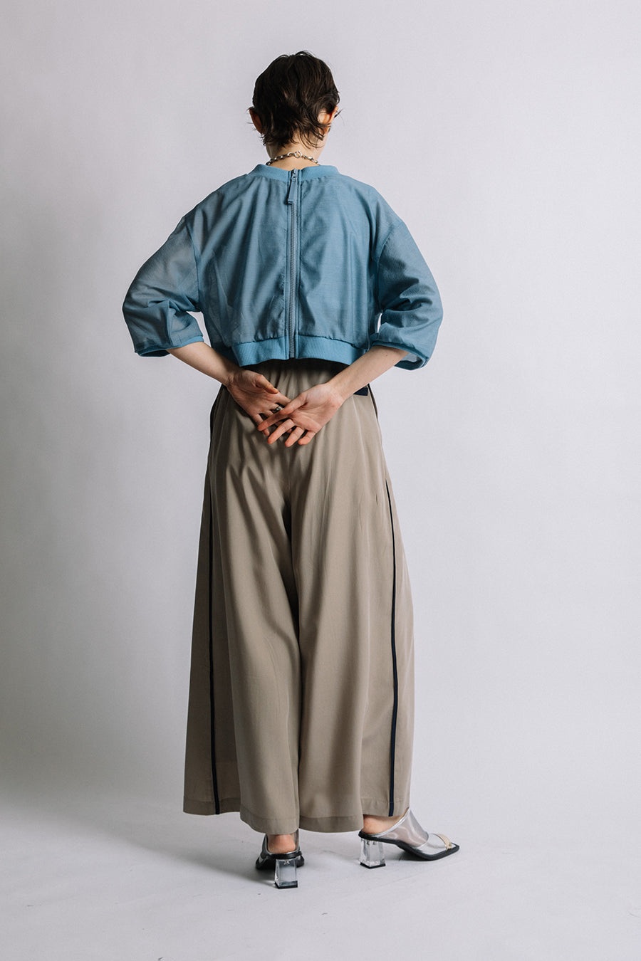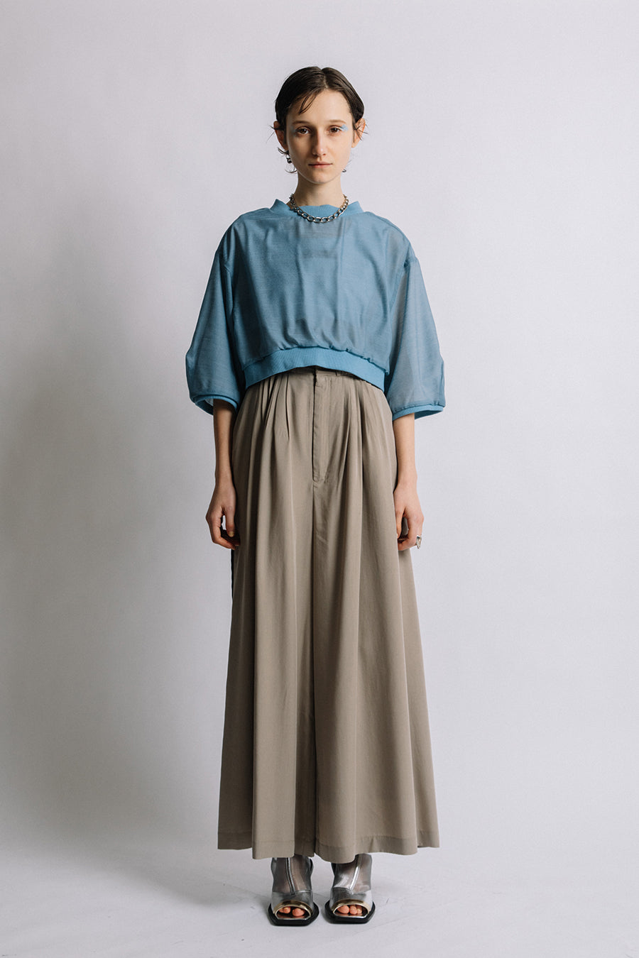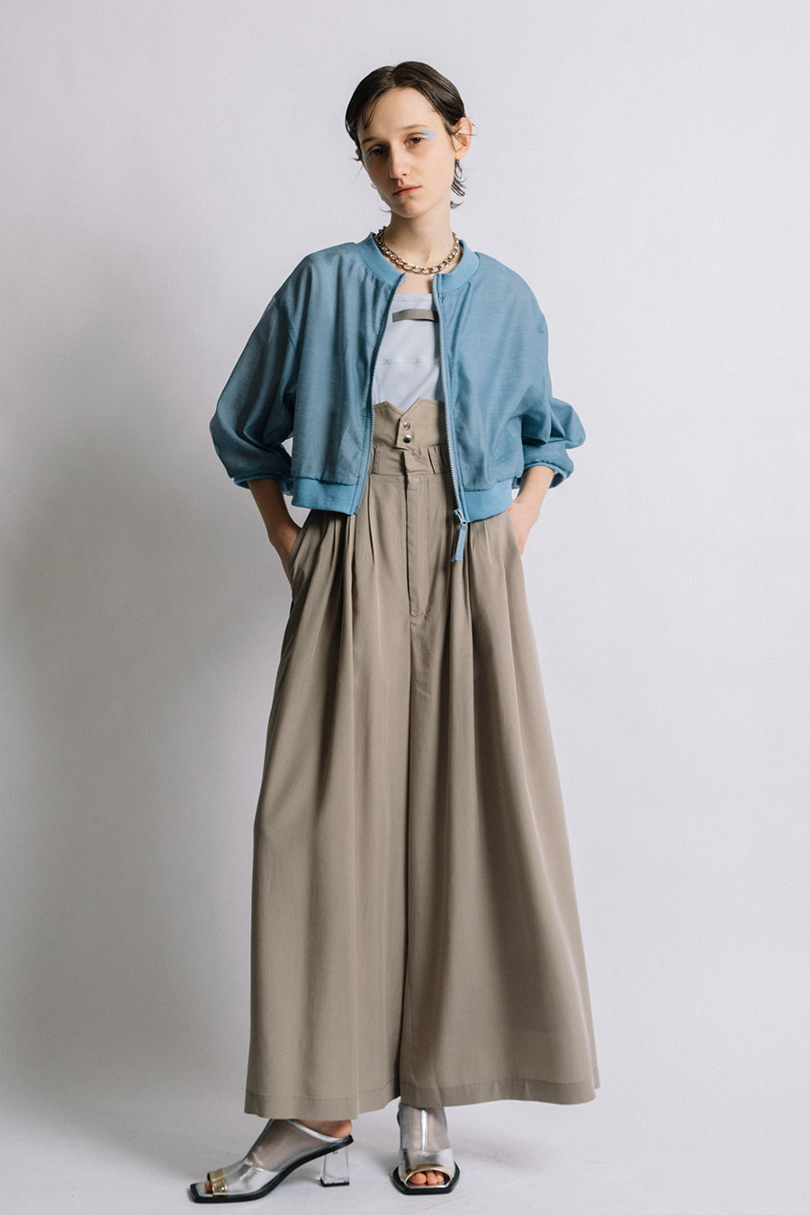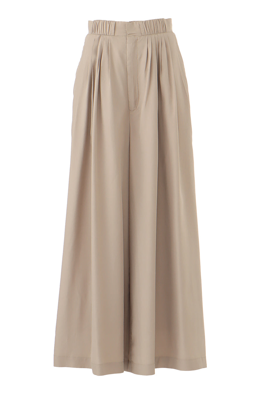 フロントのピンタックから織りなす立体的なドレープが華やかなワイドシルエットパンツ。さらっとしたシルキータッチな肌触りで、落ち感のある着心地の良い素材を採用。分量をたっぷりと取りながらも生地の落ち感と相まってすっきりとした軽やかな印象に。