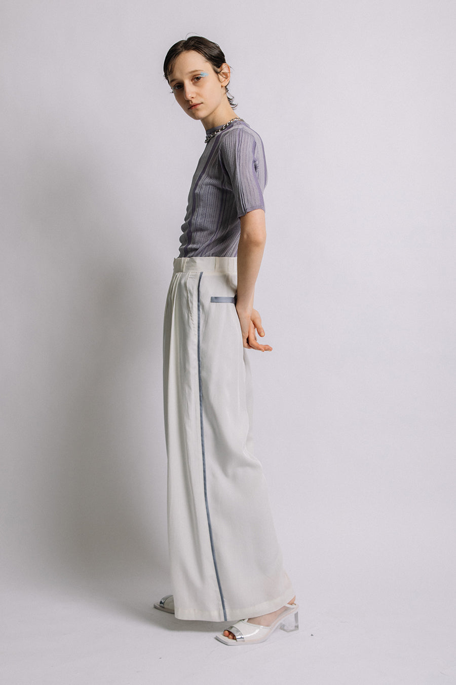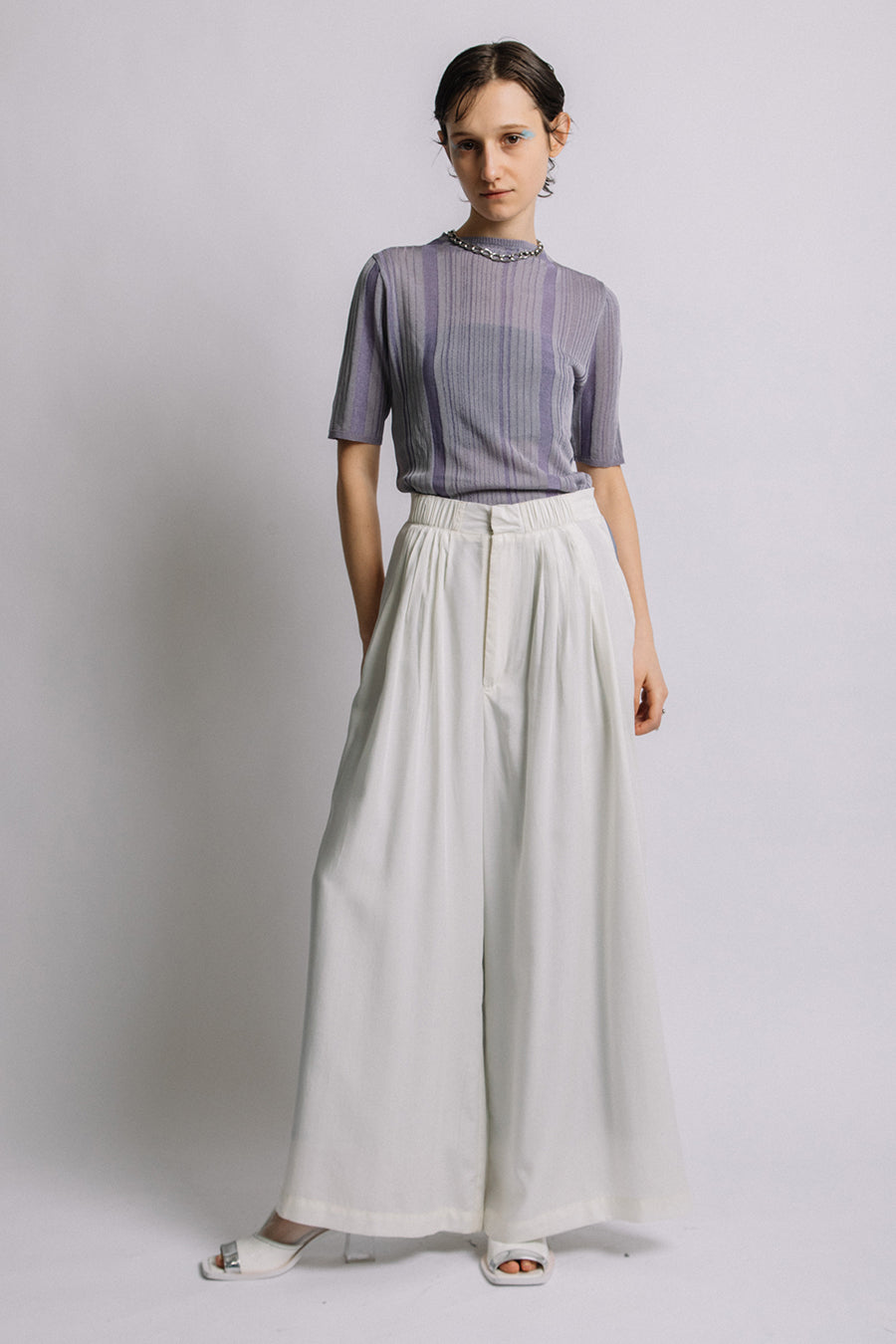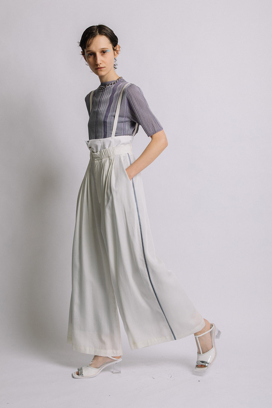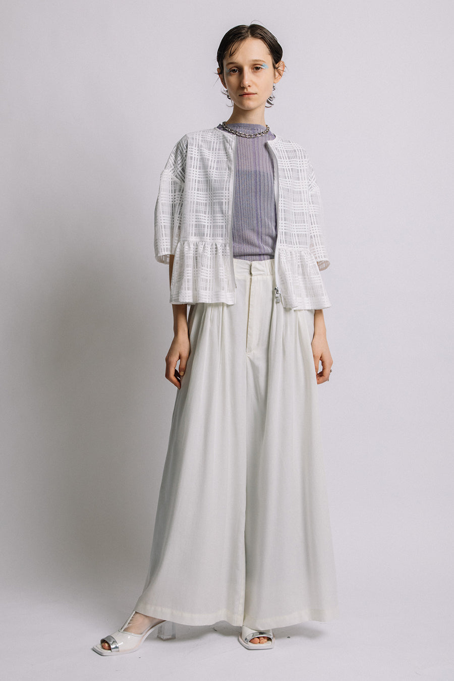 フロントのピンタックから織りなす立体的なドレープが華やかなワイドシルエットパンツ。さらっとしたシルキータッチな肌触りで、落ち感のある着心地の良い素材を採用。分量をたっぷりと取りながらも生地の落ち感と相まってすっきりとした軽やかな印象に。