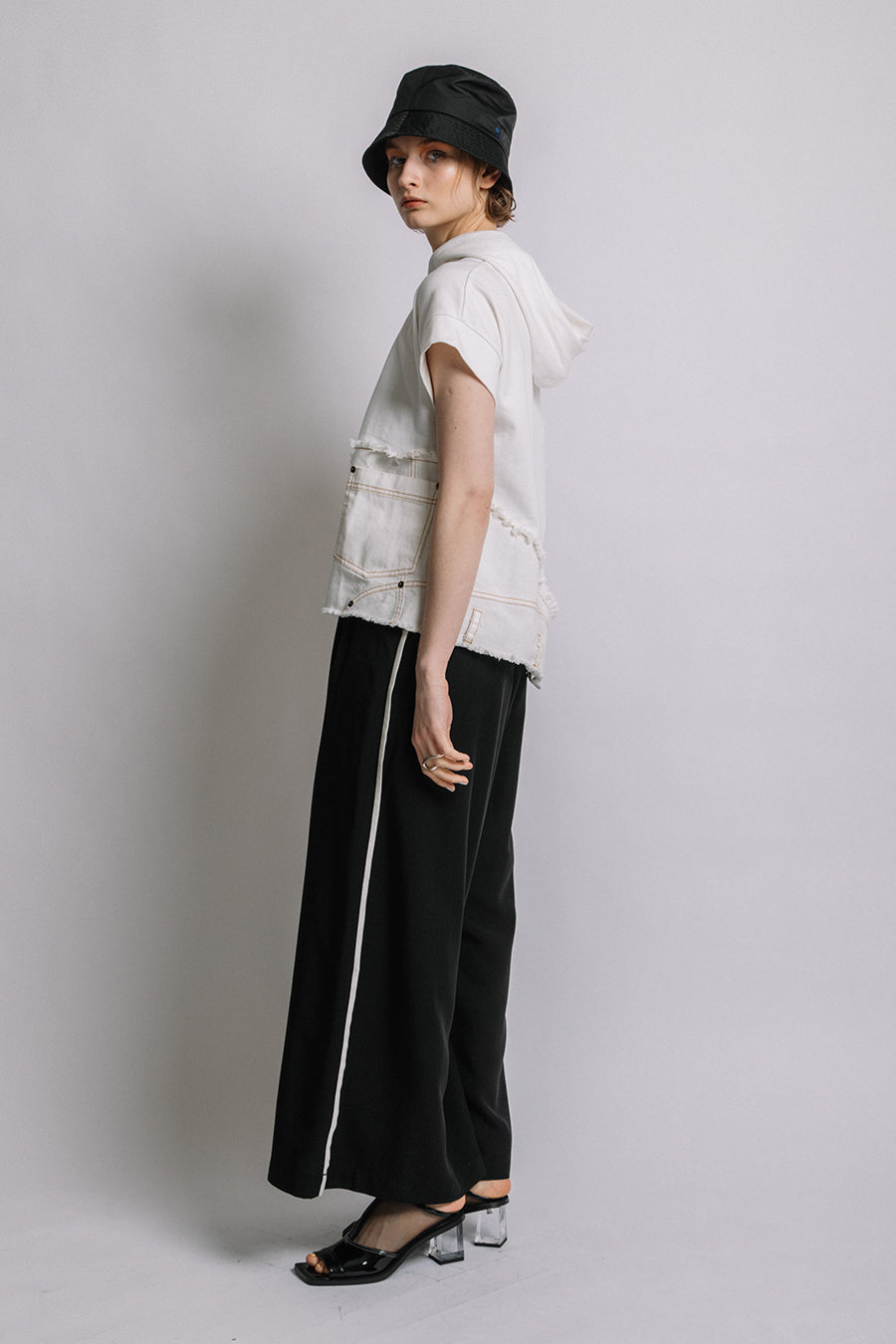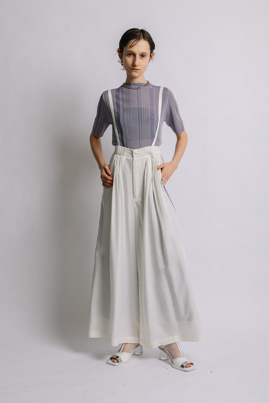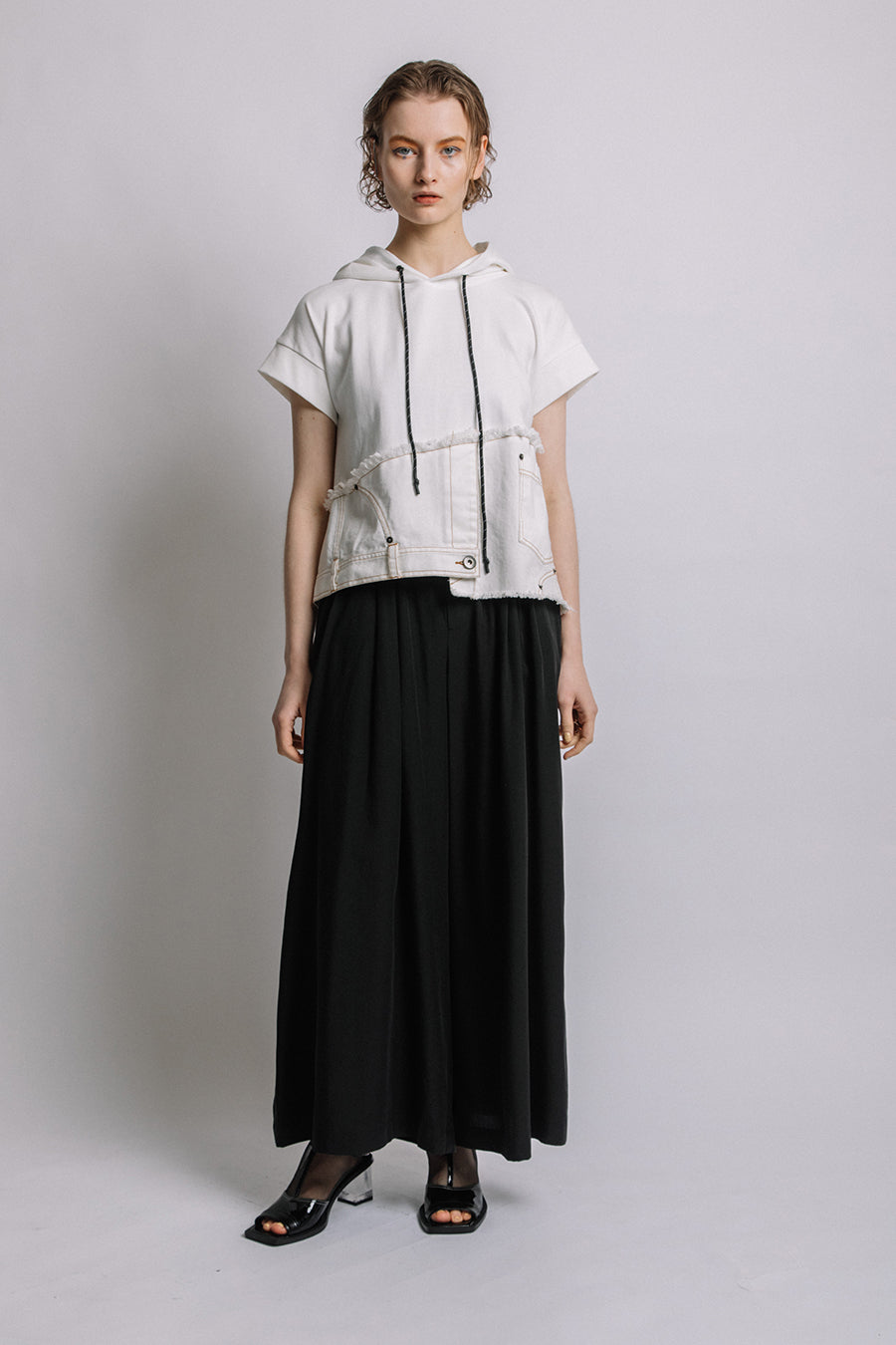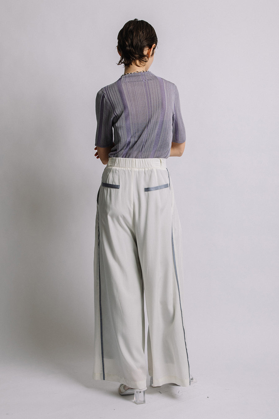 フロントのピンタックから織りなす立体的なドレープが華やかなワイドシルエットパンツ。さらっとしたシルキータッチな肌触りで、落ち感のある着心地の良い素材を採用。分量をたっぷりと取りながらも生地の落ち感と相まってすっきりとした軽やかな印象に。