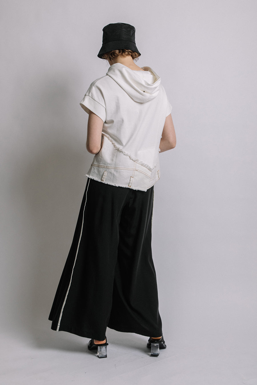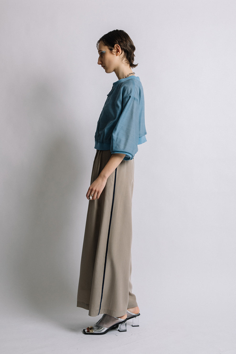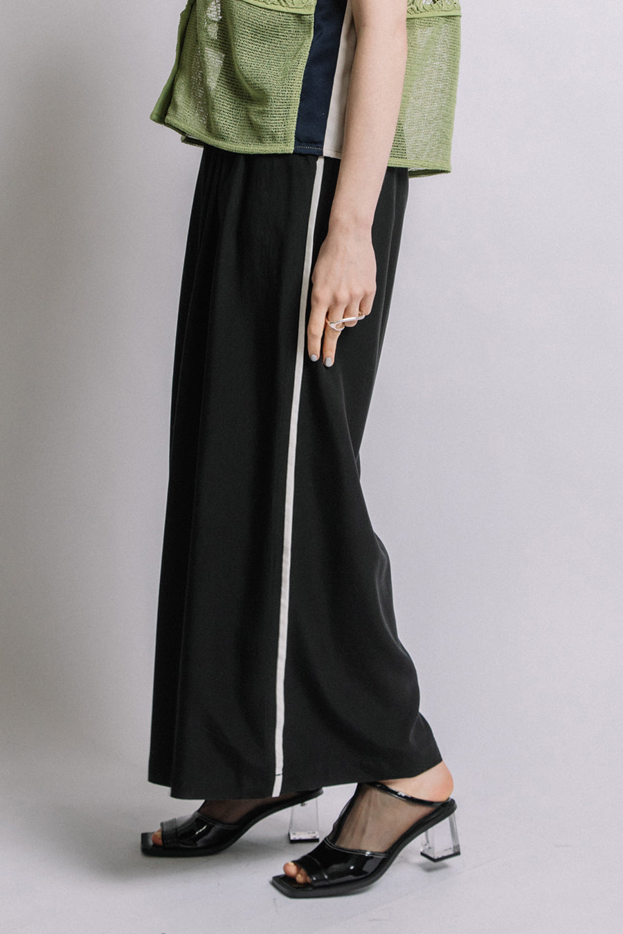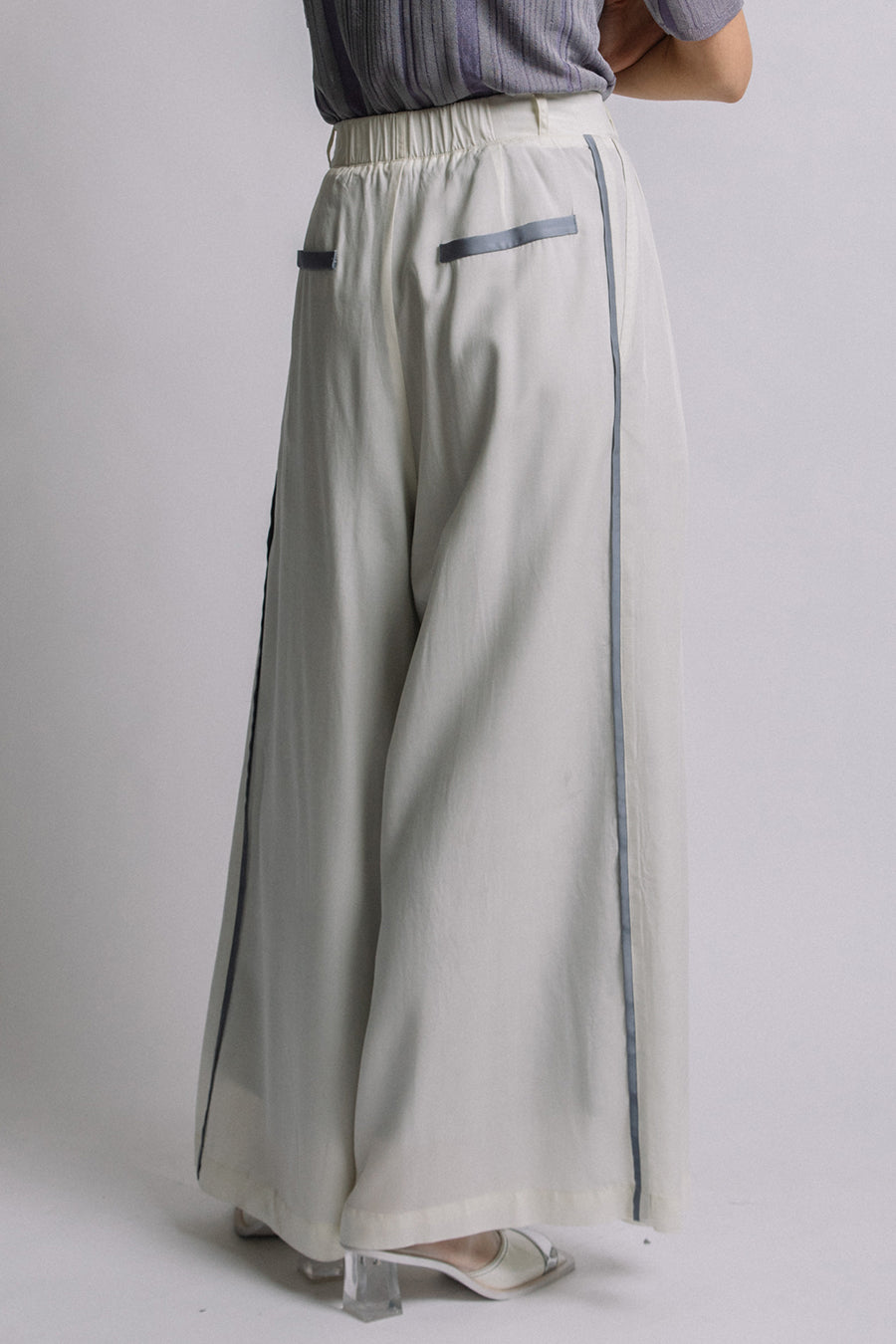 フロントのピンタックから織りなす立体的なドレープが華やかなワイドシルエットパンツ。さらっとしたシルキータッチな肌触りで、落ち感のある着心地の良い素材を採用。分量をたっぷりと取りながらも生地の落ち感と相まってすっきりとした軽やかな印象に。