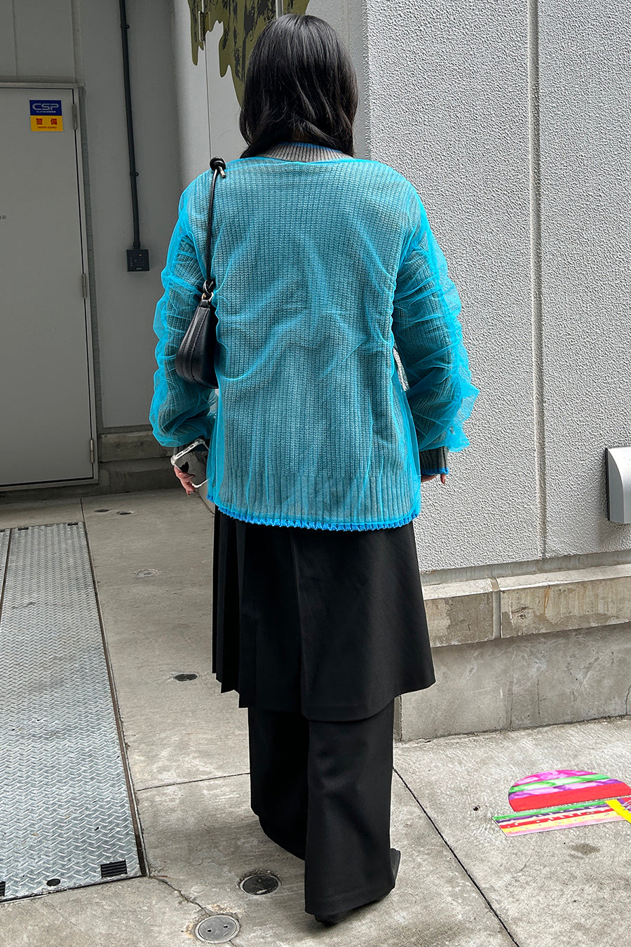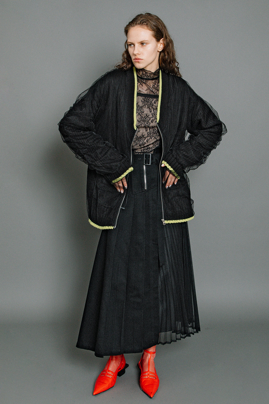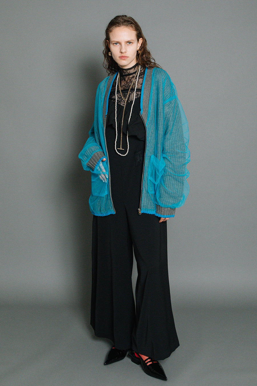 タックの入ったチュールポケットや、衿・袖口リブ端の配色もAULA AILAらしい遊び心のあるデザインポイント。