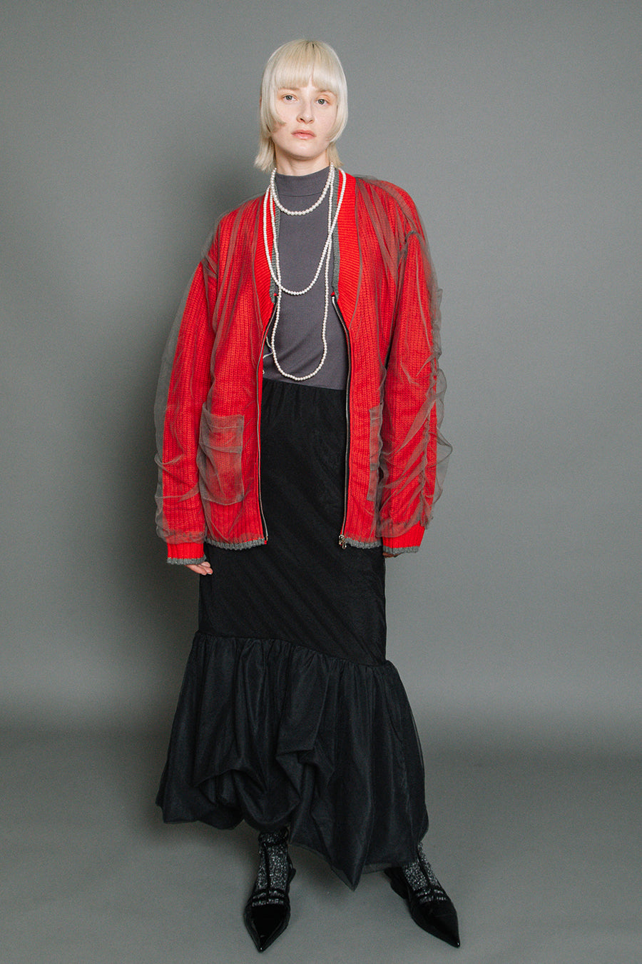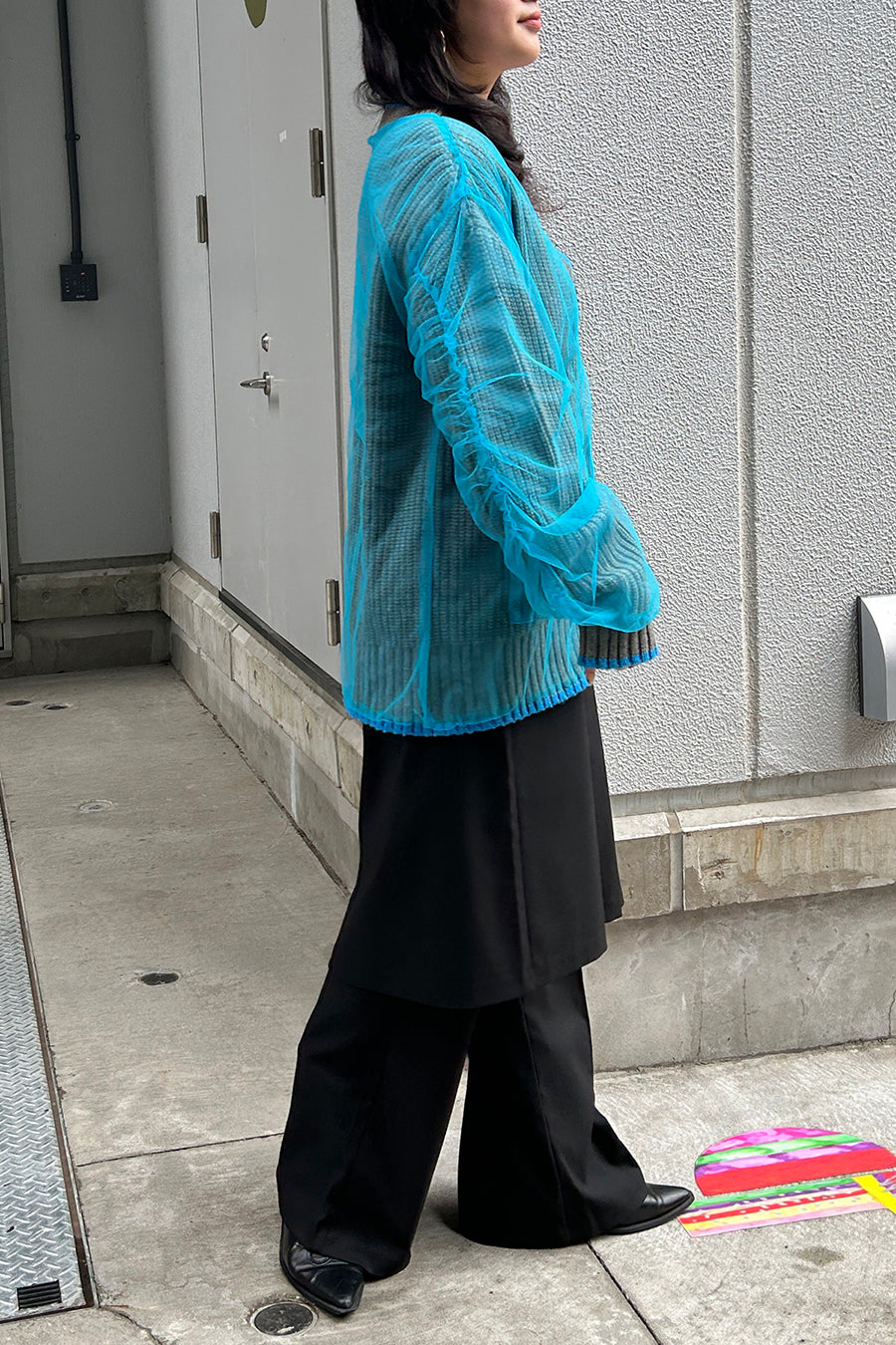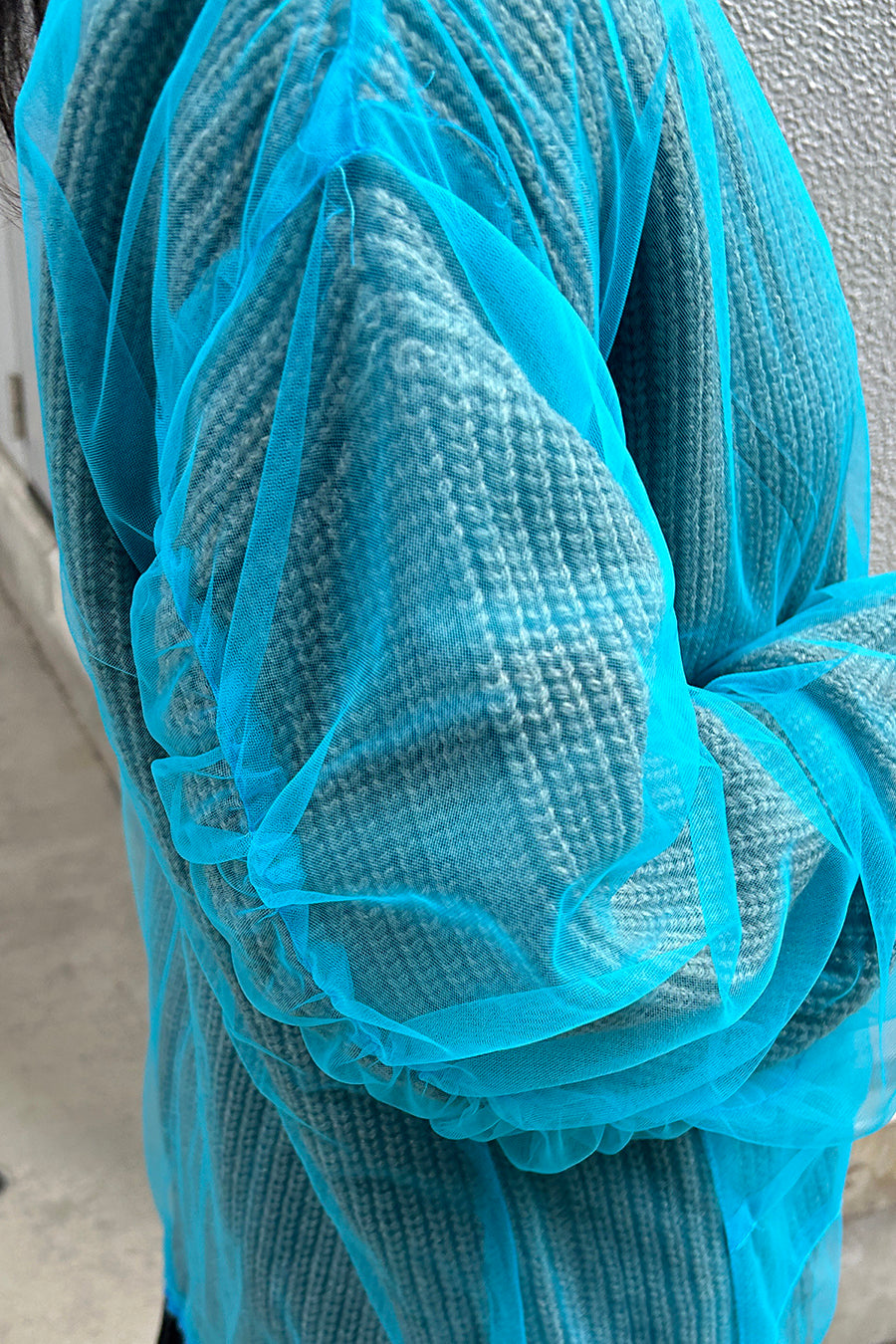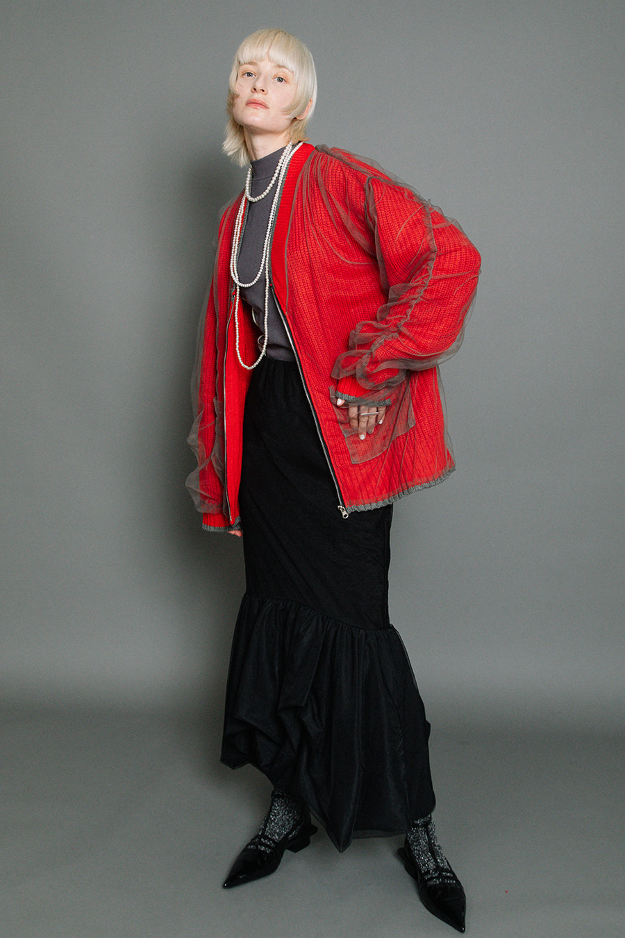 タックの入ったチュールポケットや、衿・袖口リブ端の配色もAULA AILAらしい遊び心のあるデザインポイント。