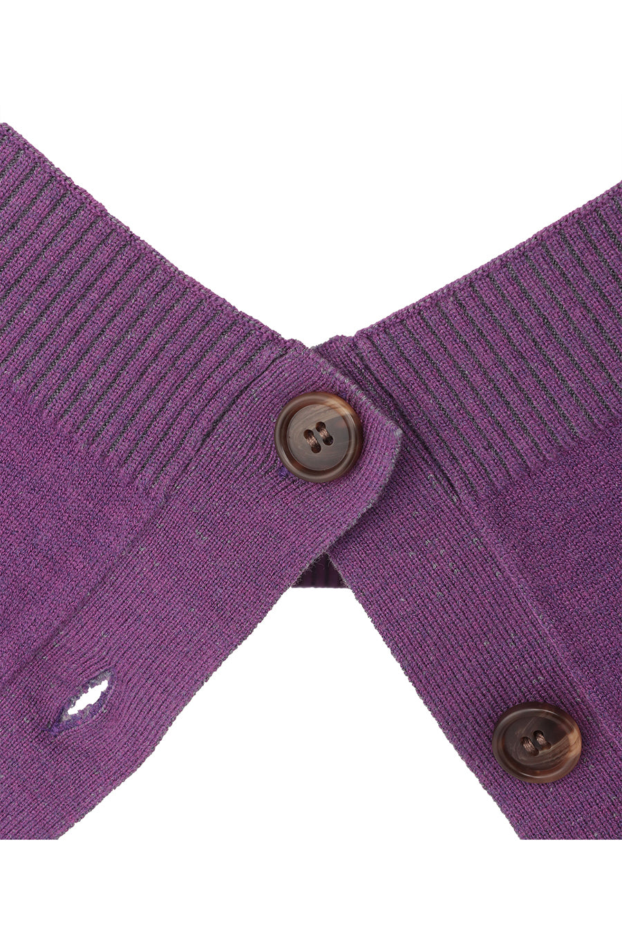 もちもちとした着心地の良い編み地で、バスト周りやアームホールは程よくゆとりがあるのでストレスフリーな着心地に。第一釦のみを留めたスタイルがこなれ感が出て◎