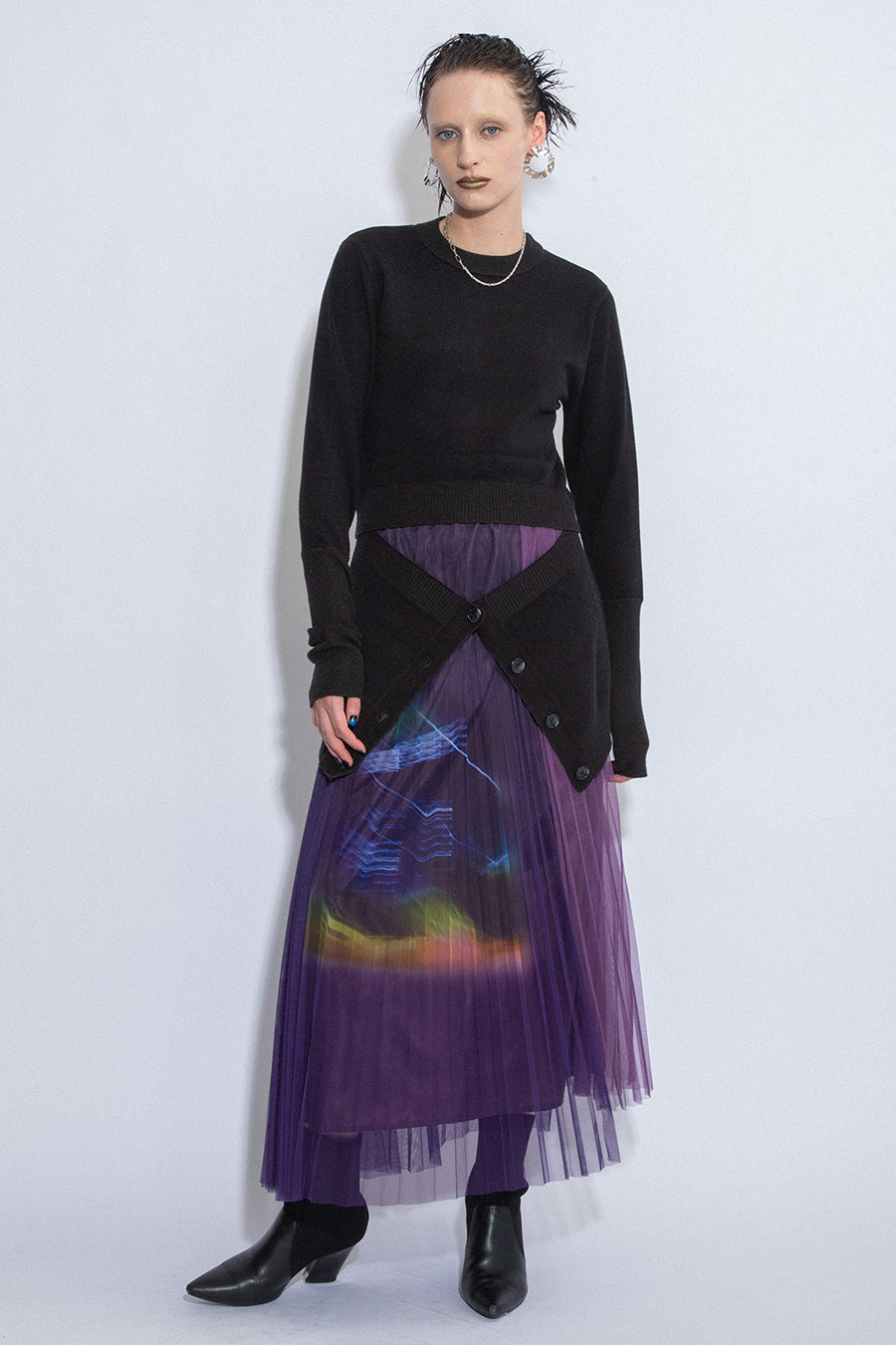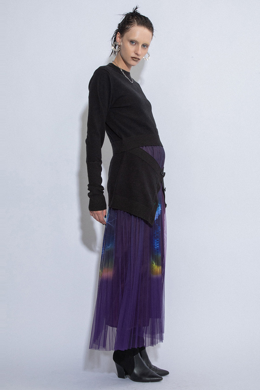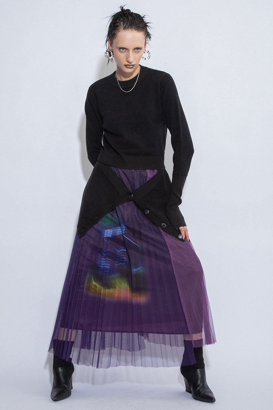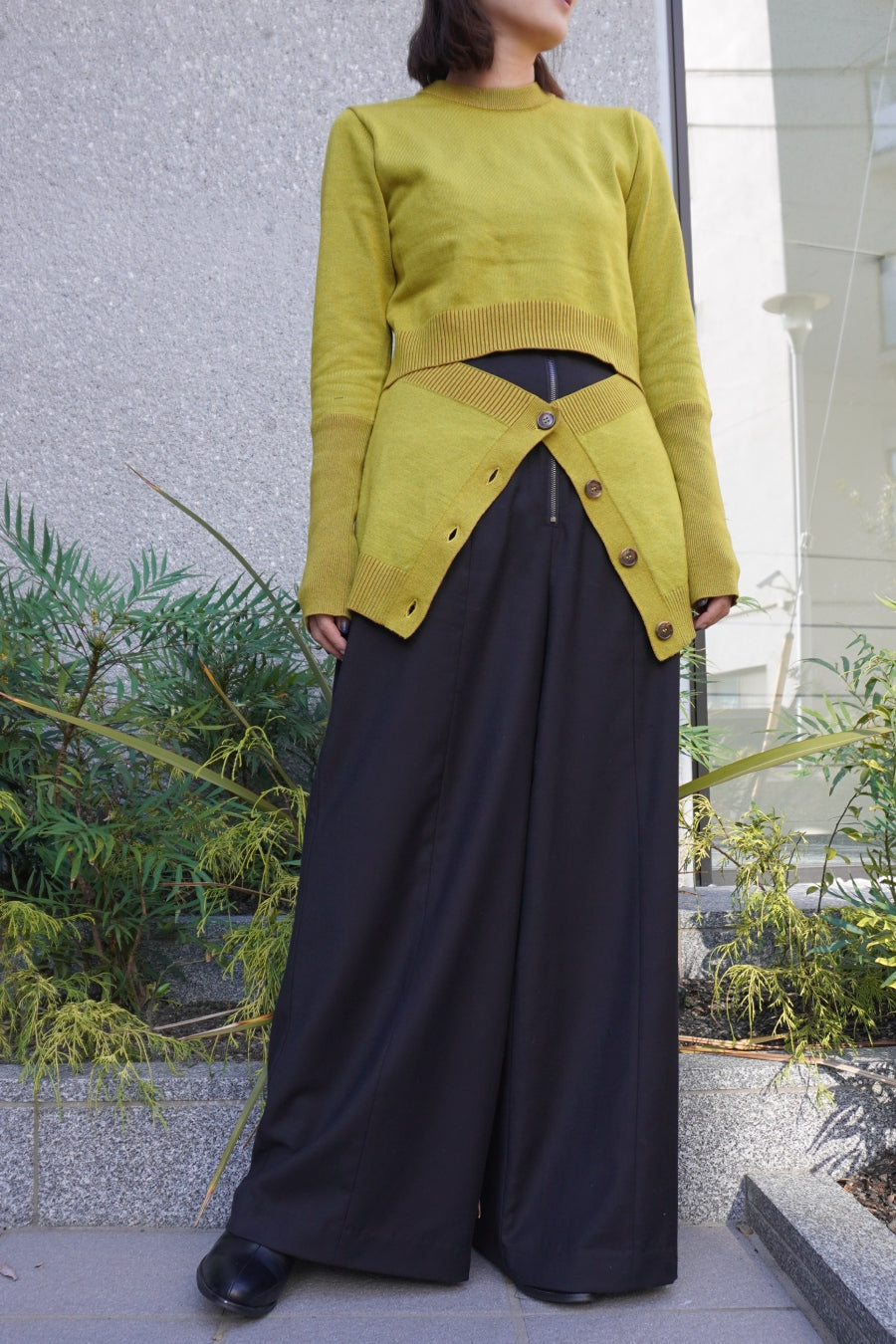 パンツとの合わせはもちろん、フレアスカートとのスタイリングもおすすめ。