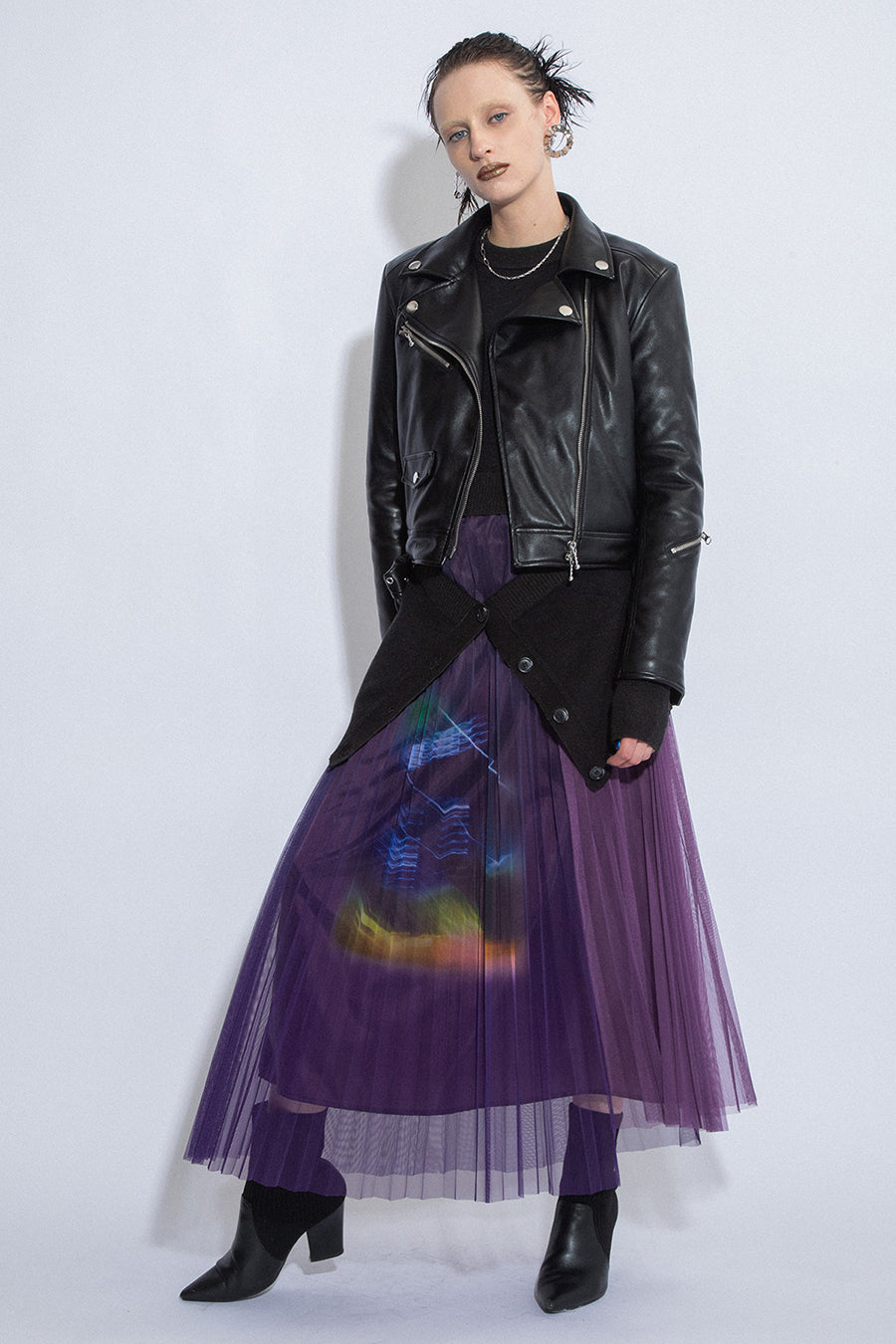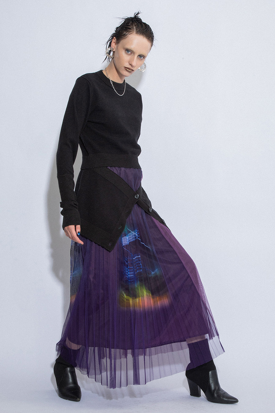 PHOTO PRINT PLEATS SKIRT