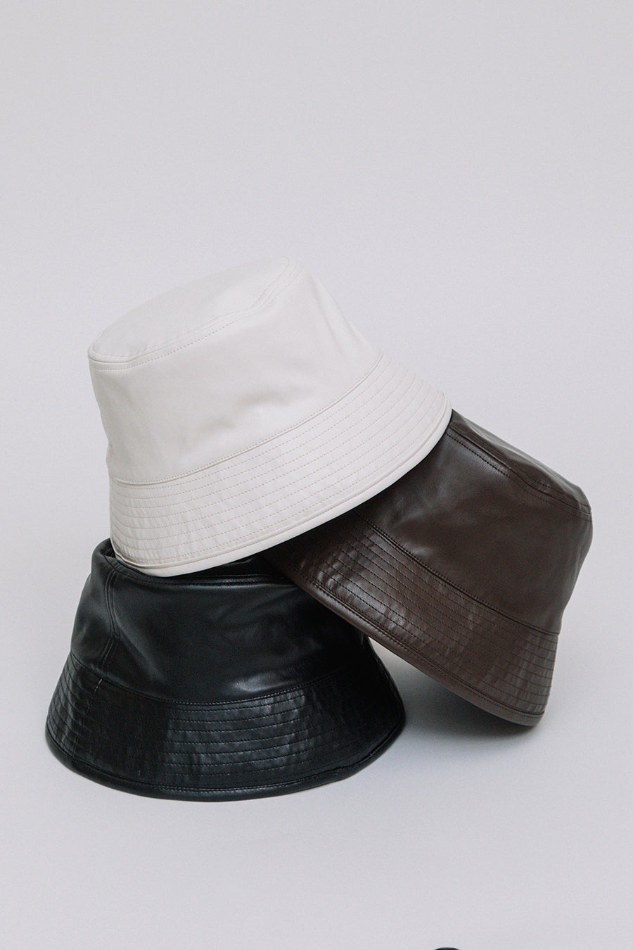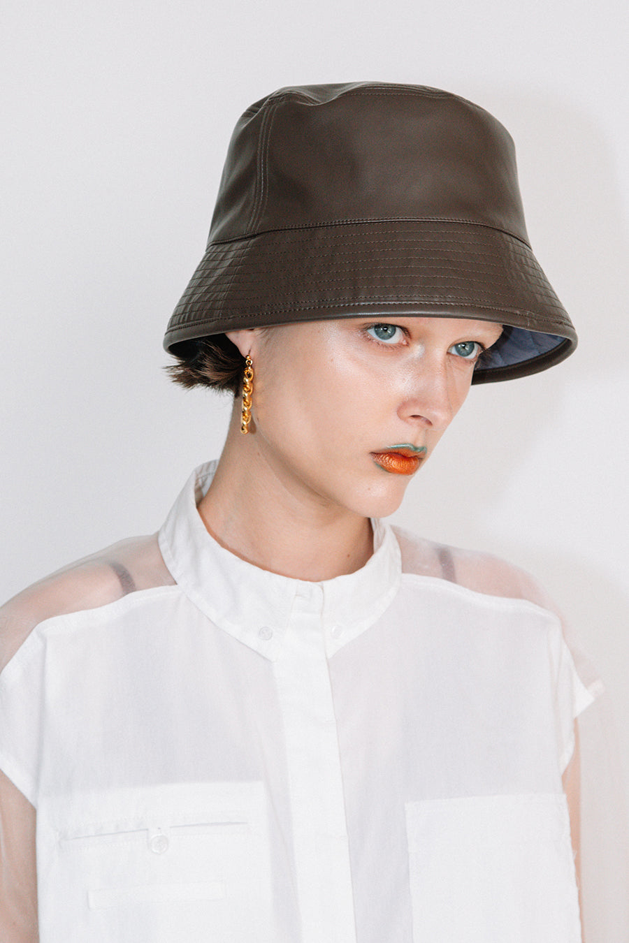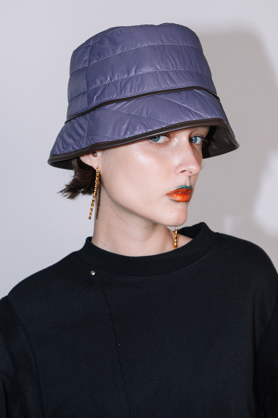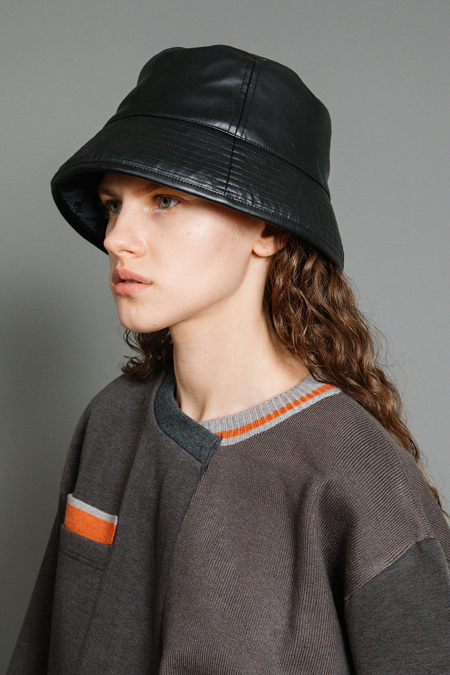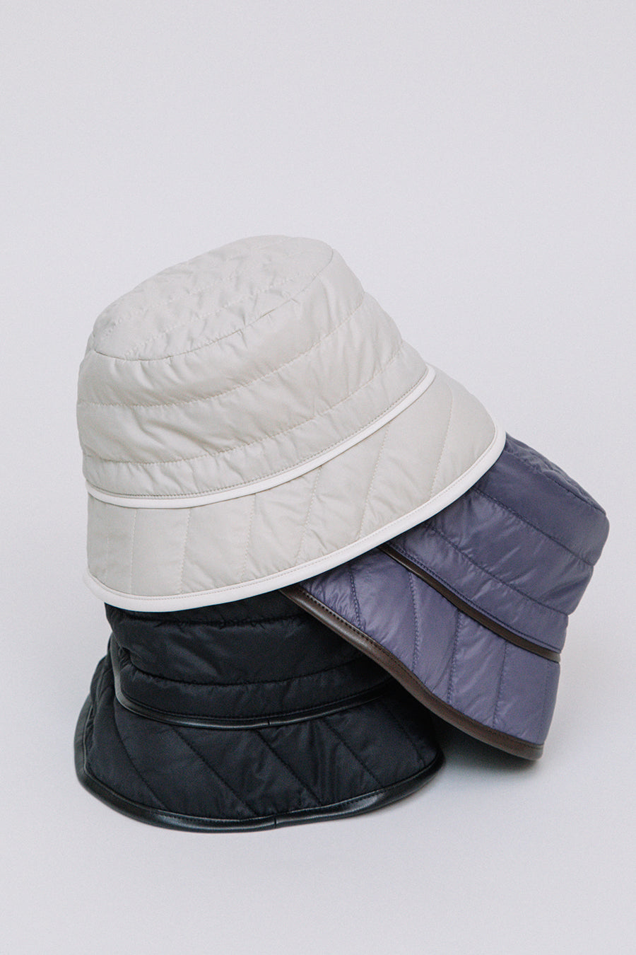 エコレザーとキルティングのリバーシブルバケットハット。