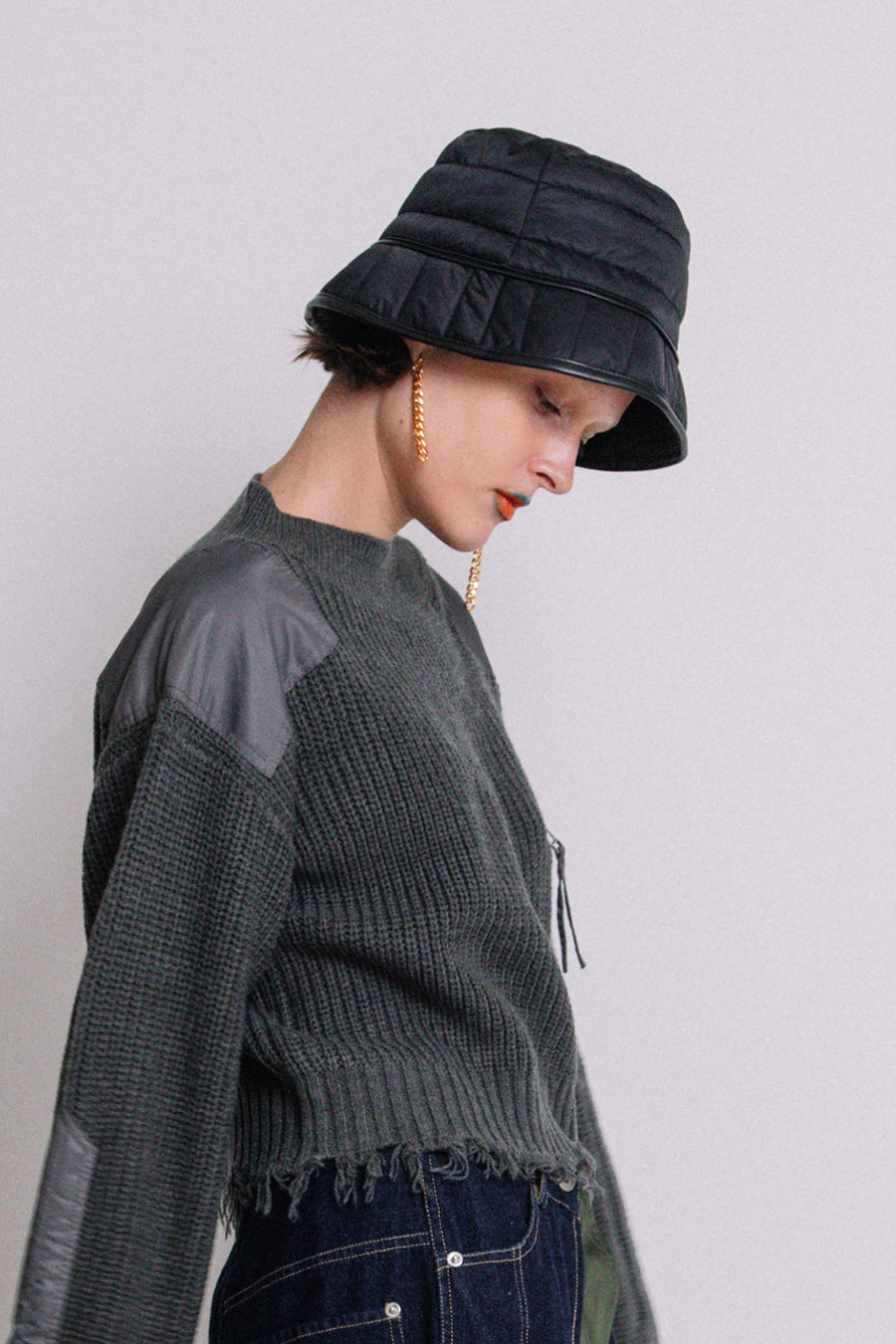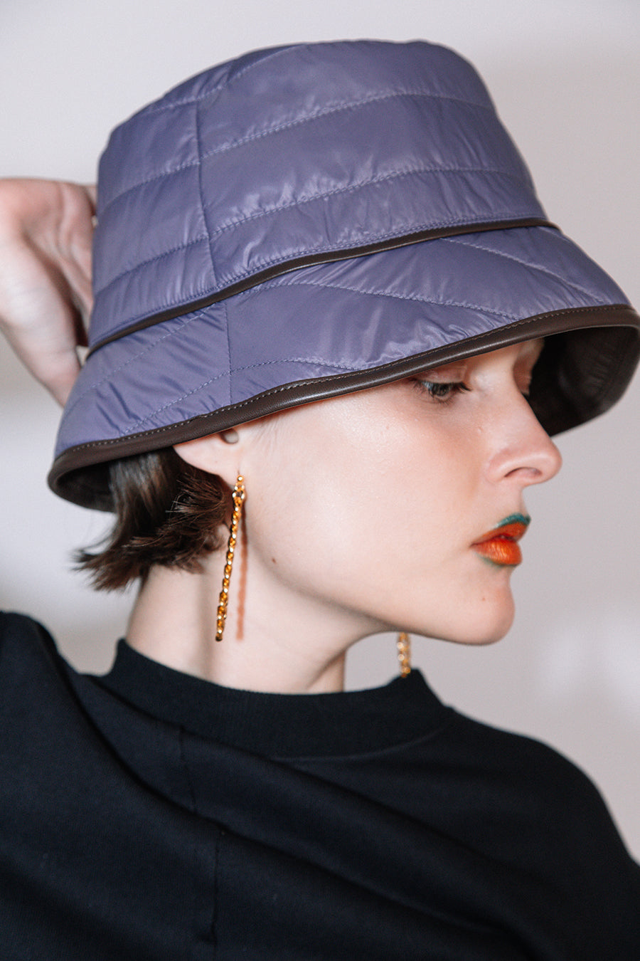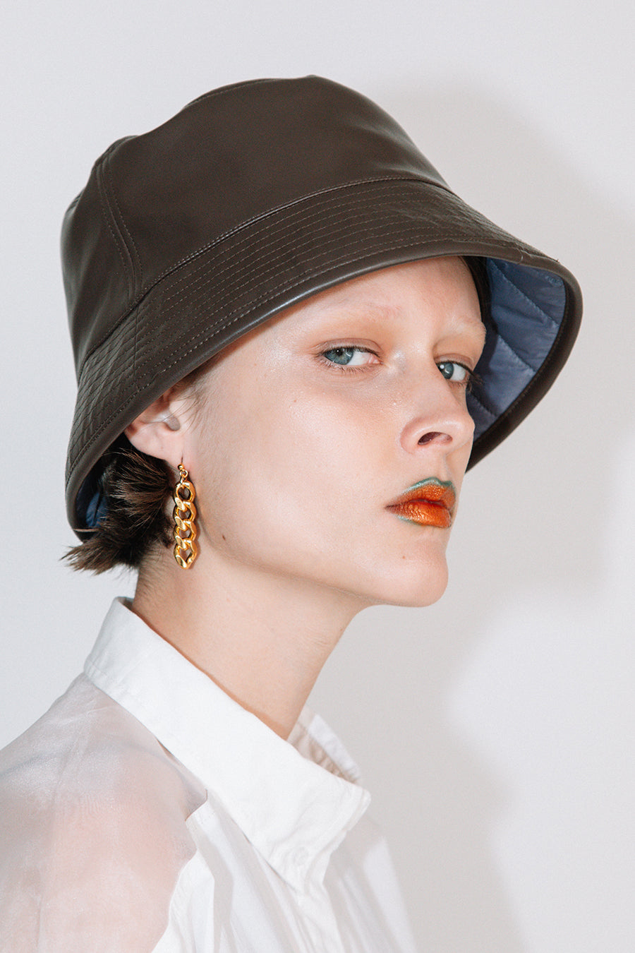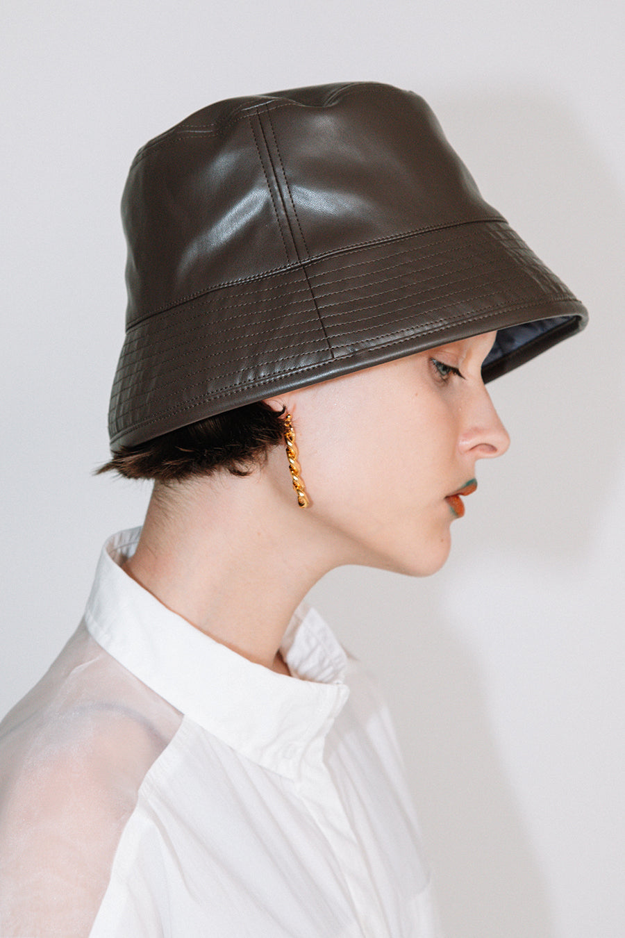 エコレザーとキルティングのリバーシブルバケットハット。
