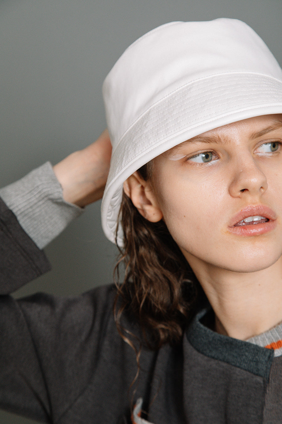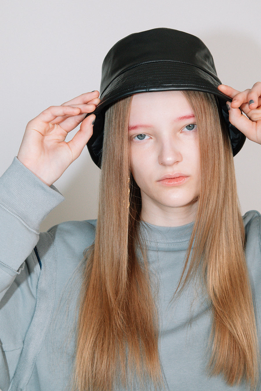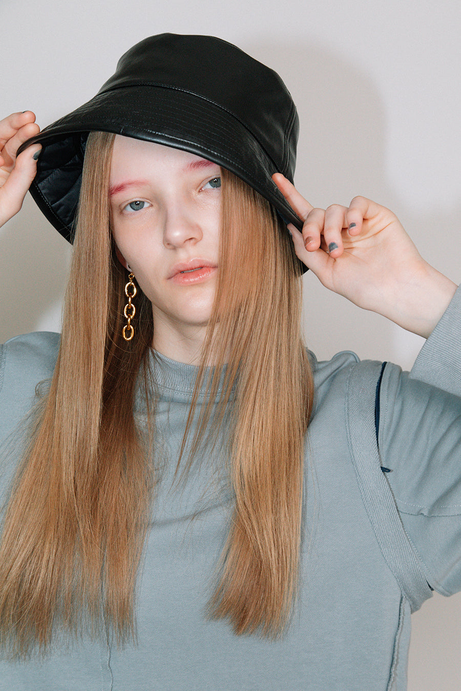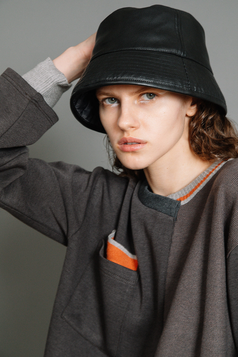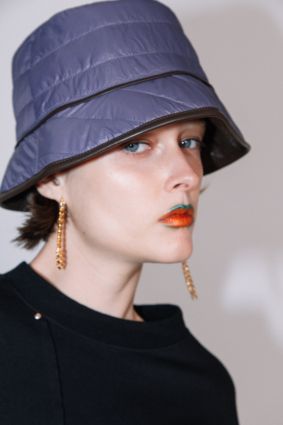 エコレザーとキルティングのリバーシブルバケットハット。