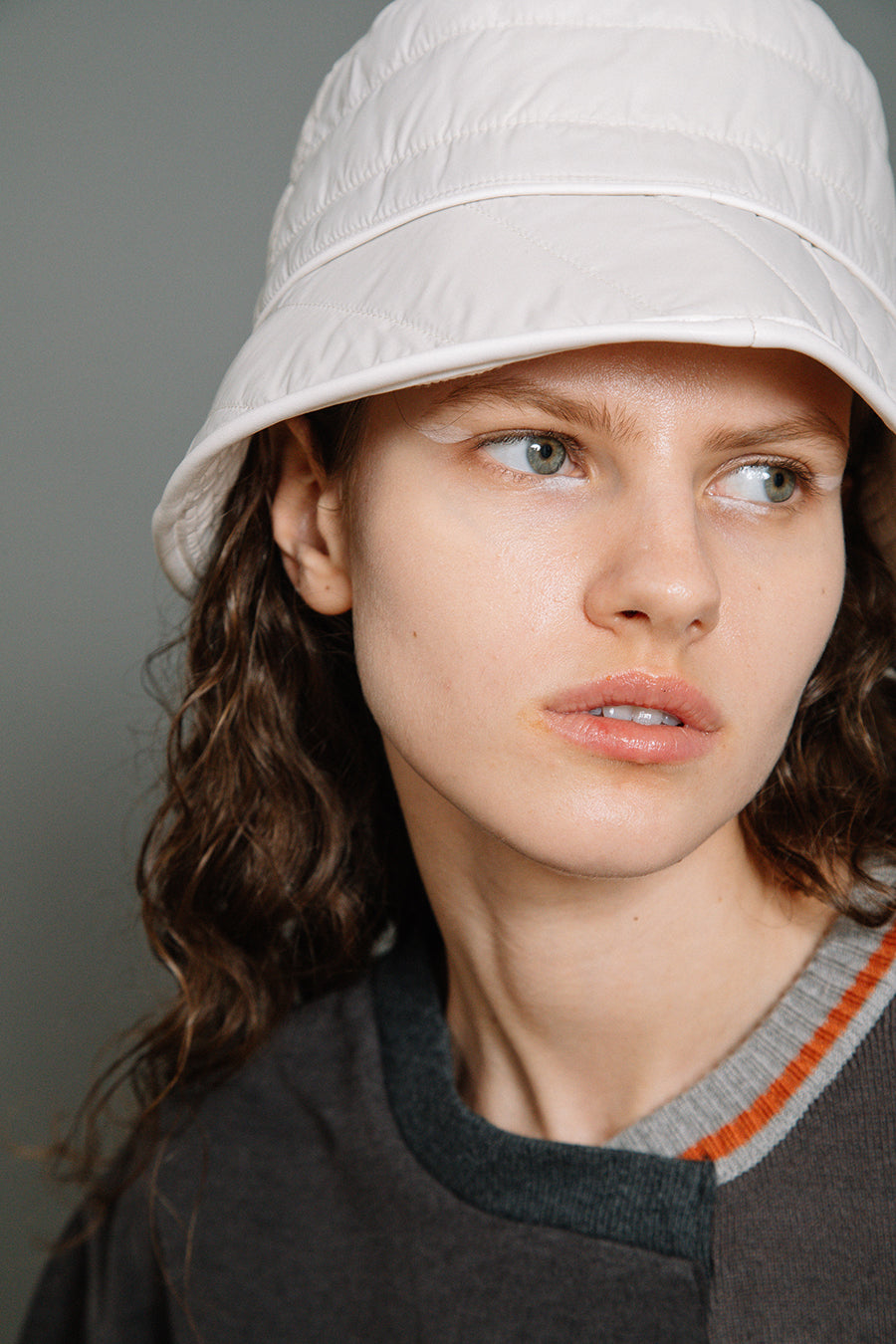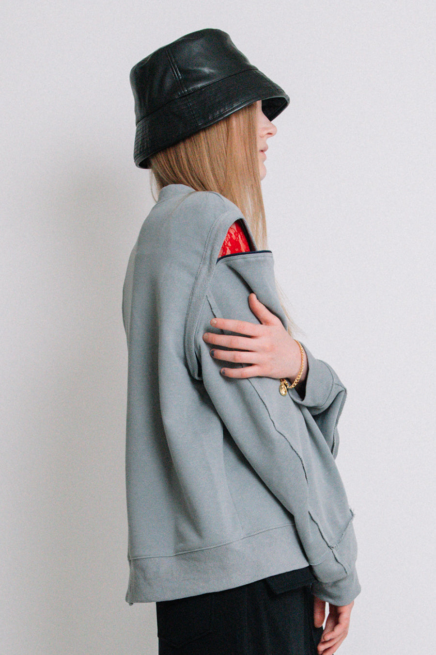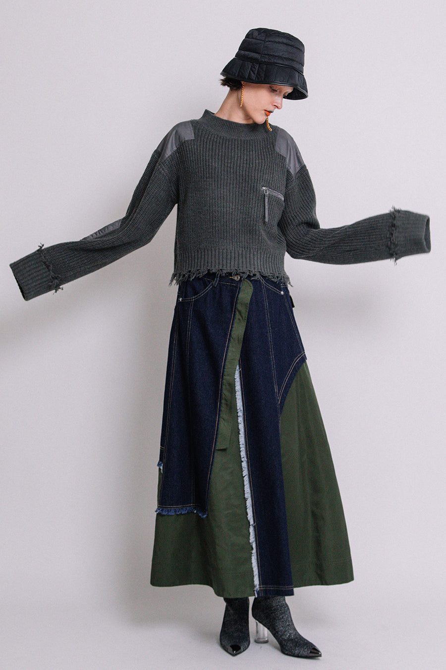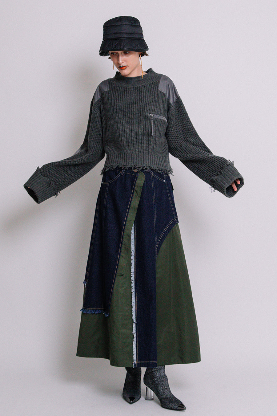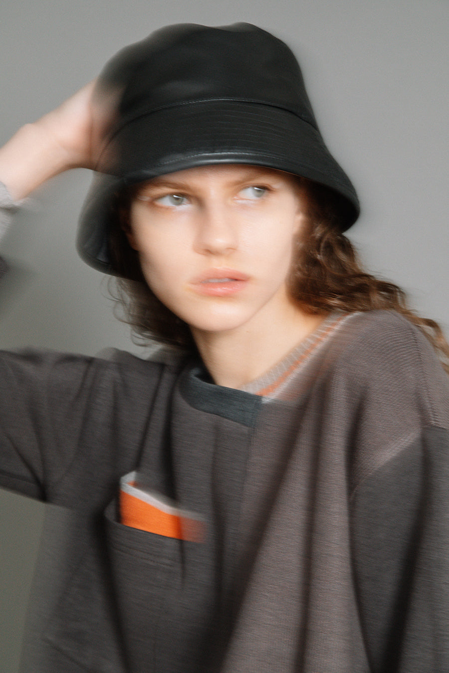 エコレザーとキルティングのリバーシブルバケットハット。