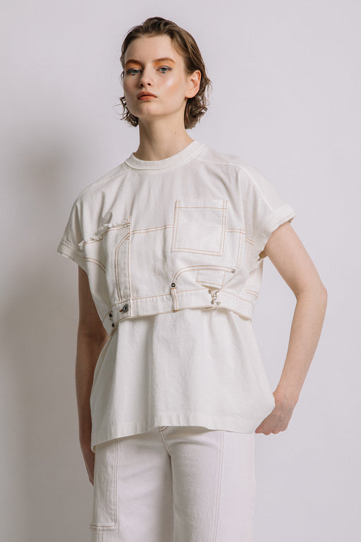 MESH COMBINATION ASYMMETRY T-SHIRT