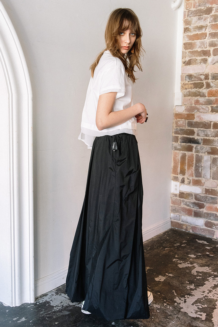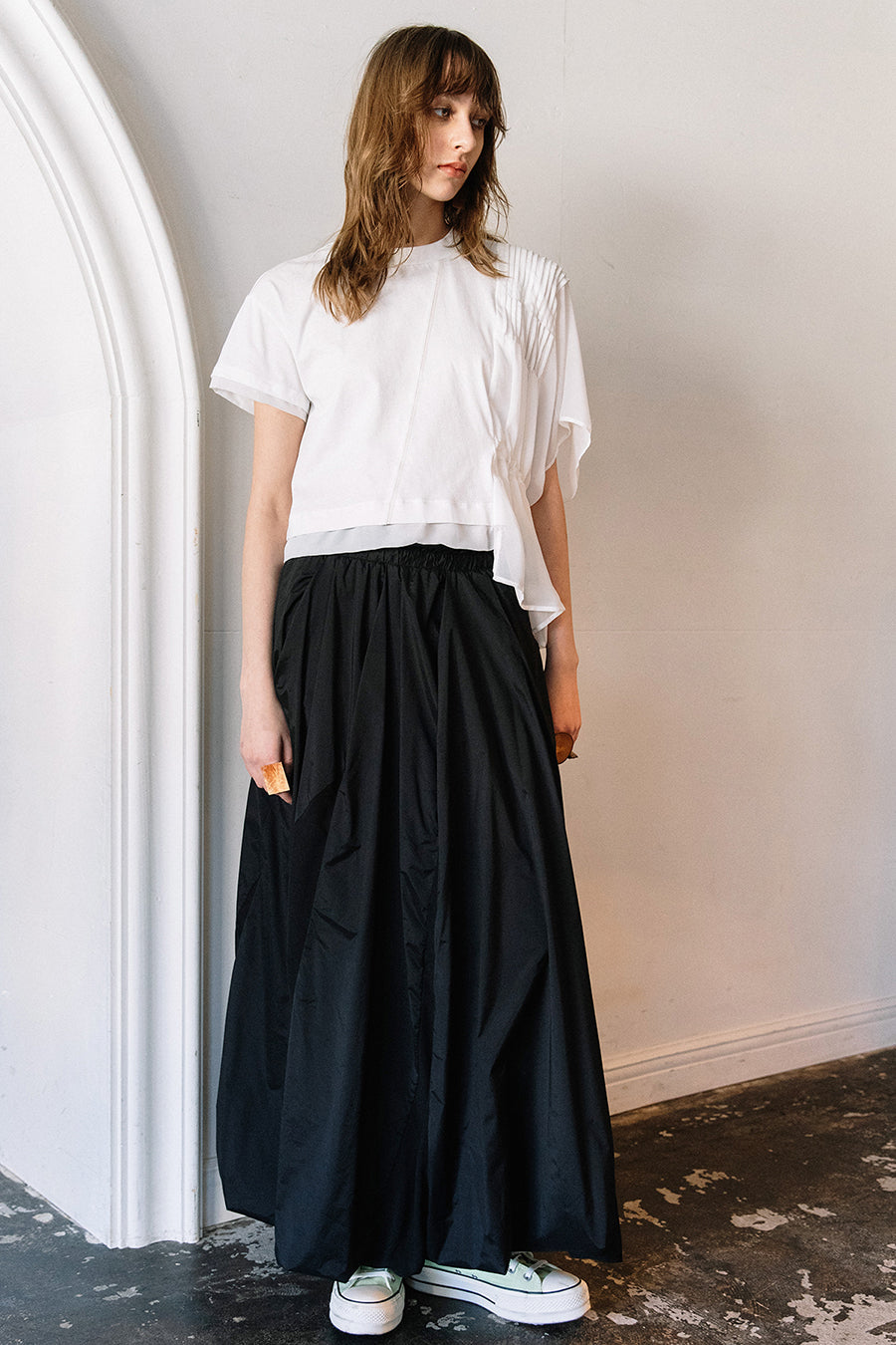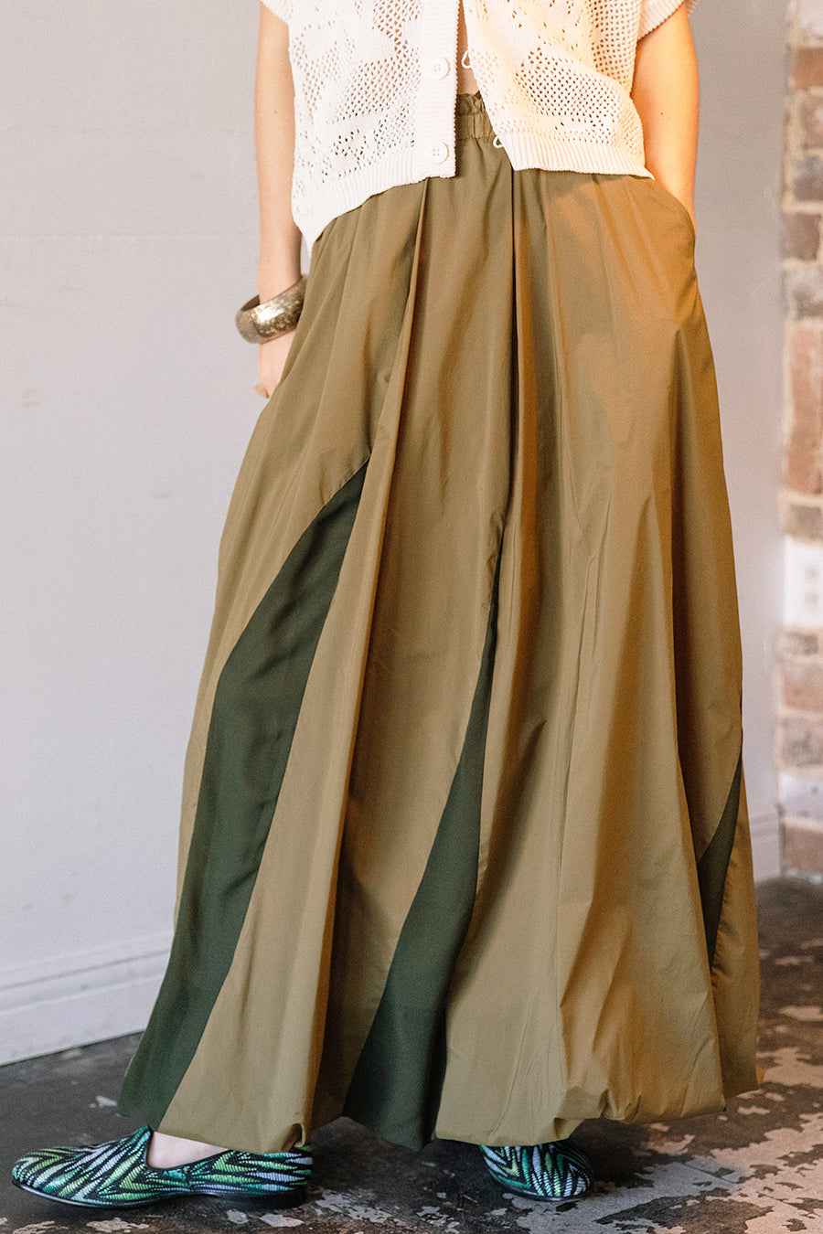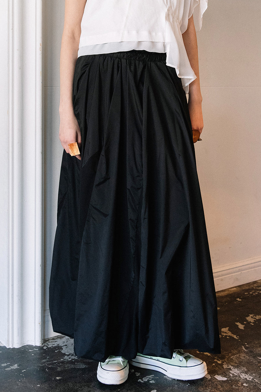 とても薄く軽やかなナイロン素材を使用したバルーンスカート。