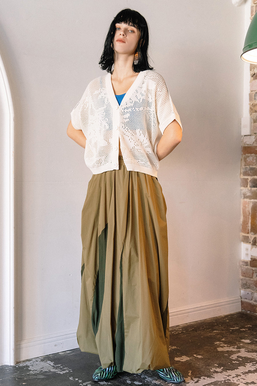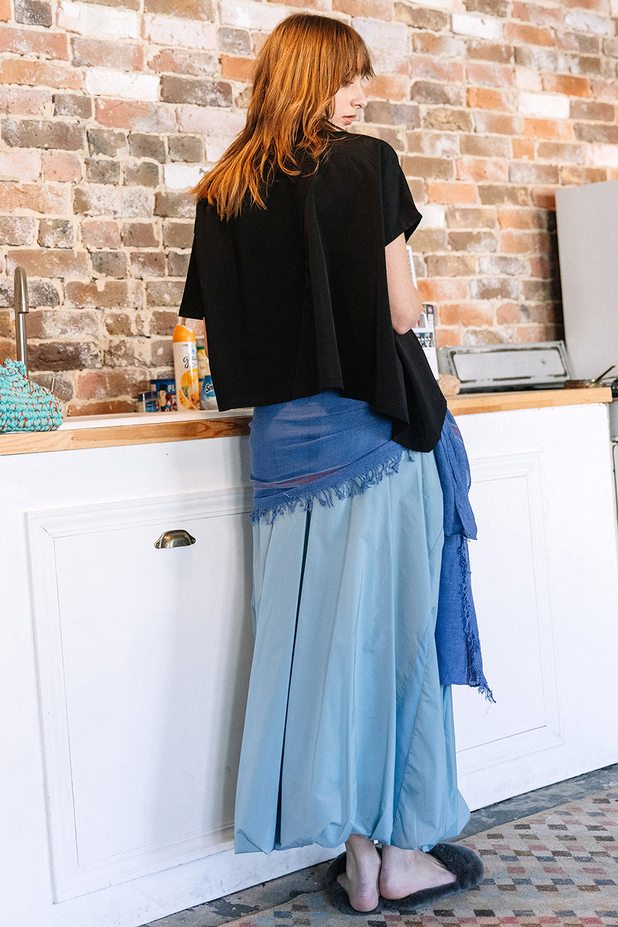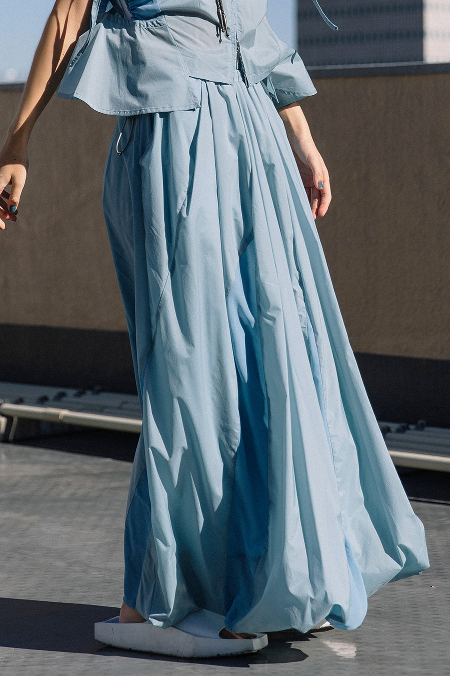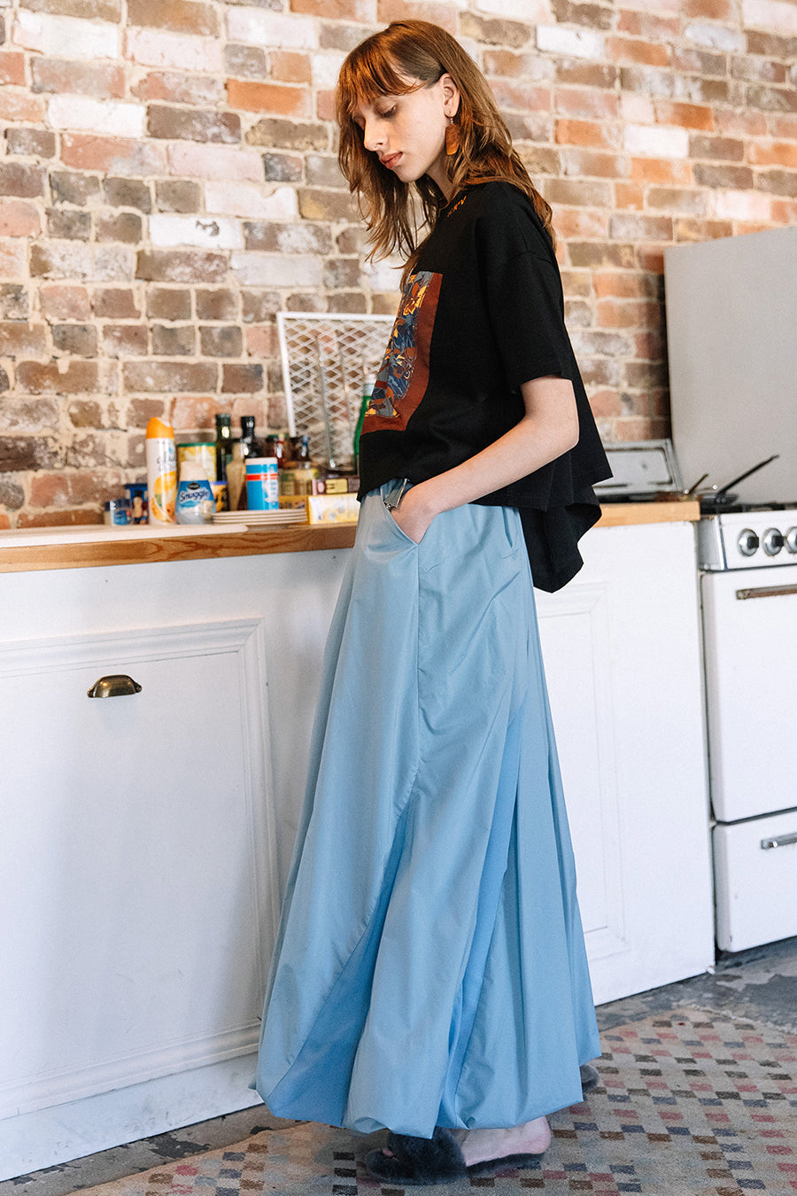 とても薄く軽やかなナイロン素材を使用したバルーンスカート。