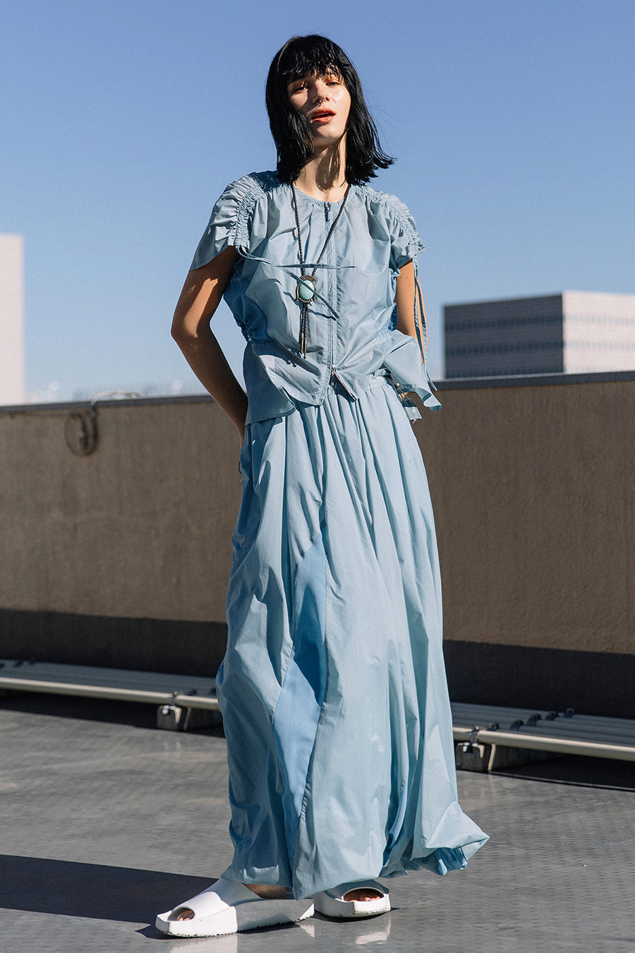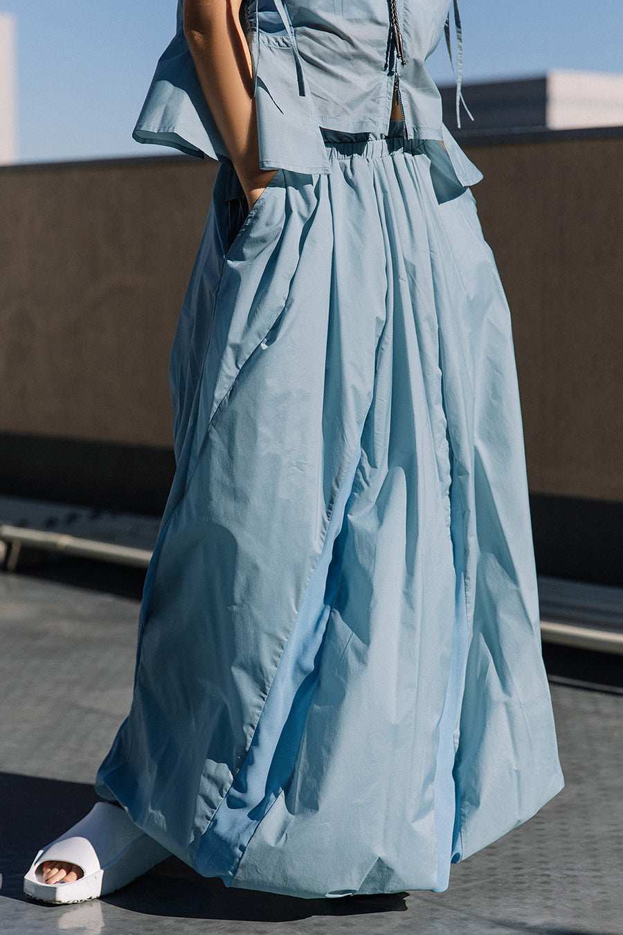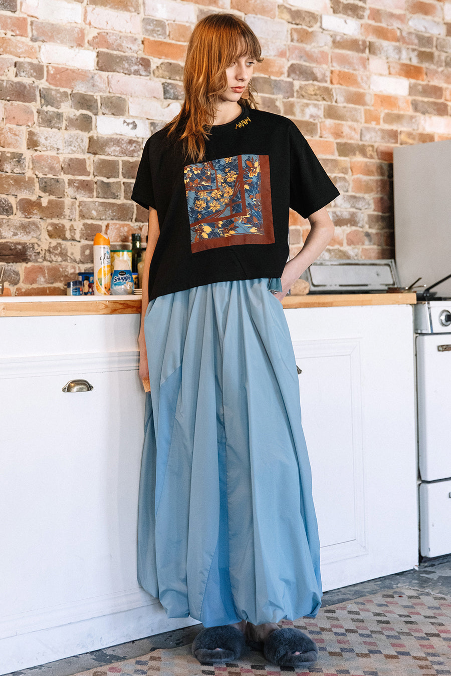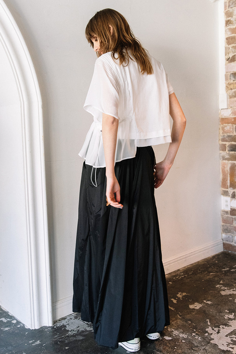 とても薄く軽やかなナイロン素材を使用したバルーンスカート。